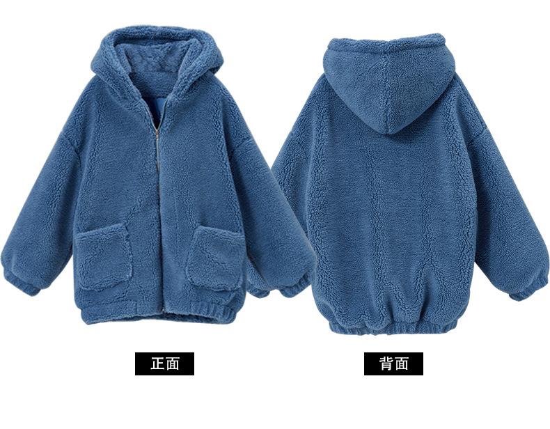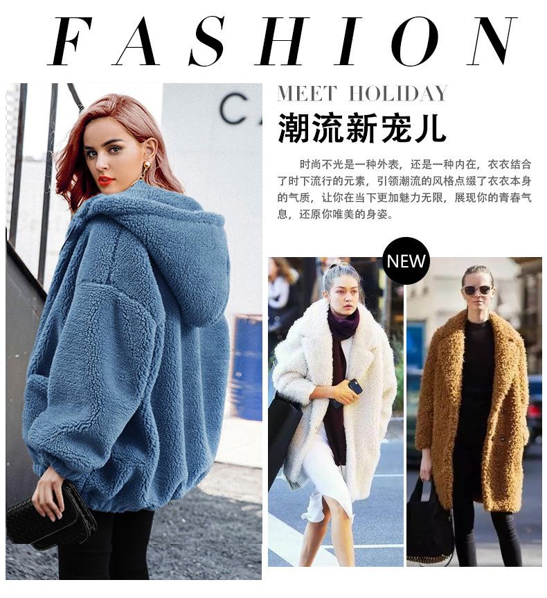 Abrigo de Cordero para Mujer con Capucha Chic Traje de Cordero Otoño e Invierno Estilo Coreano Combinable Grueso Peludo Chaqueta Talla Grande Suelto