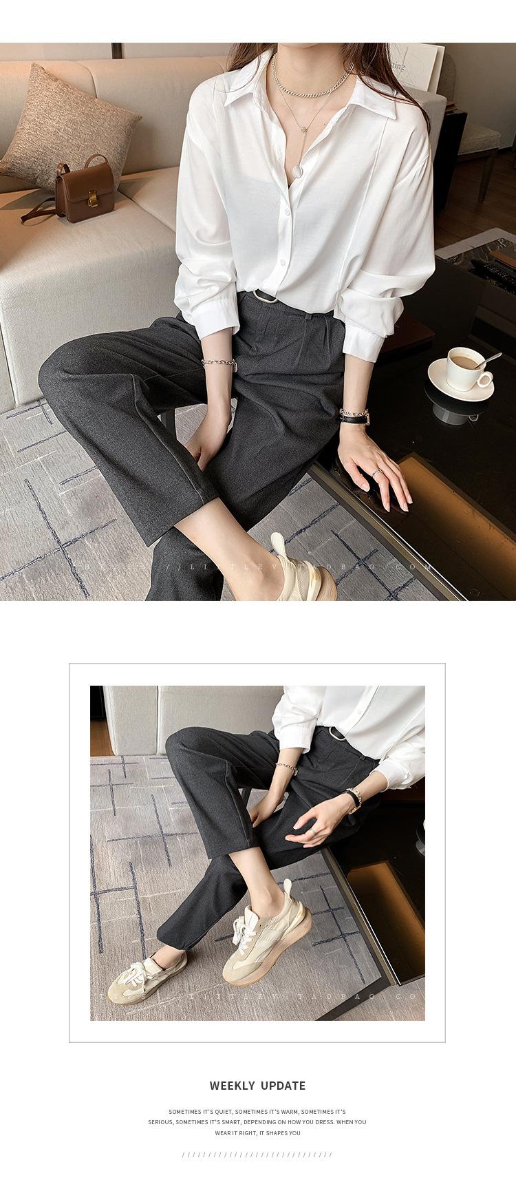 Camisa blanca para mujer, primavera y otoño, nueva, diseño combinable, estilo nicho, ligera, de manga larga, con base apilada.