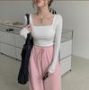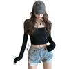 Principios de Otoño Chica Caliente Top Corto Cuello Cuadrado Ropa de Otoño para Mujer 2025 Nuevo Camiseta Básica Ajustada Camiseta de Manga Larga para Mujer