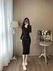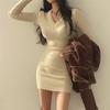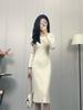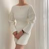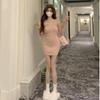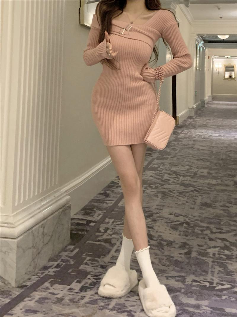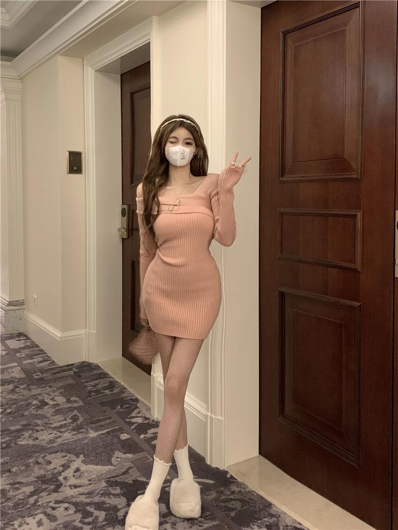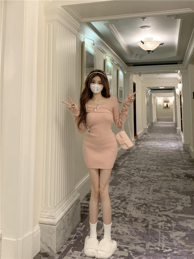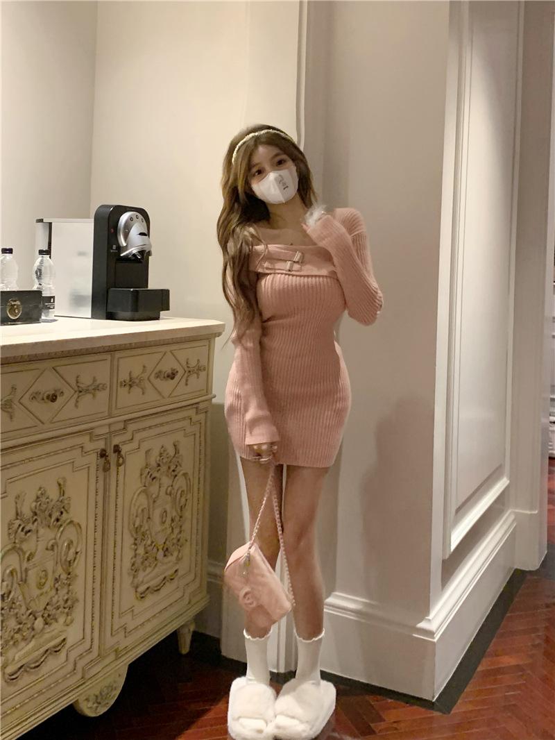 Vestido de punto con hombros descubiertos de diseño de primavera y otoño, falda femenina para realzar la cadera, falda suéter interior de deseo puro