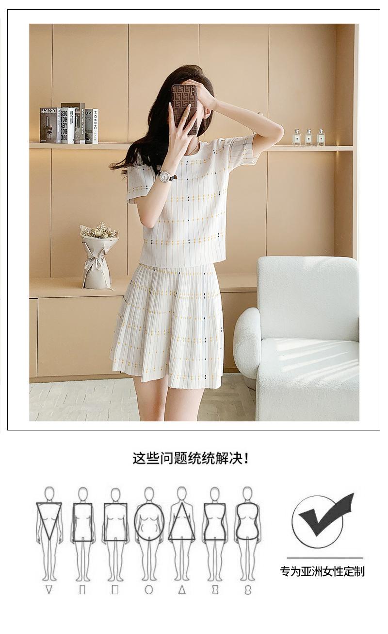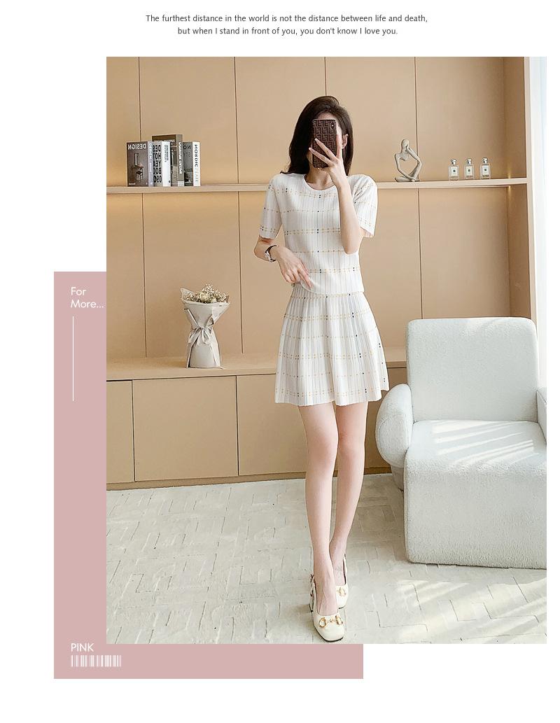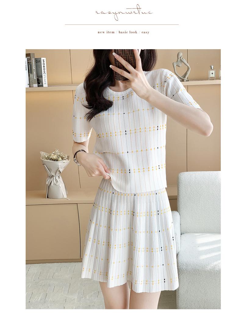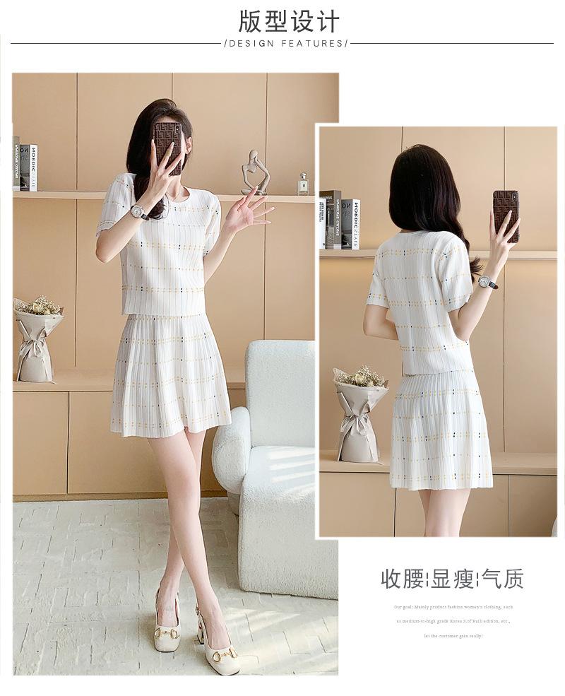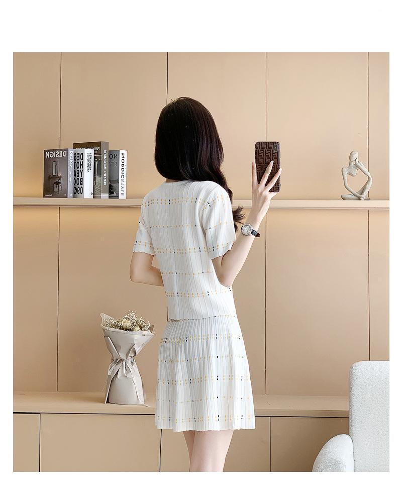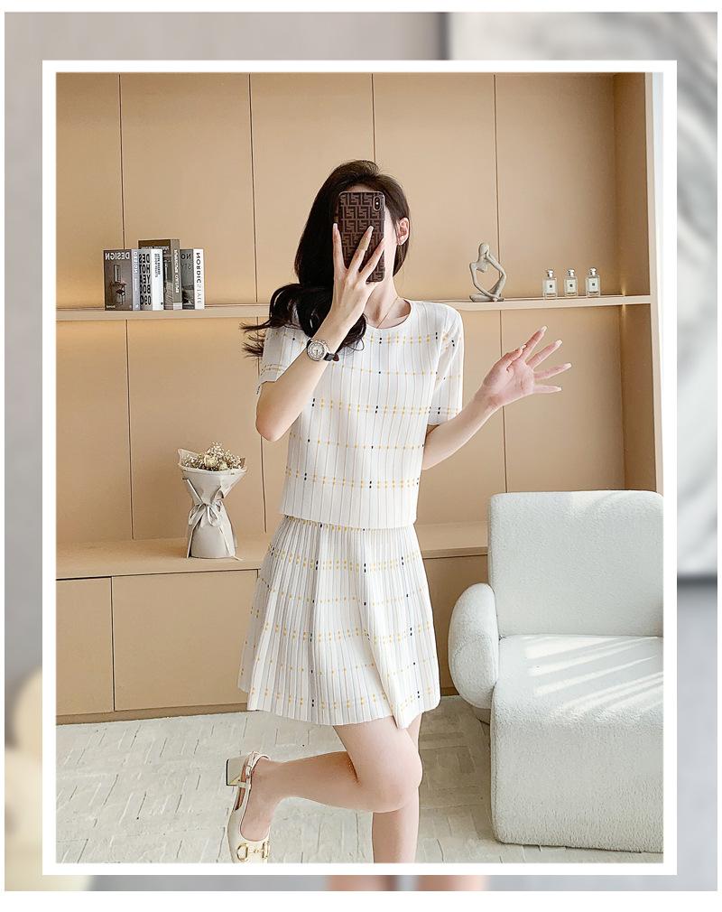 Traje Tejido de Seda Helada Estilo Tweed para Mujer 2025 Verano Nueva Moda Casual Traje de Manga Corta Traje de Dos Piezas Falda