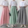 Falda de media longitud para mujer, estilo japonés y coreano, de Lotte, verano 2023, línea A, larga, de cintura alta, a cuadros, con cintura elástica