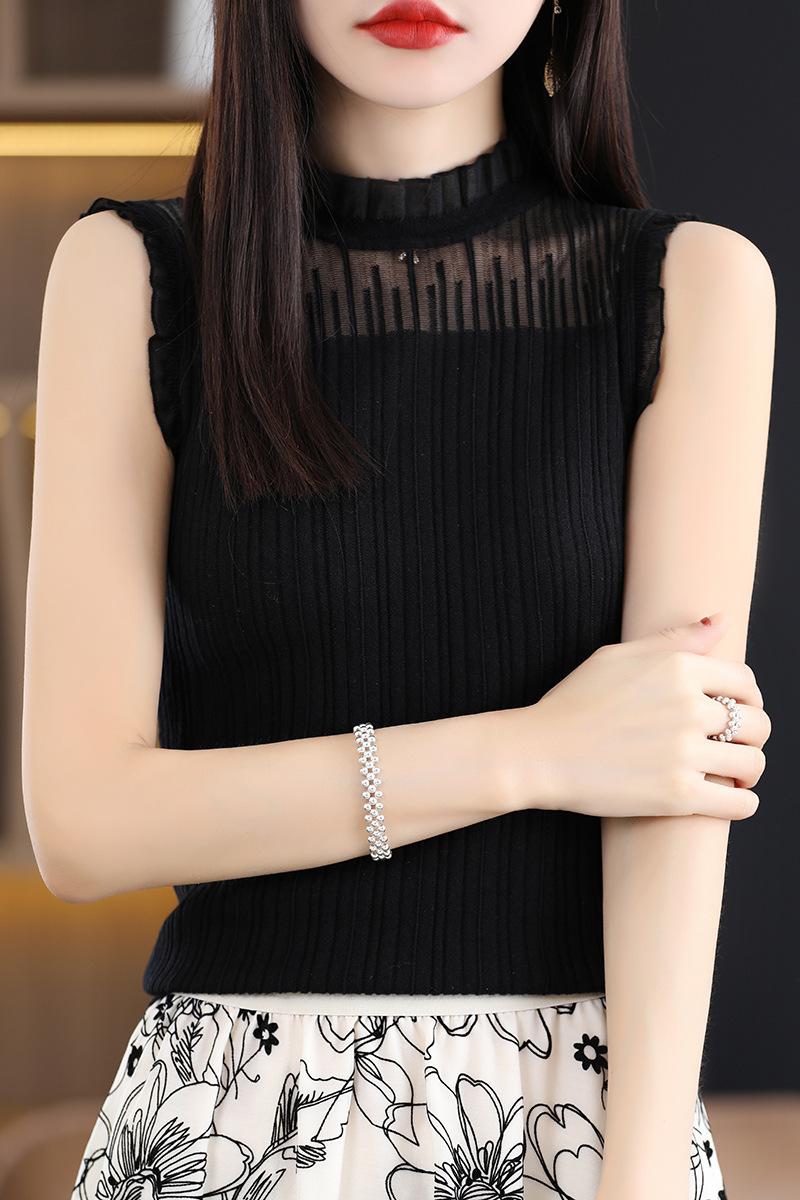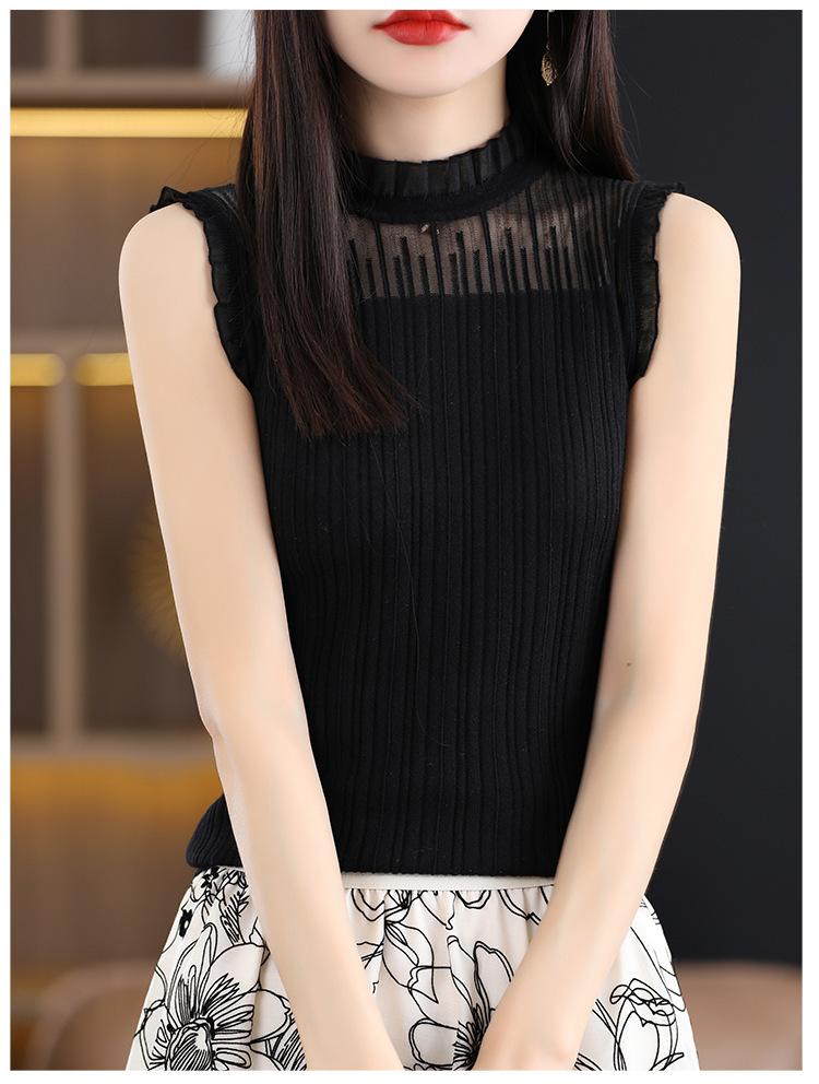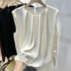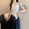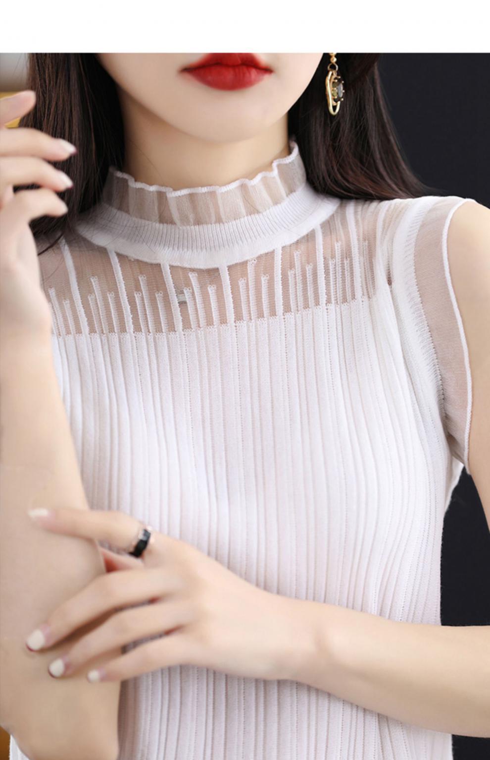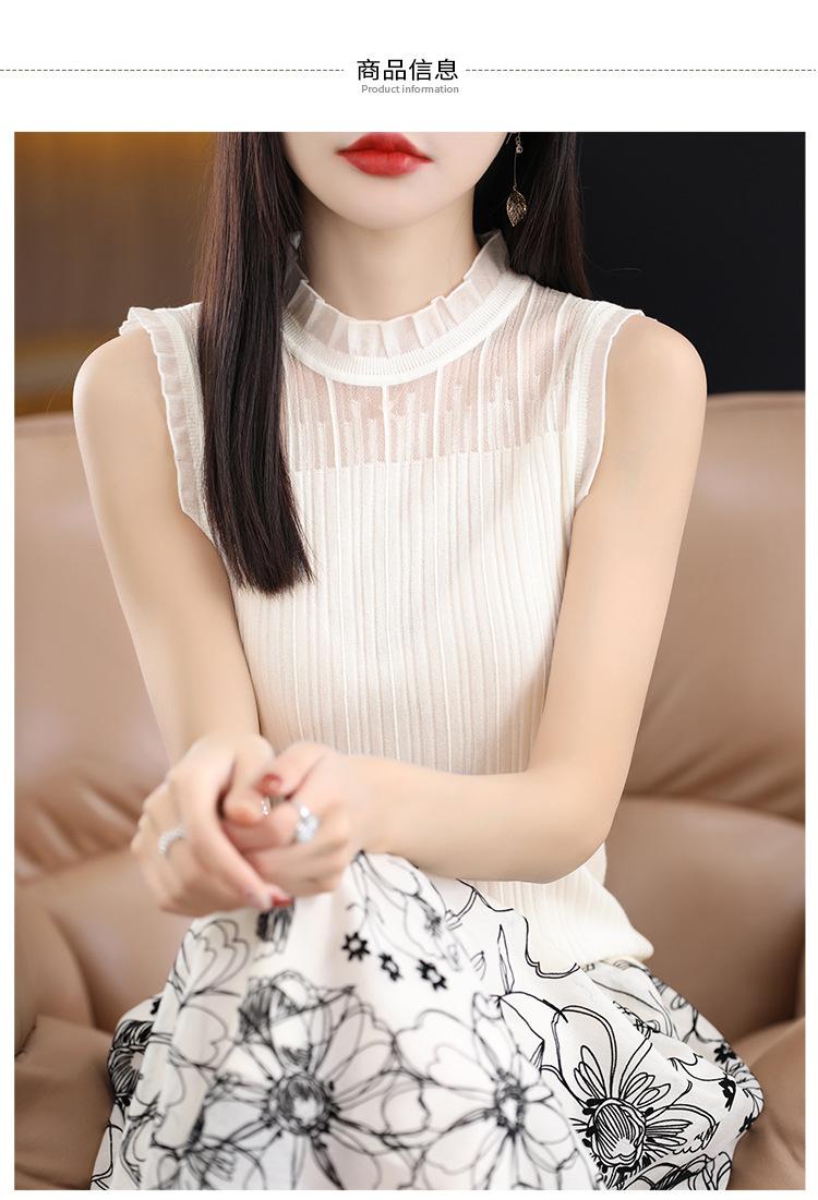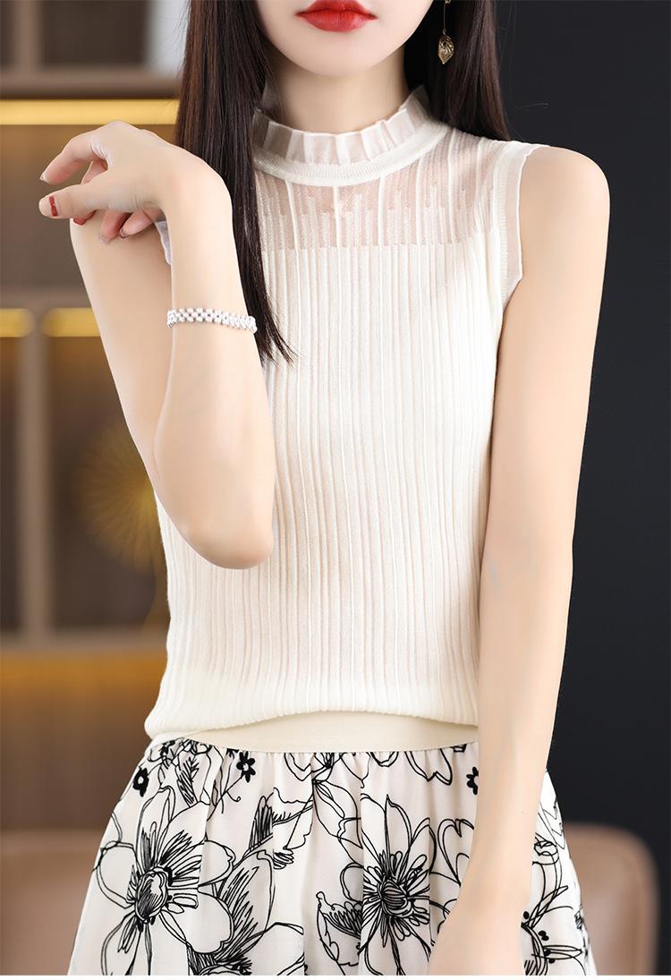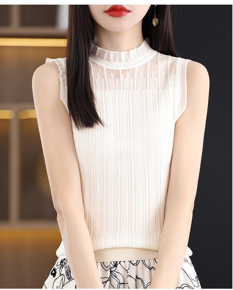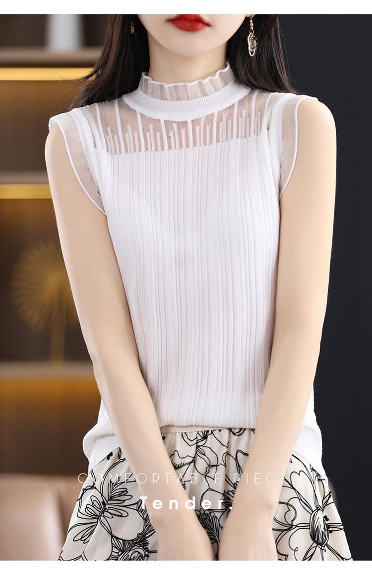 Chaleco sin mangas estilo francés para mujer, blusa blanca con base de punto de encaje