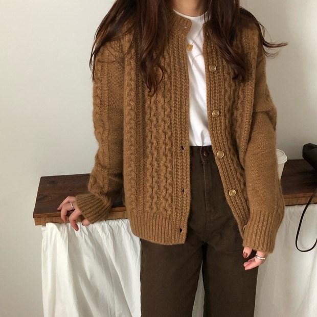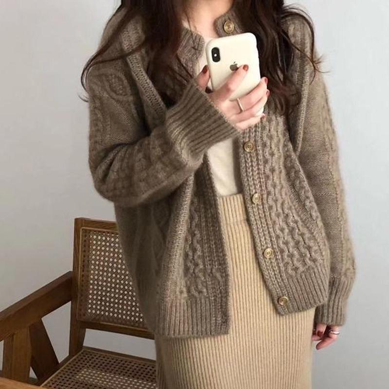 Cárdigan de punto para mujer, suéter grueso y retorcido, otoño e invierno 2020, nuevo cárdigan suelto de estilo coreano, abrigo para mujer