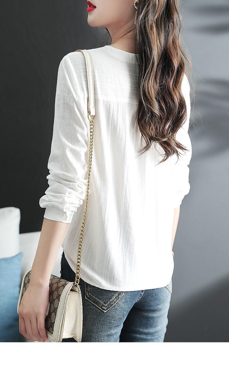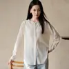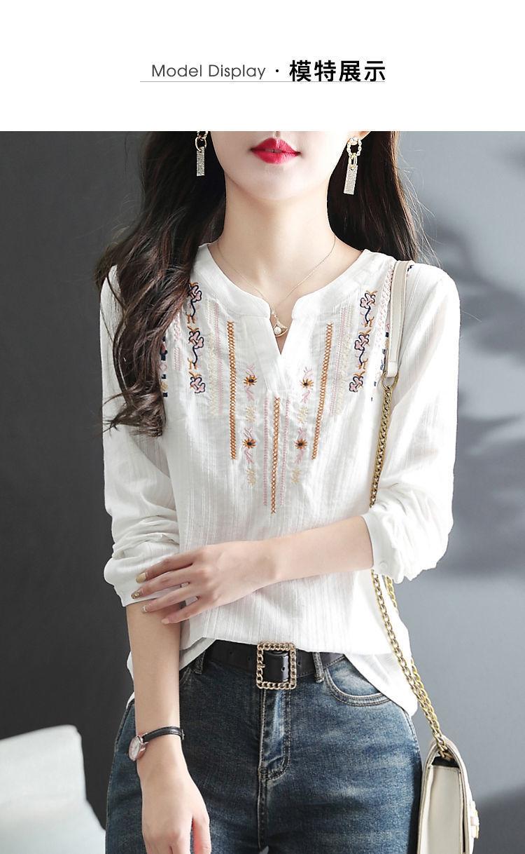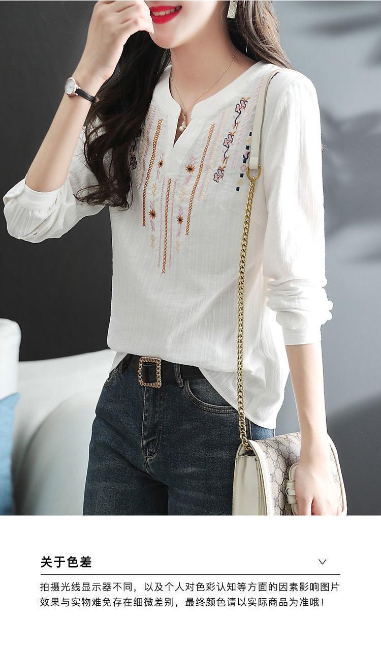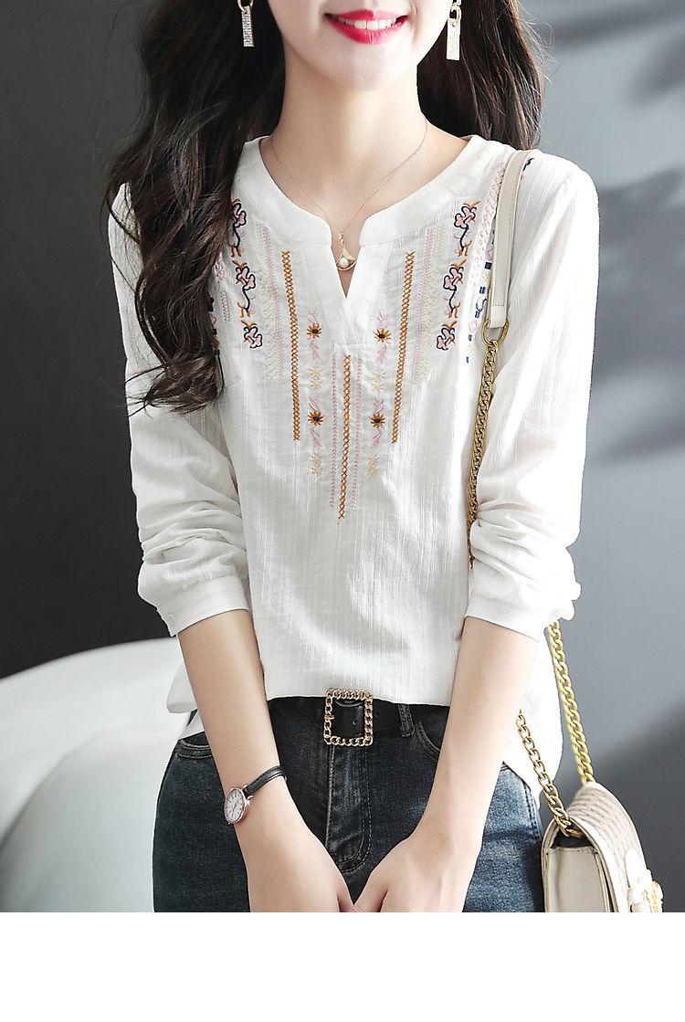 Camisa Blanca de Algodón Puro de Manga Larga para Mujer 2025 Primavera y Otoño Nueva Moda Casual Bordado Estilo Étnico Versátil Cuello en V