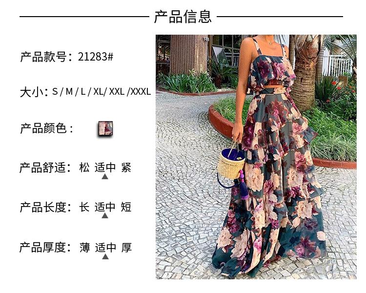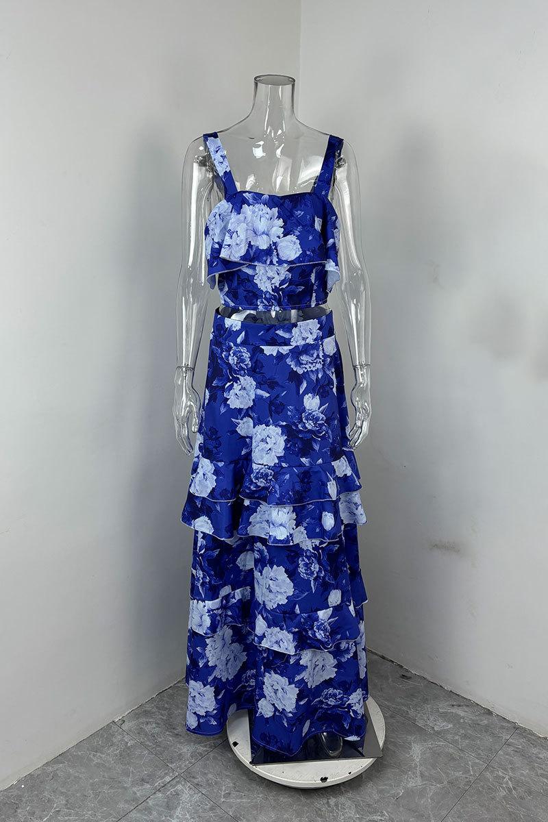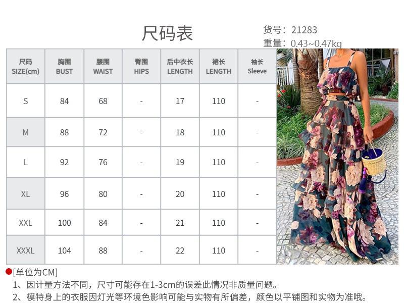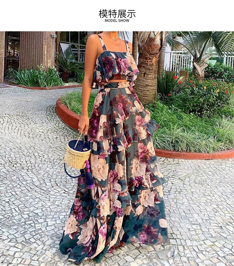 Transfronterizo 2025 Amazon Ropa Europea y Americana Nueva Moda Top Floral Tirantes Falda Pastel con Volantes Traje para Mujer