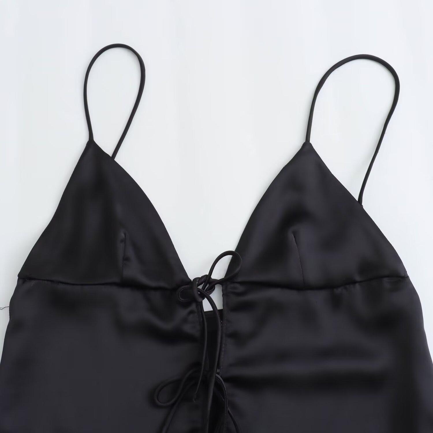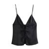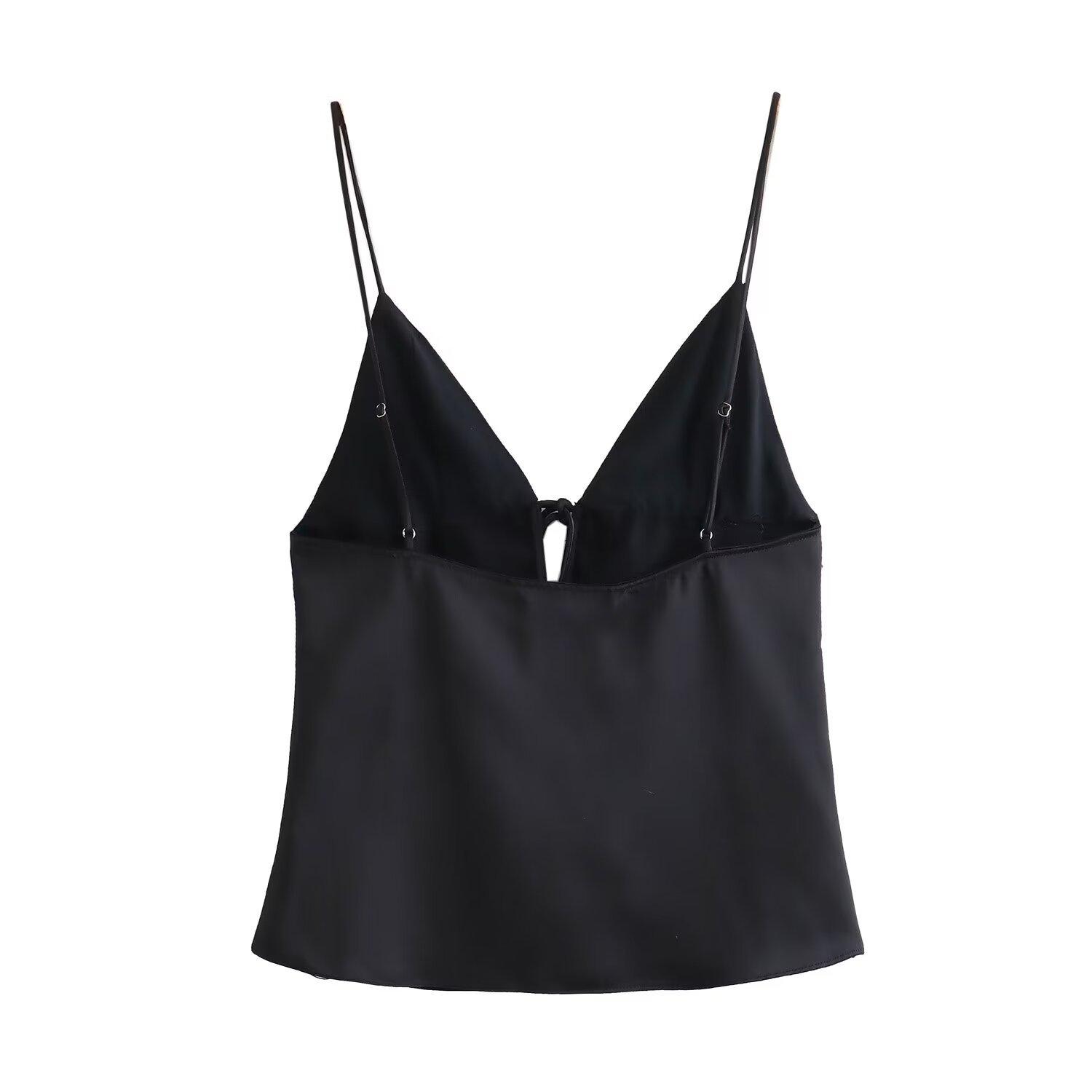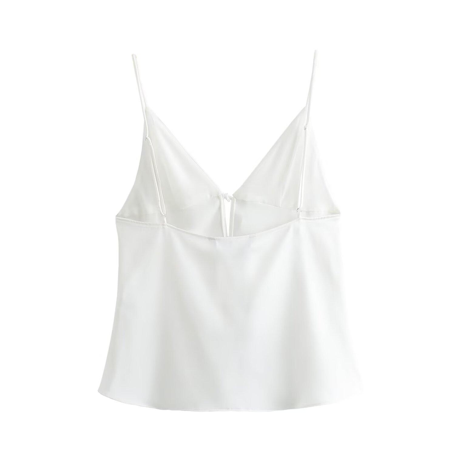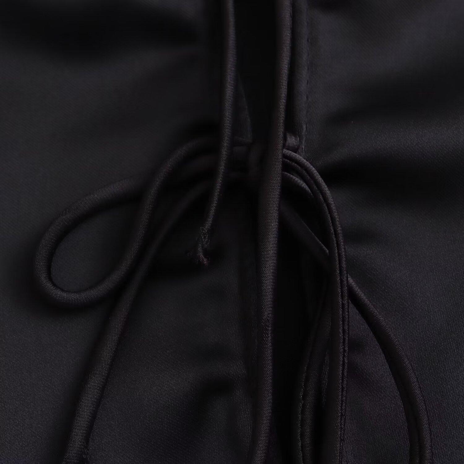 Venta al por mayor de ropa femenina de estilo europeo y americano, nueva moda primavera 2024, blusas cortas con textura de satén de seda decoradas con lazo para mujer