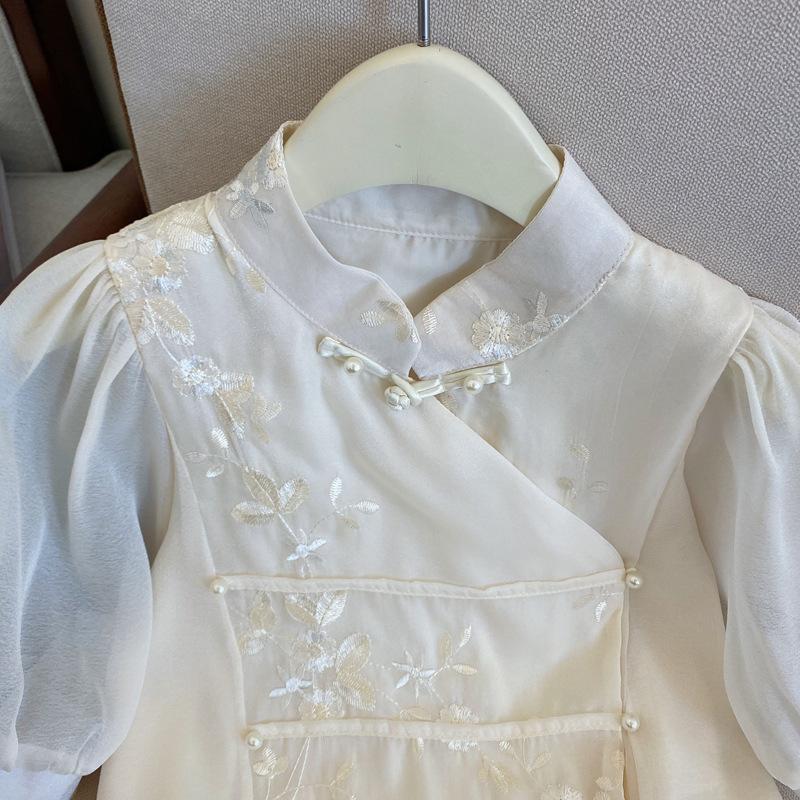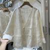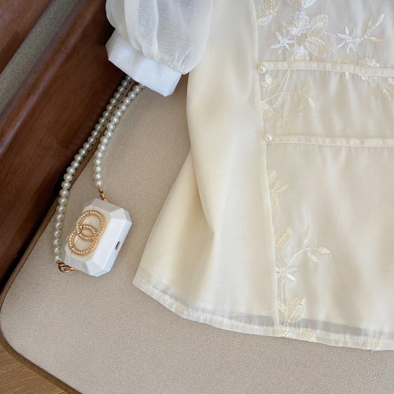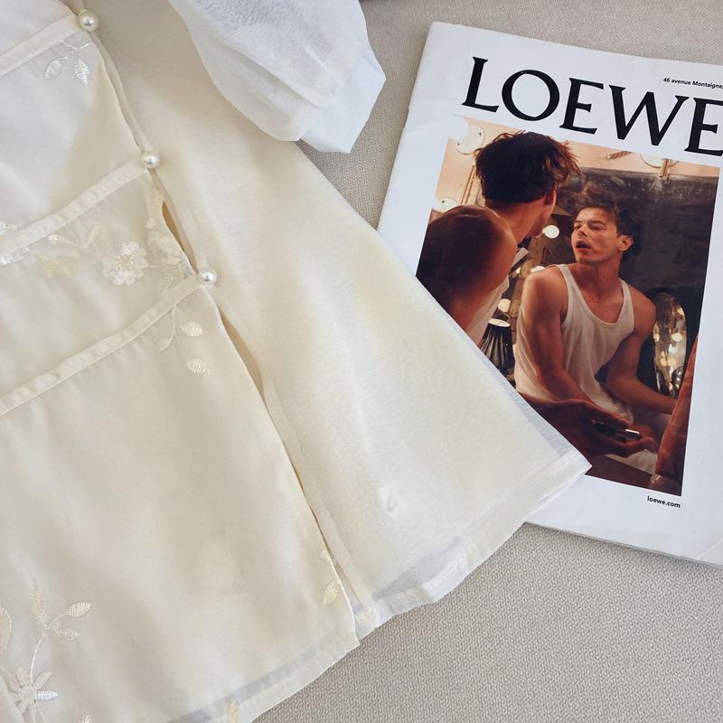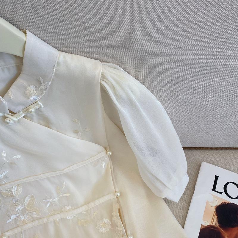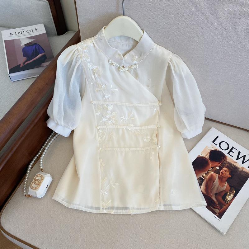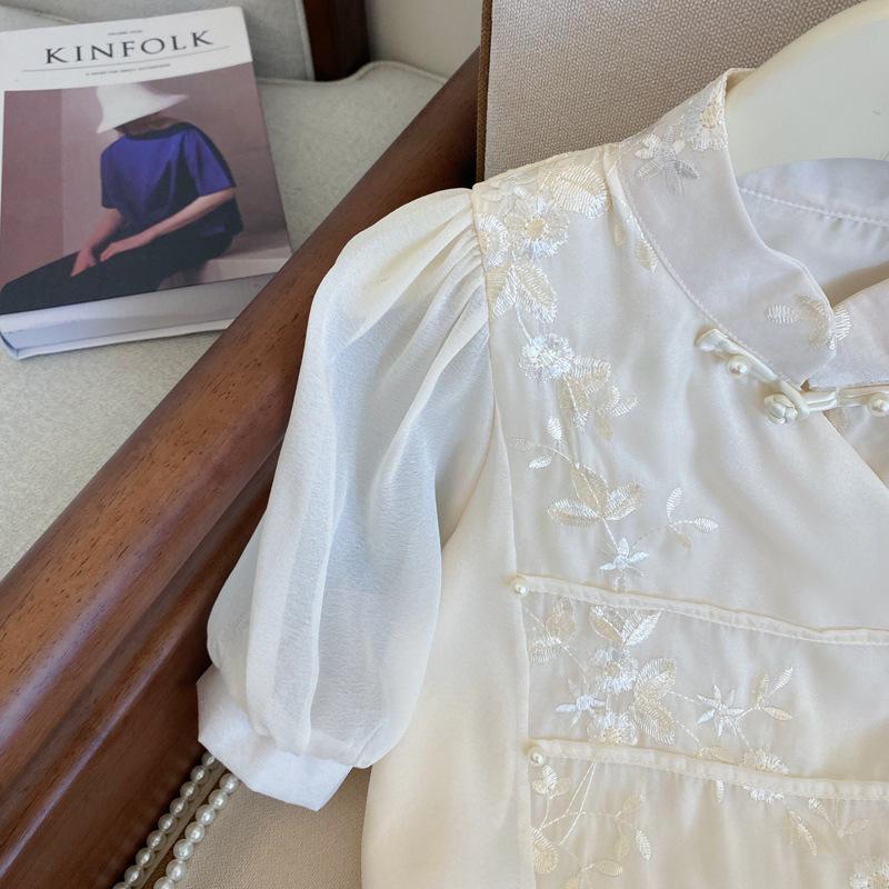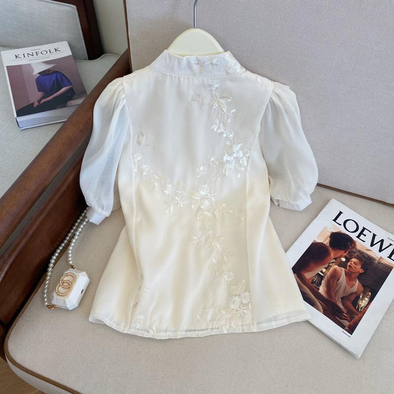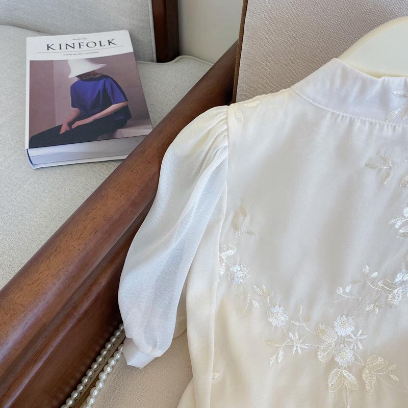 Foto real de camisa nueva china retro bordada de manga corta para mujer 2024 verano nuevo diseño nicho estilo nacional top abotonado