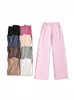 Pantalones de Pierna Ancha Casuales Holgados de 12 Colores Pantalones Deportivos Chic con Dobladillo Pantalones Rectos con Cordón Pantalones de Trapeador