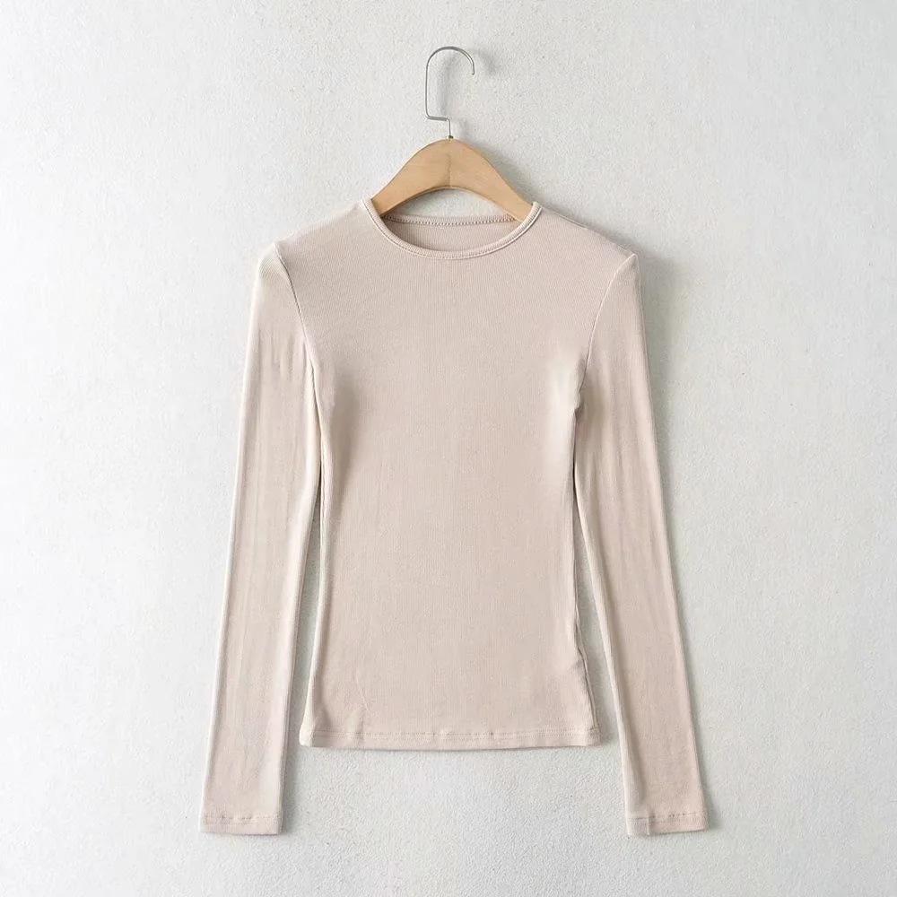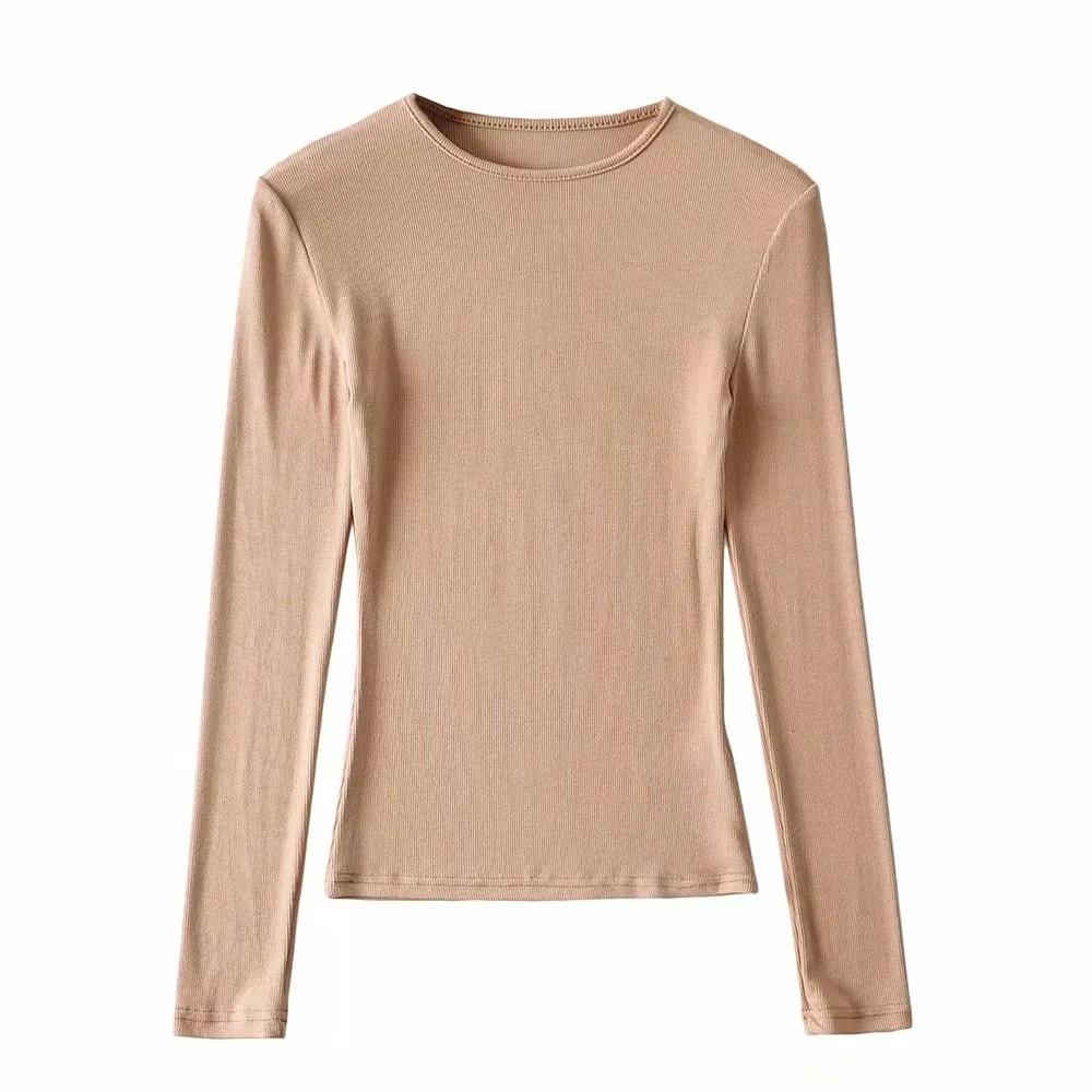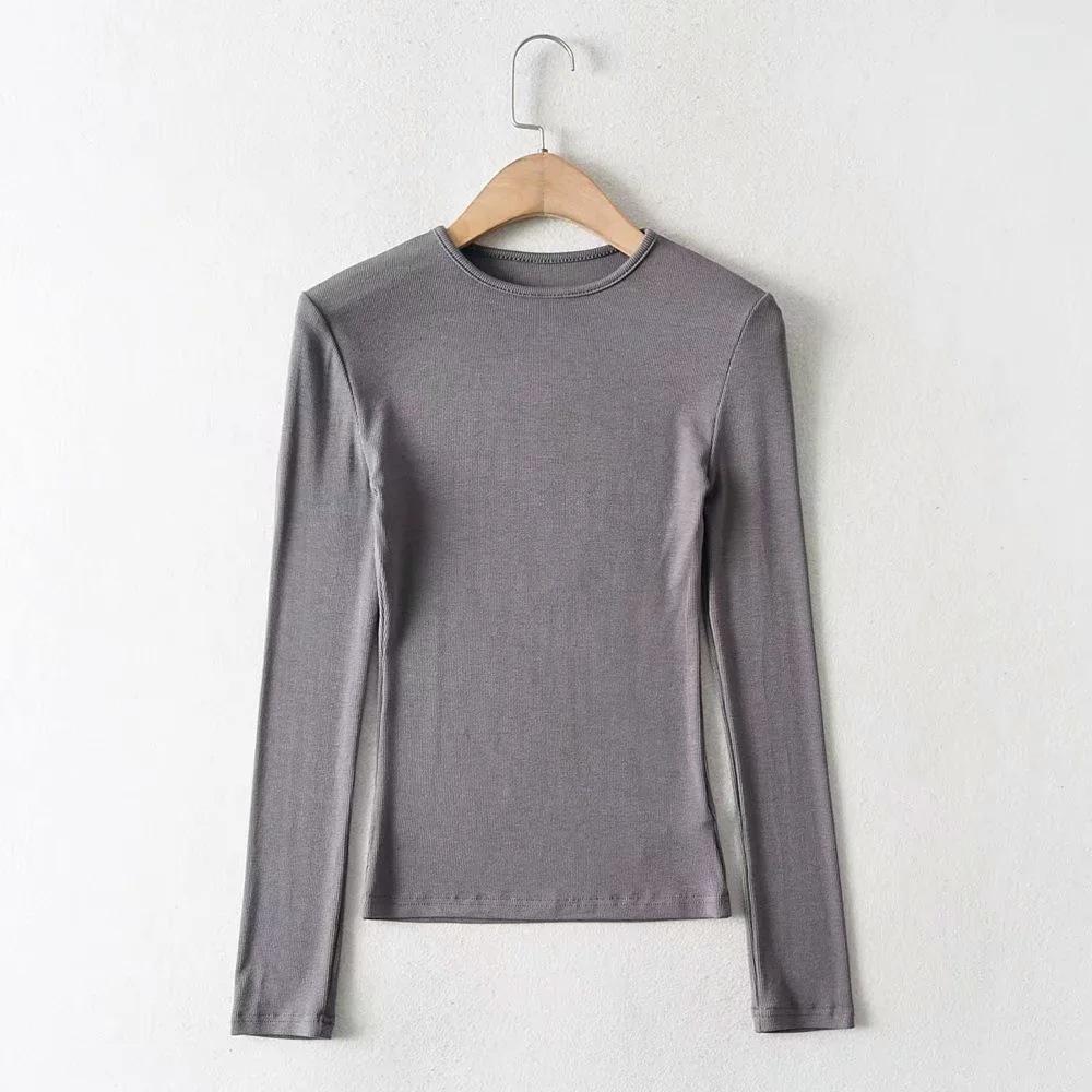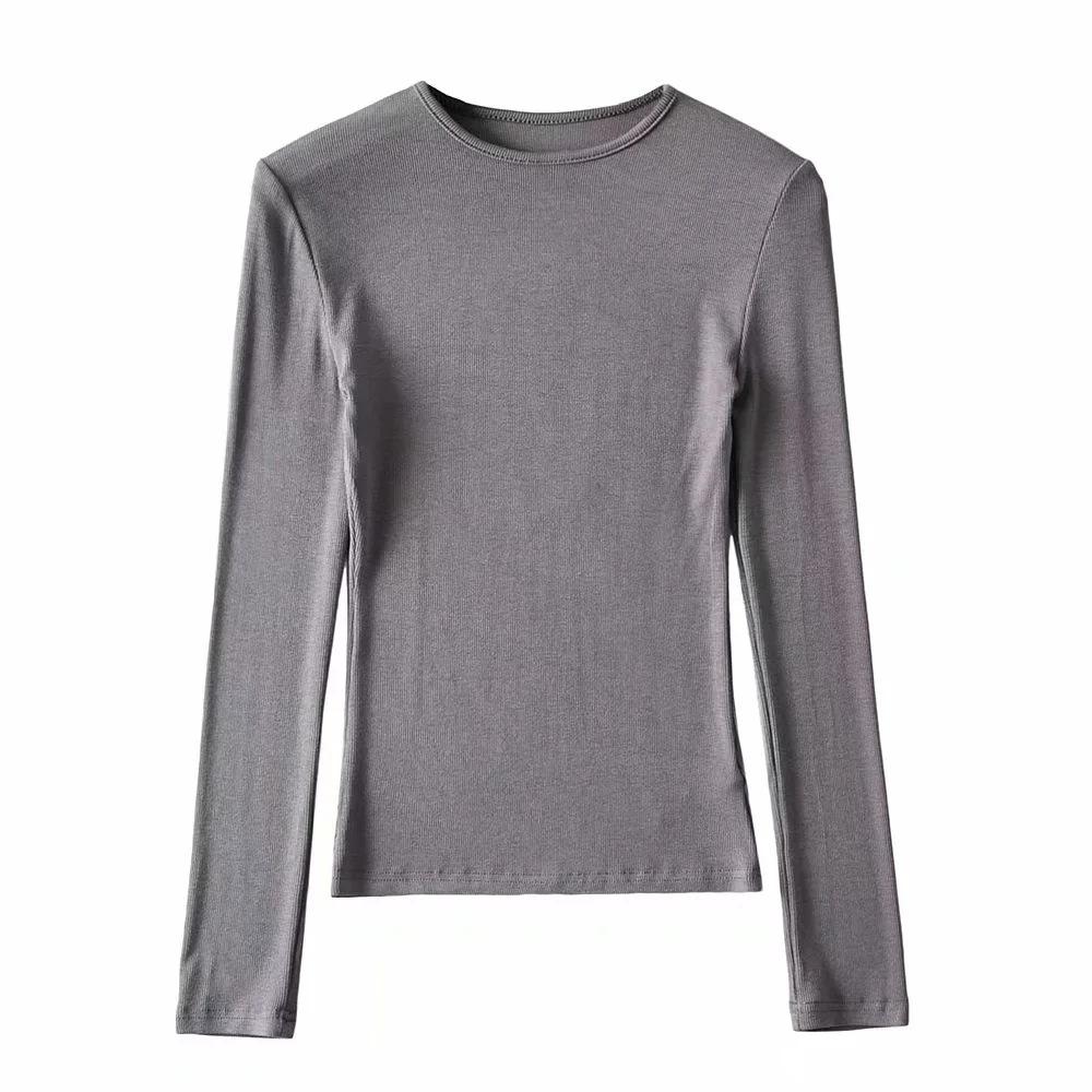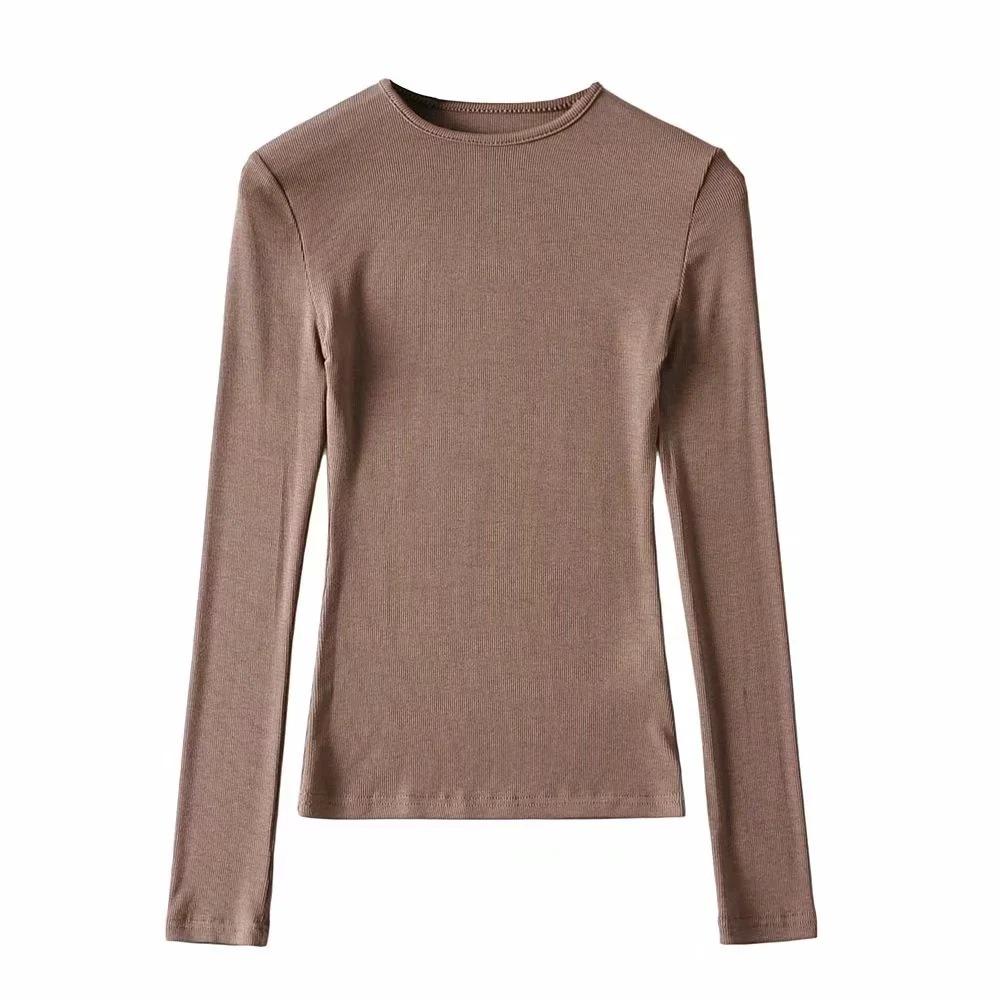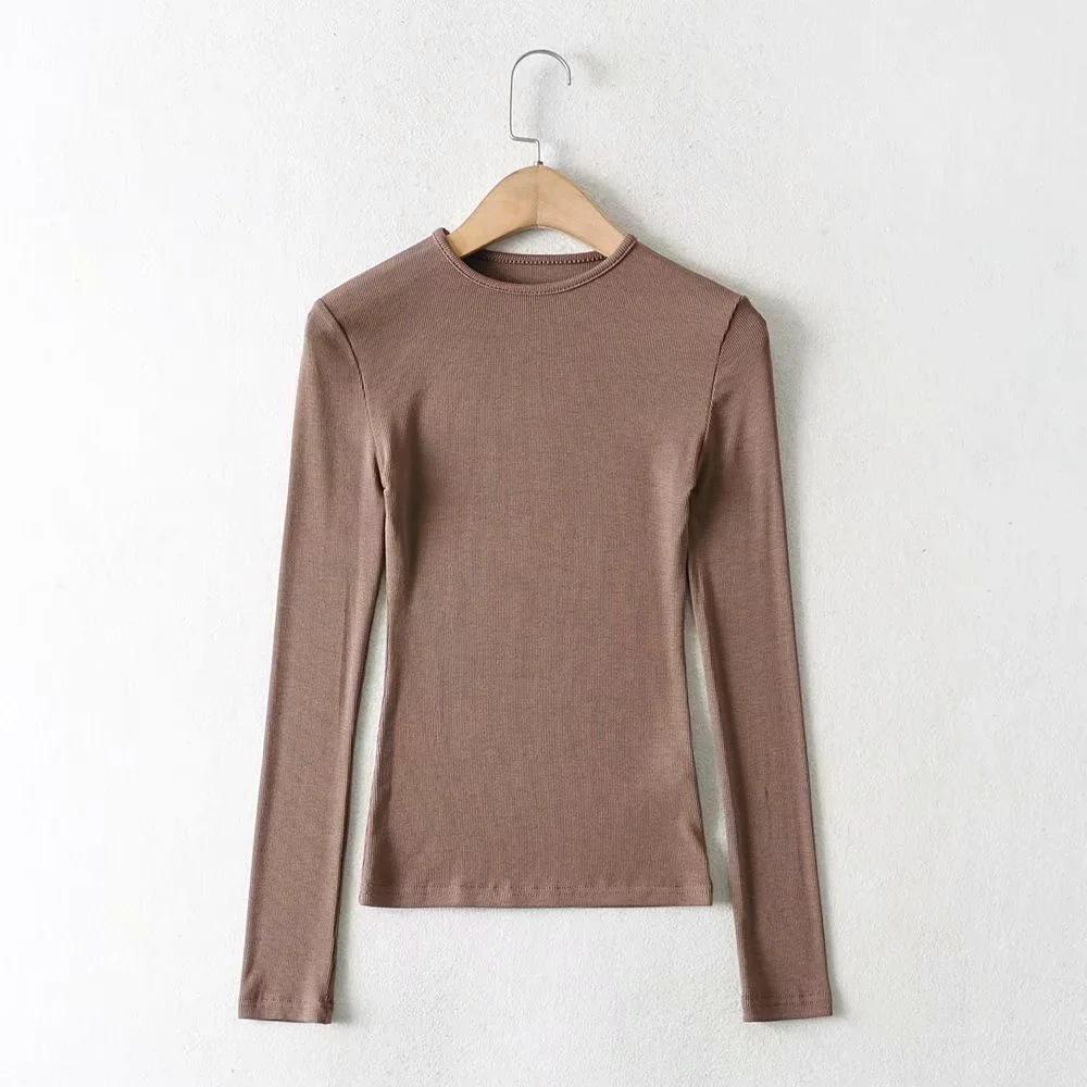 2020 Otoño Camiseta Básica de Color Sólido para Mujer Cuello Redondo Ajustada Top Moda Europea y Americana Sexy Camiseta de Manga Larga Marca de Moda para Mujer