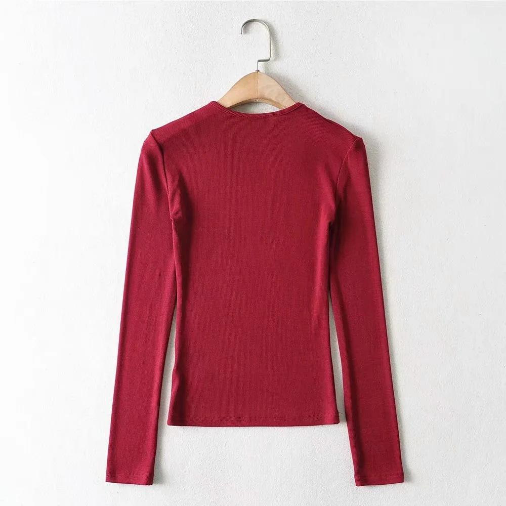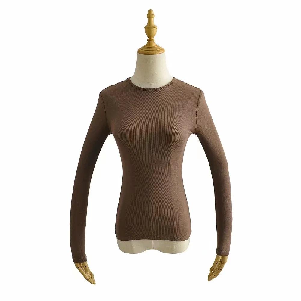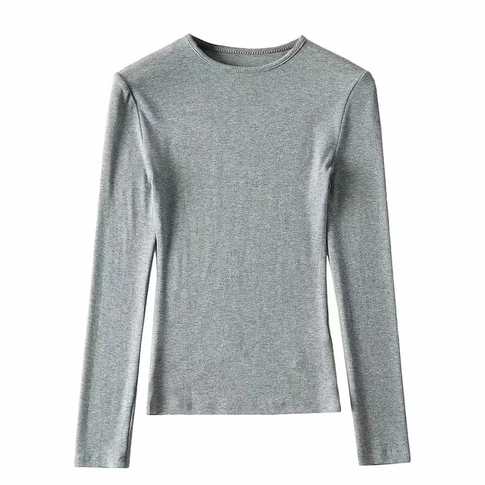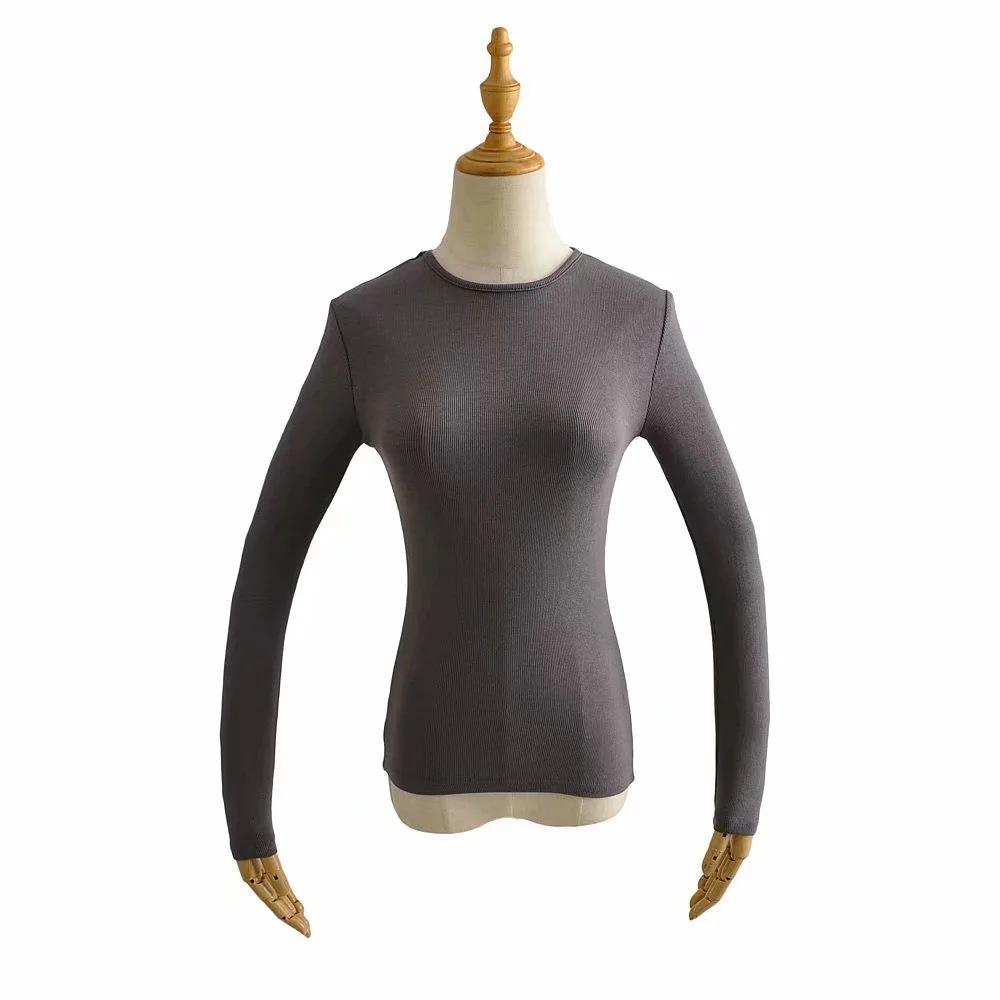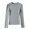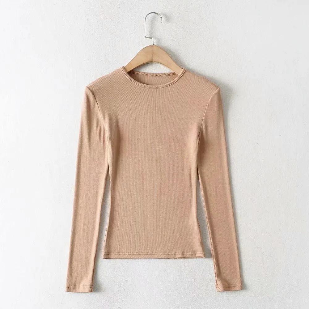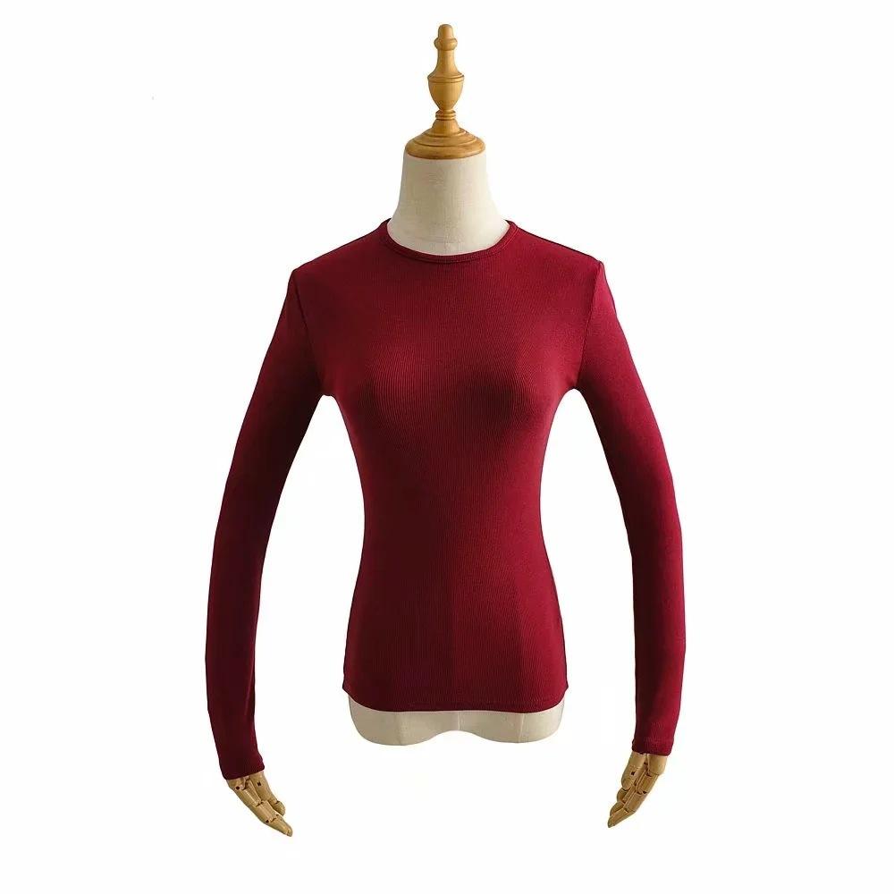 2020 Otoño Camiseta Básica de Color Sólido para Mujer Cuello Redondo Ajustada Top Moda Europea y Americana Sexy Camiseta de Manga Larga Marca de Moda para Mujer