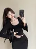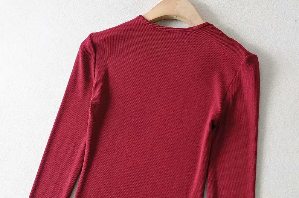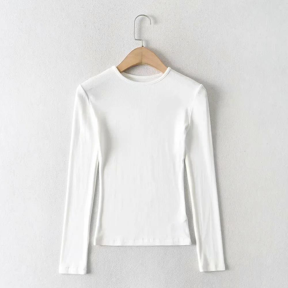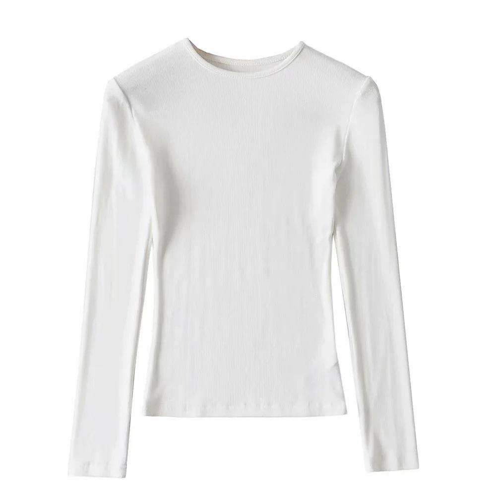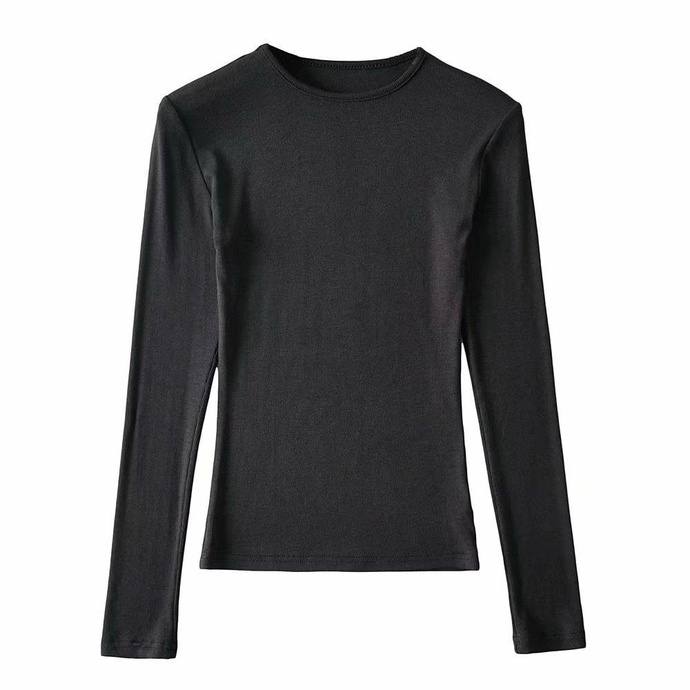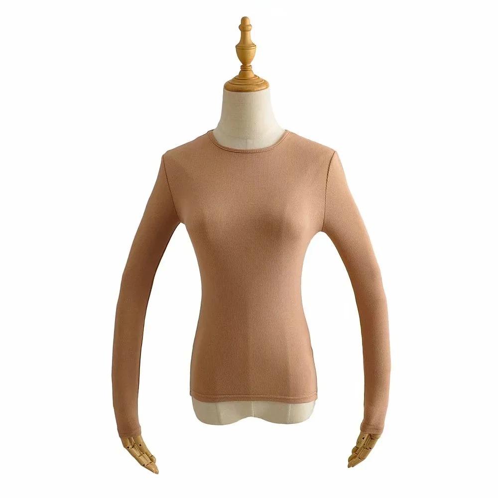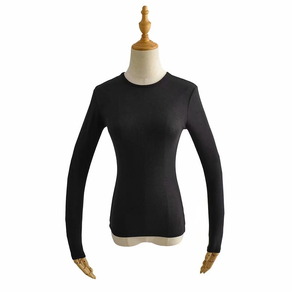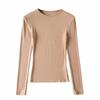 2020 Otoño Camiseta Básica de Color Sólido para Mujer Cuello Redondo Ajustada Top Moda Europea y Americana Sexy Camiseta de Manga Larga Marca de Moda para Mujer