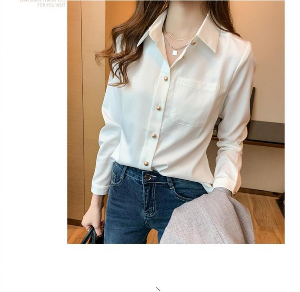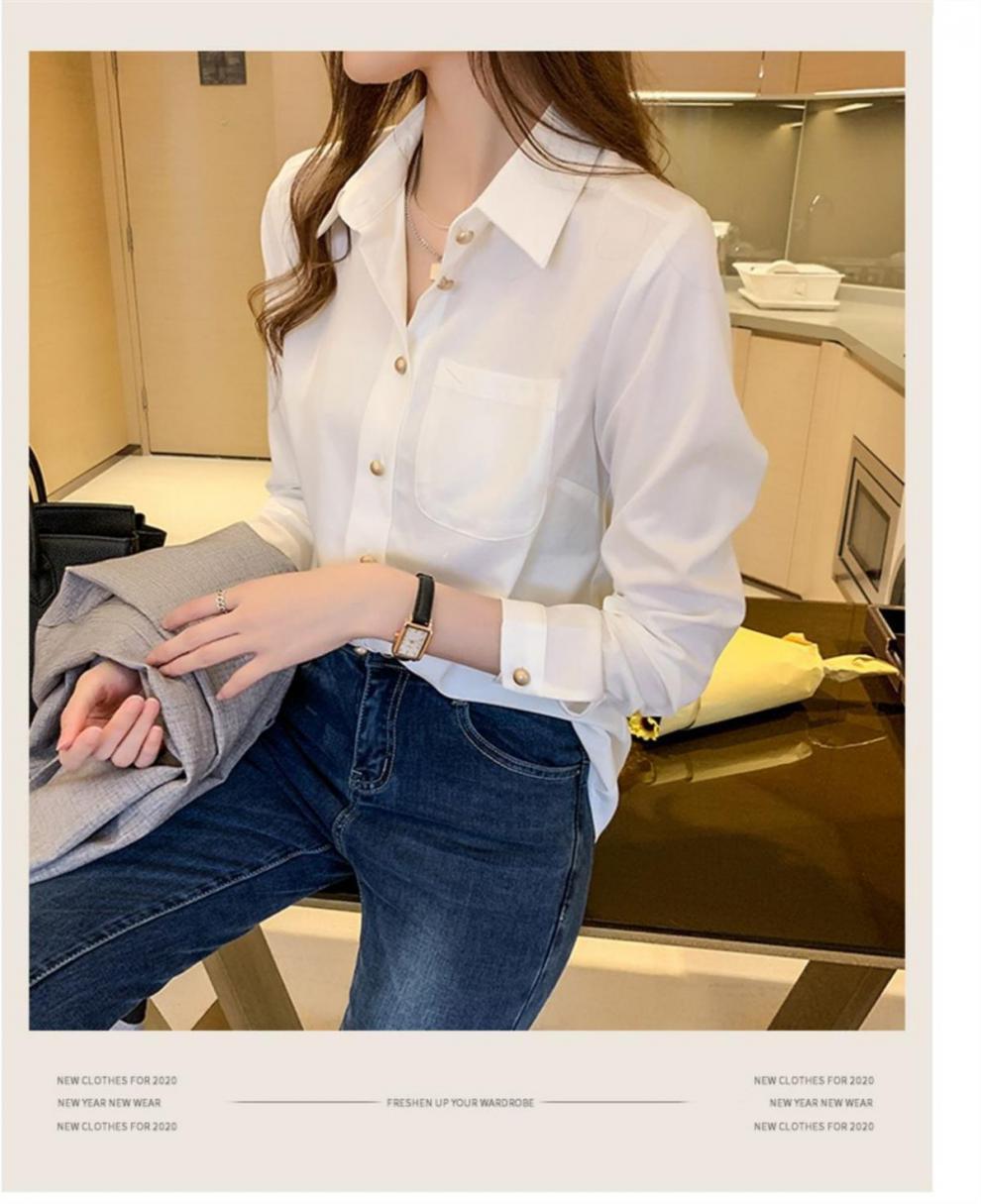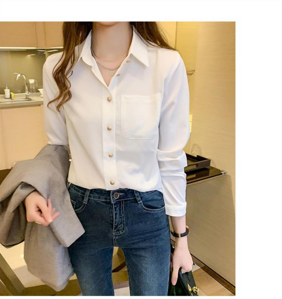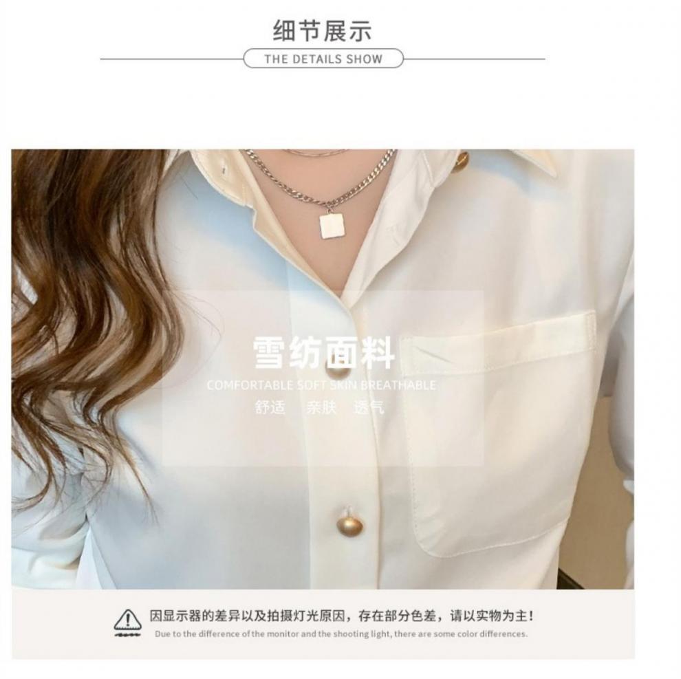 Camisa blanca de gasa para mujer, primavera y otoño de 2024, holgada, de manga larga, estilo occidental
