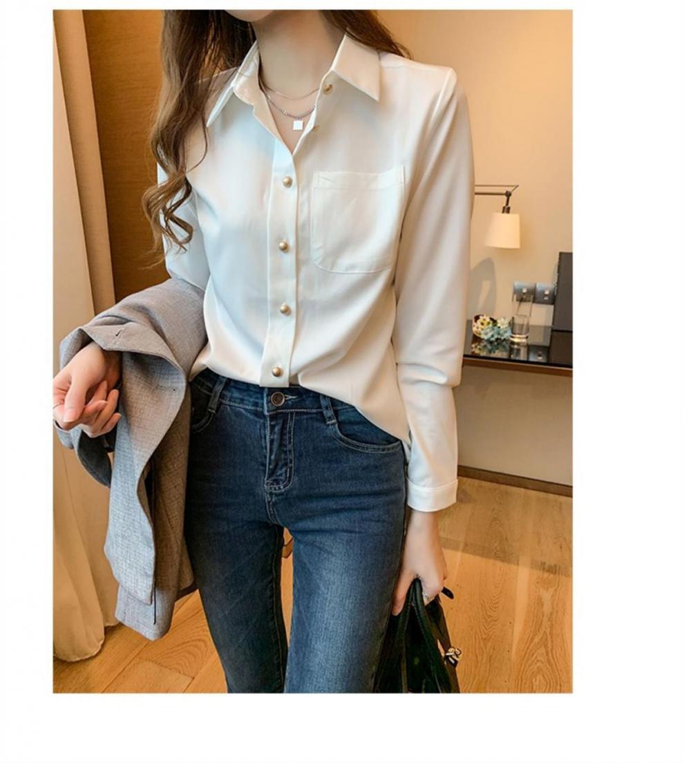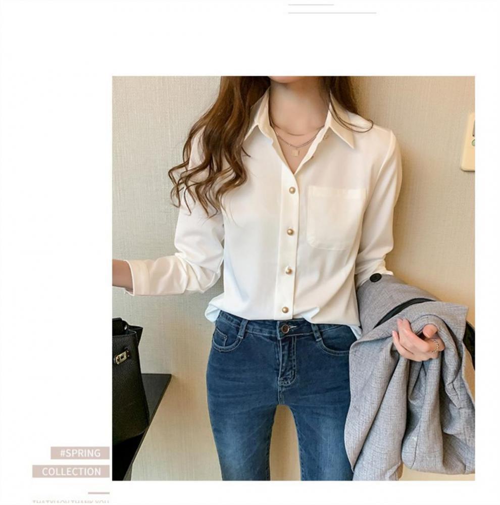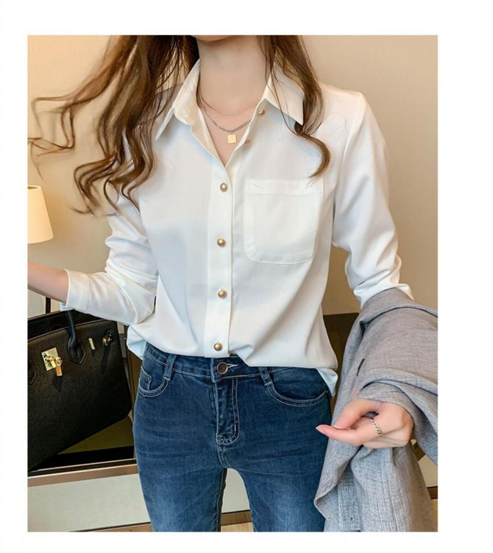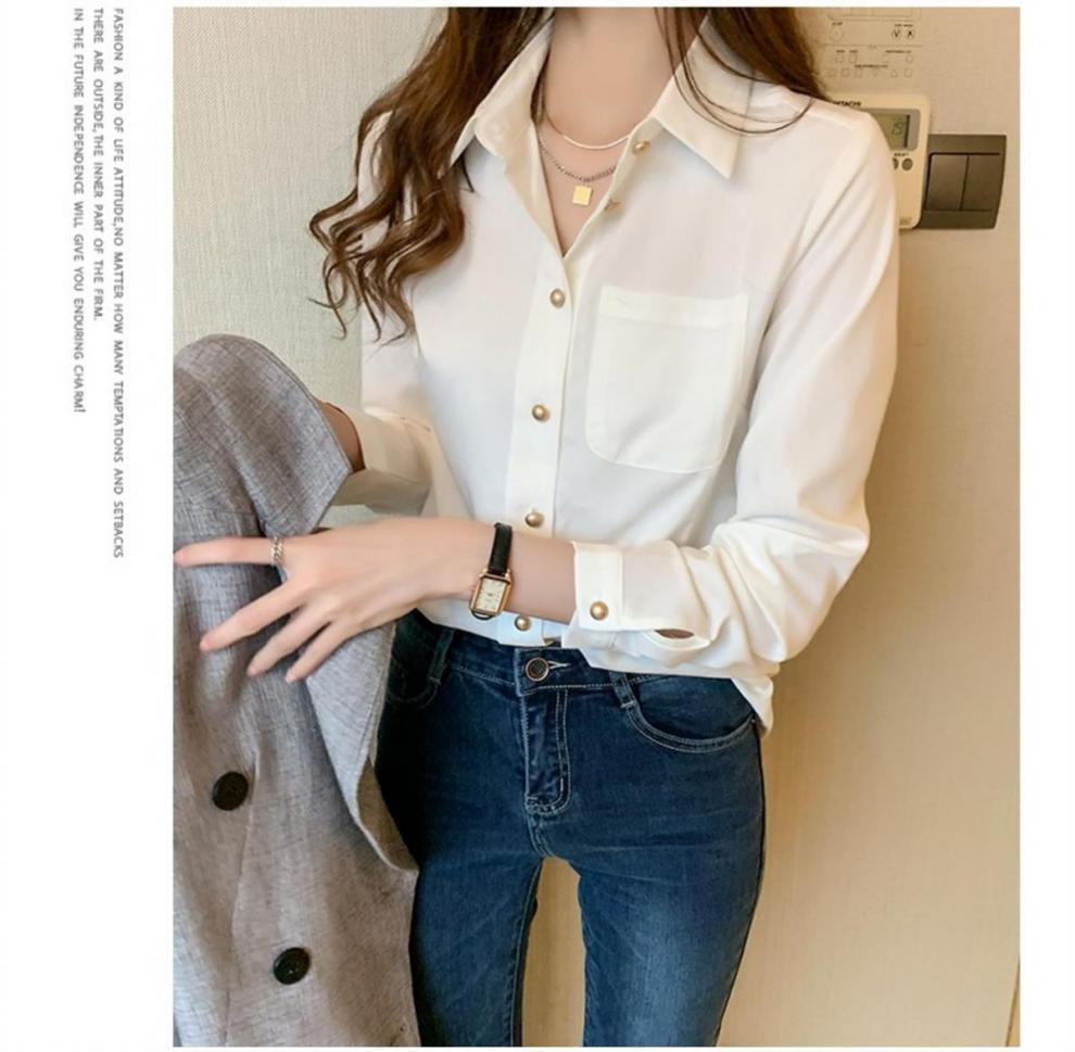 Camisa blanca de gasa para mujer, primavera y otoño de 2024, holgada, de manga larga, estilo occidental