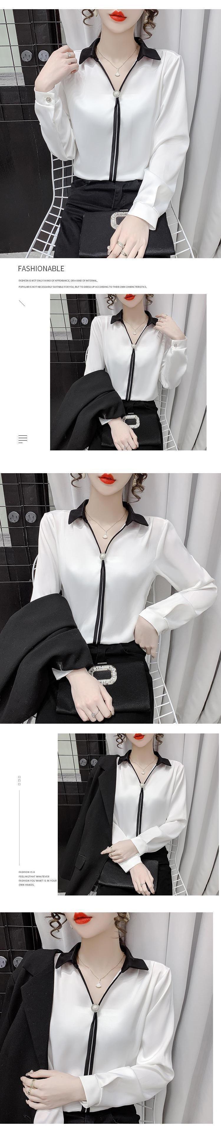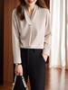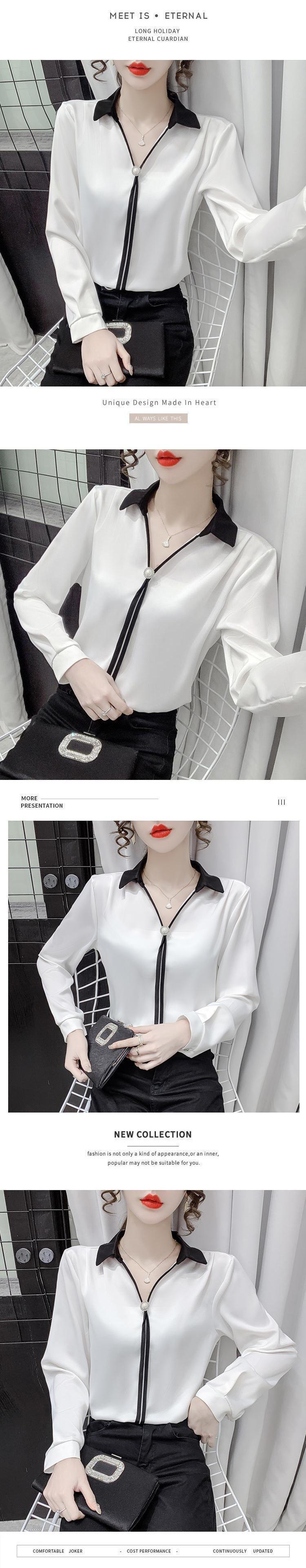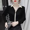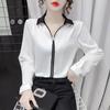 Camisa de gasa blanca para mujer, manga larga, primavera y otoño, nueva camiseta elegante, prenda exterior, cuello en V.