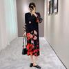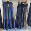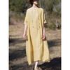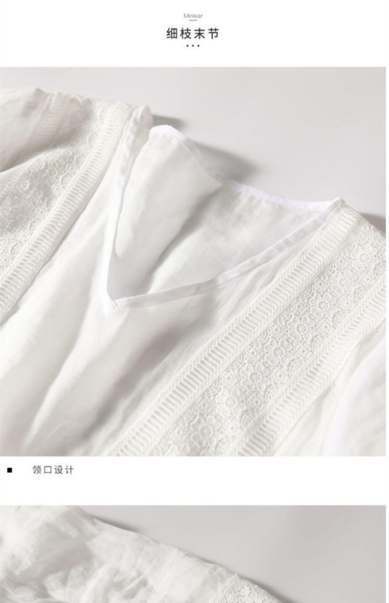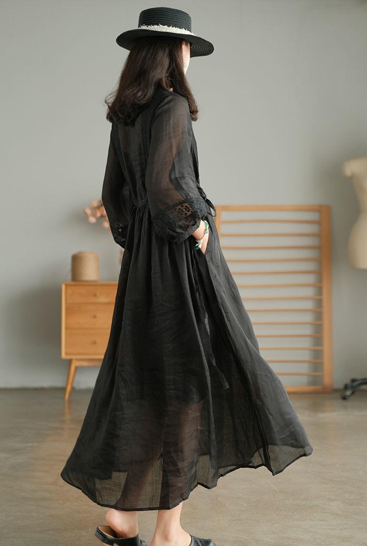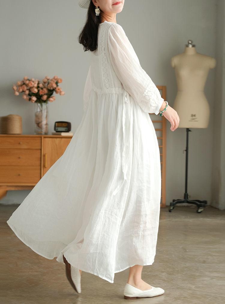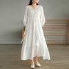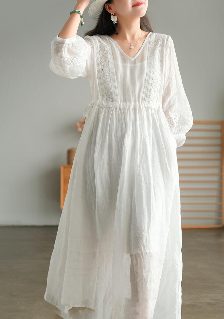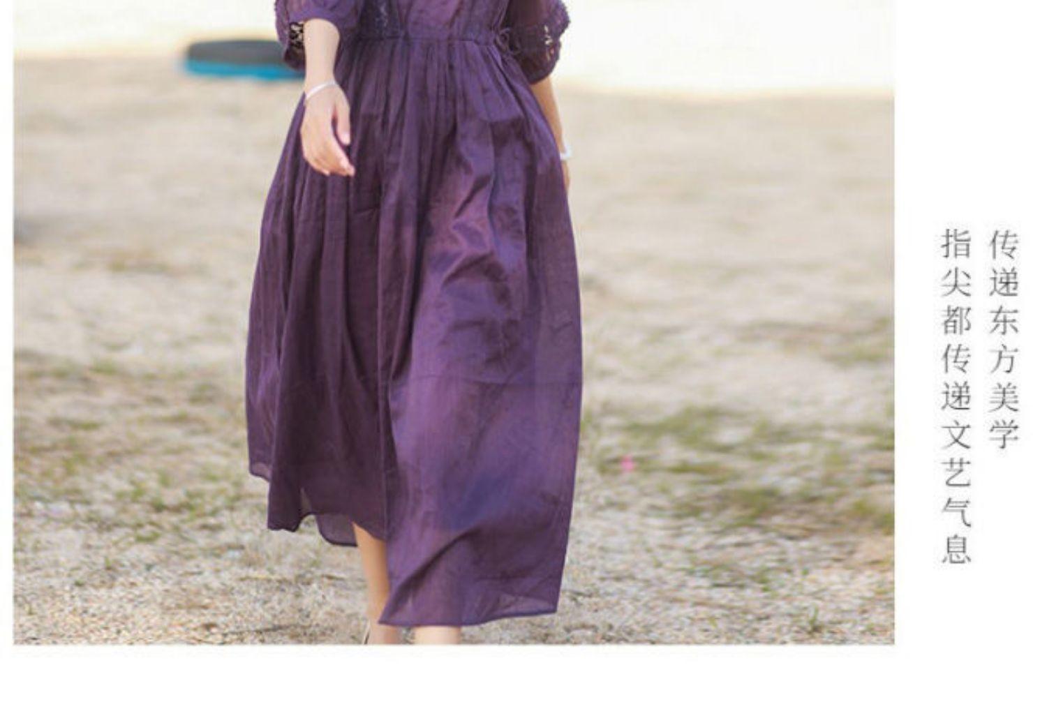 Vestido Cómodo y a la Moda Sencillo de Siete Mangas Estilo Artístico con Cordones Largo Cuello en V Estilo Fresco