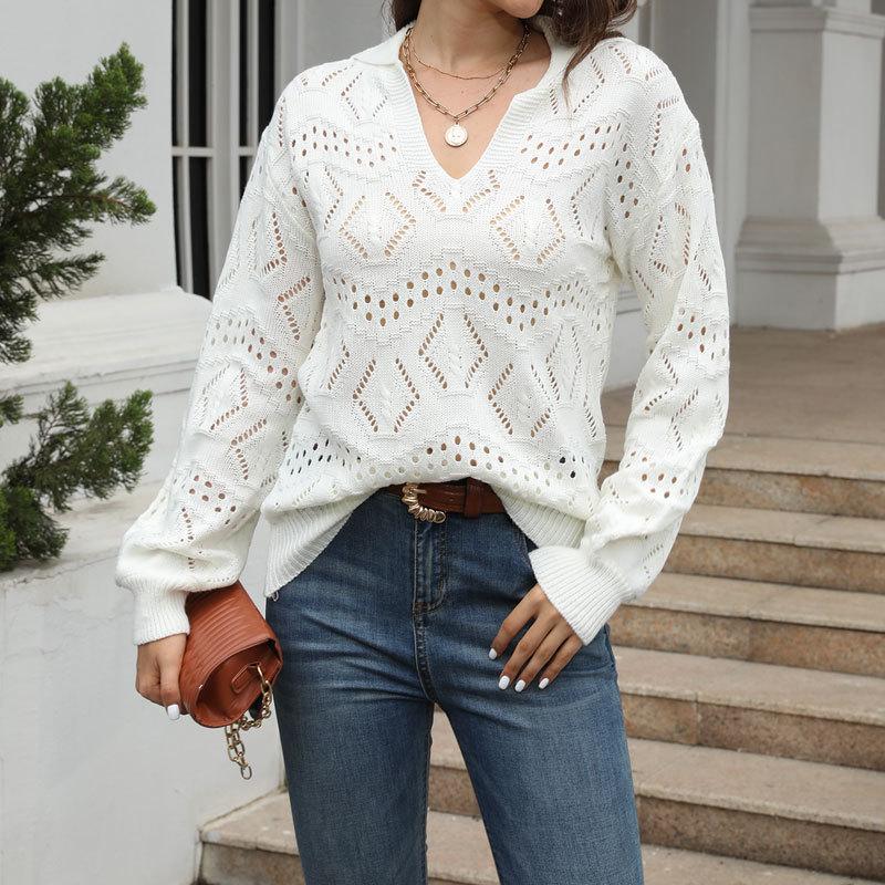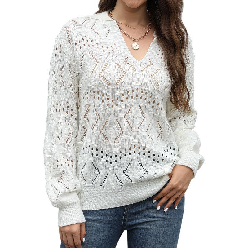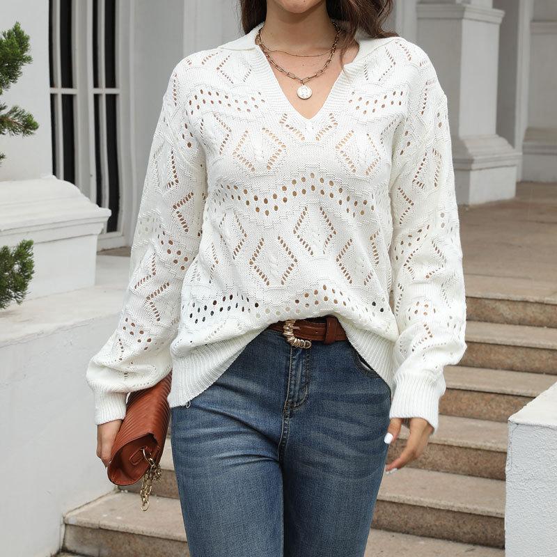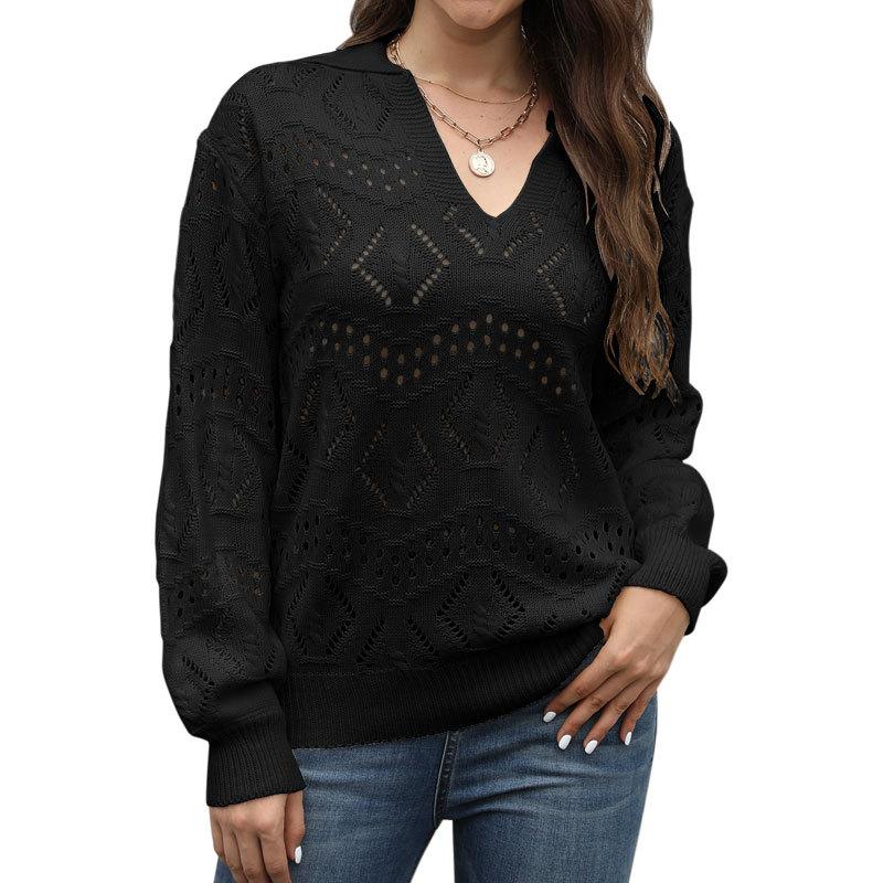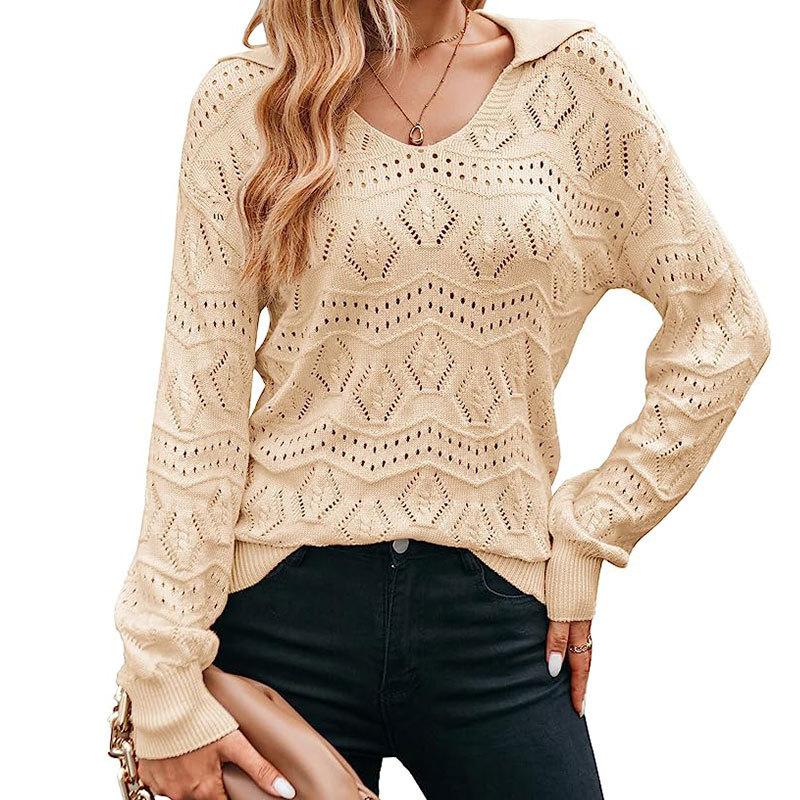 Suéteres de Mujer de Exportación Europea y Americana Transfronterizos Amazon Estilo Holgazán Diseño Tejido Recorte Cuello en V Manga Larga Tops Versátiles