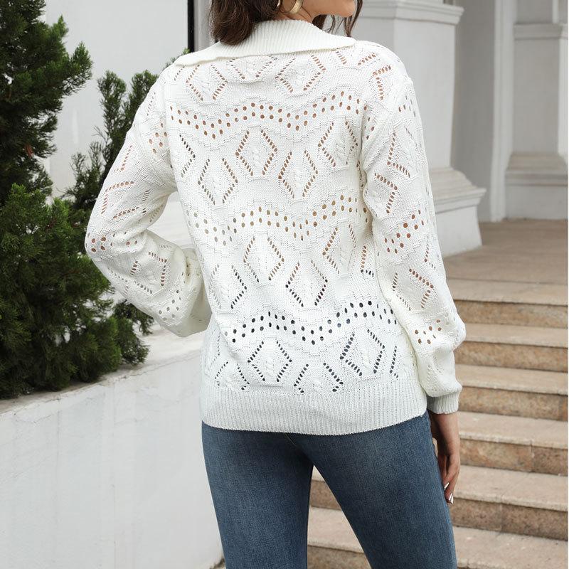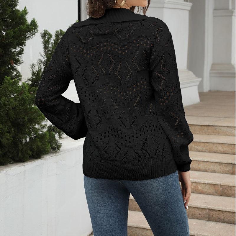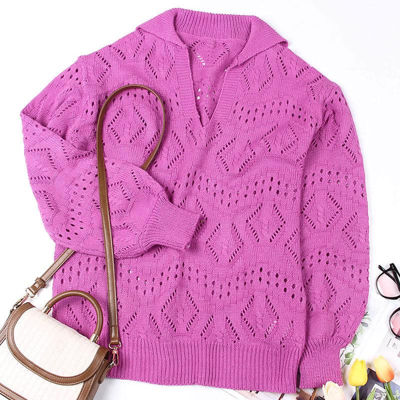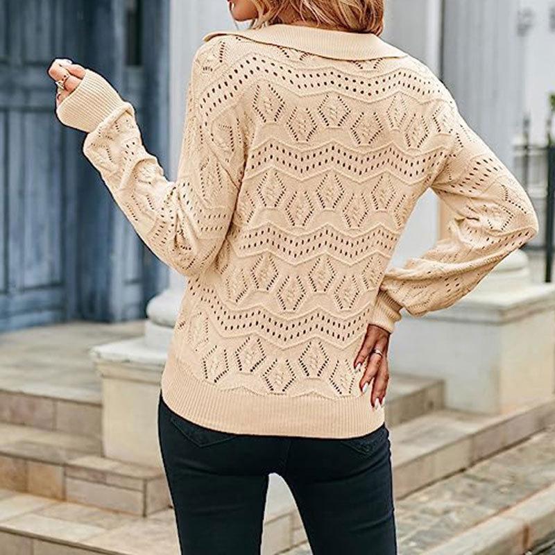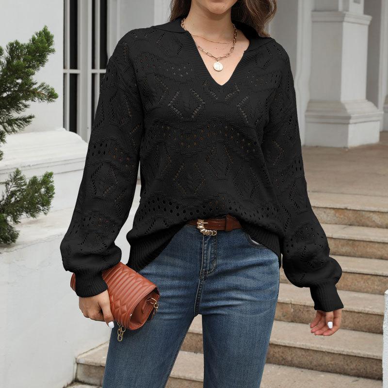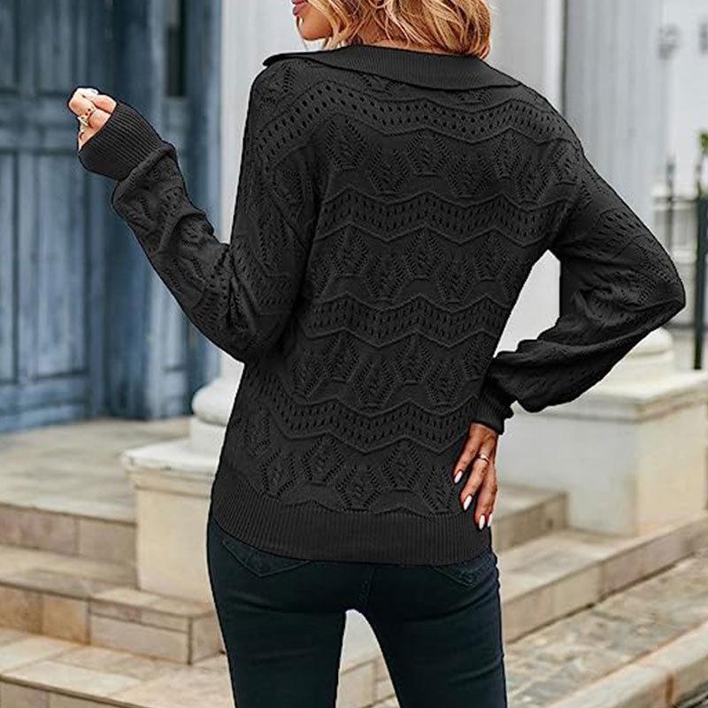 Suéteres de Mujer de Exportación Europea y Americana Transfronterizos Amazon Estilo Holgazán Diseño Tejido Recorte Cuello en V Manga Larga Tops Versátiles