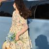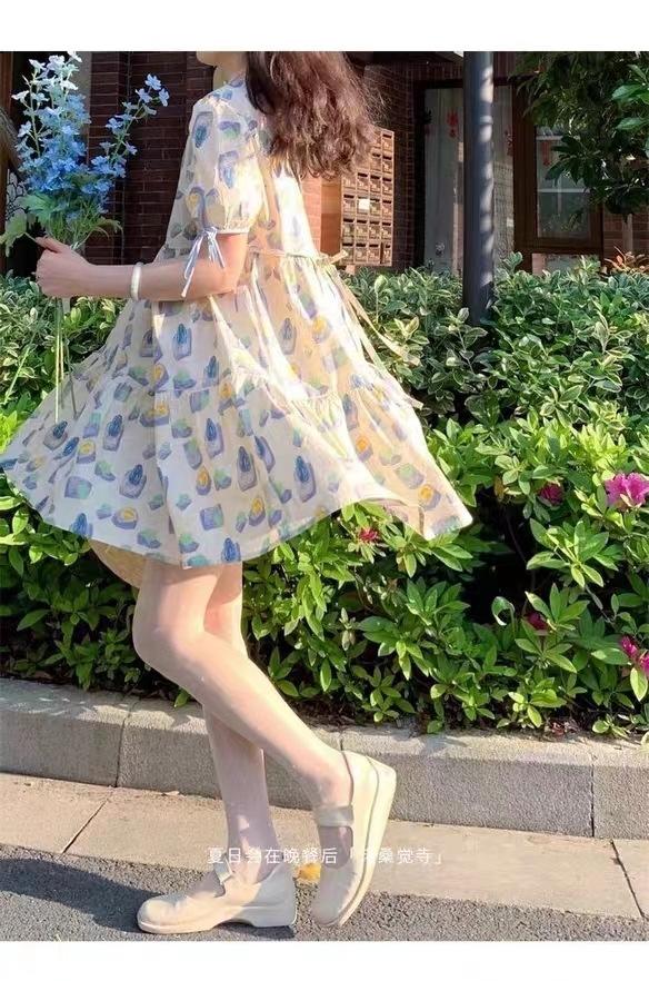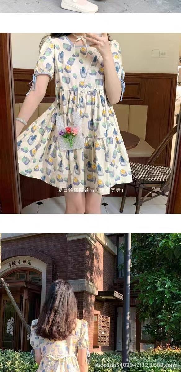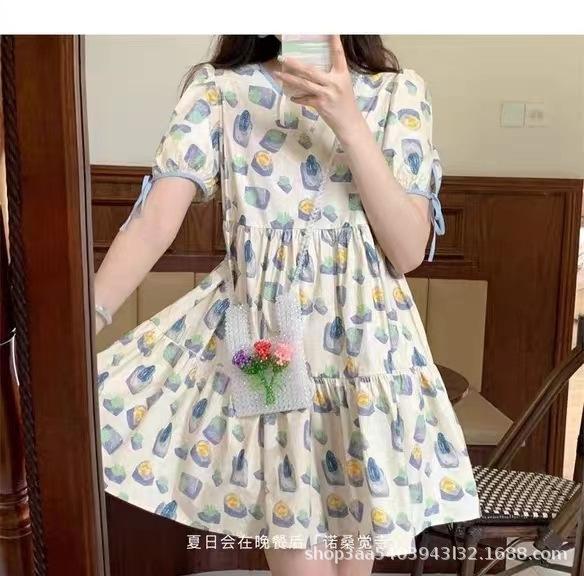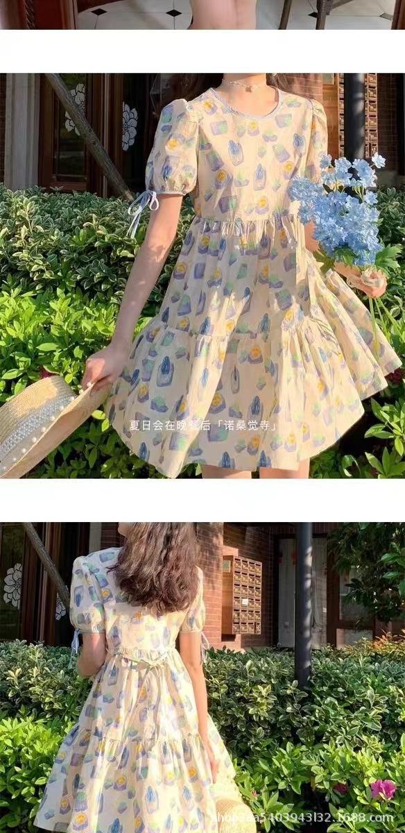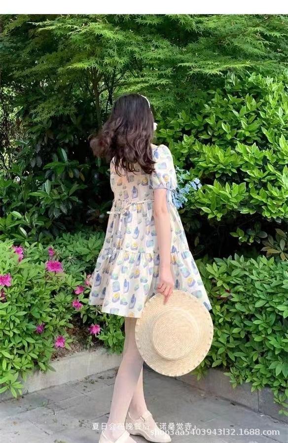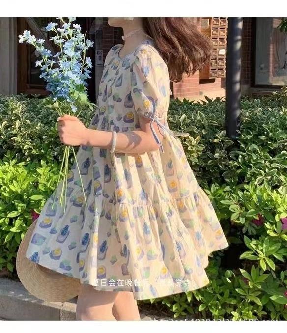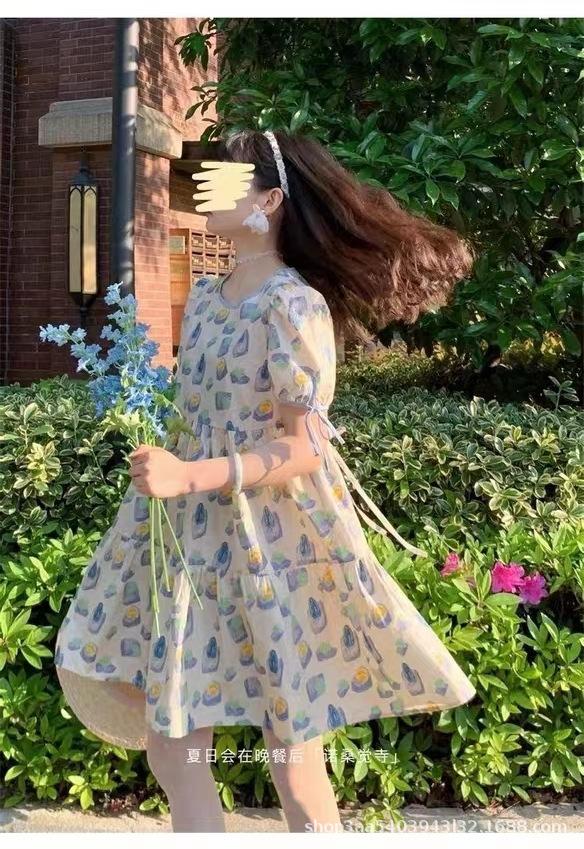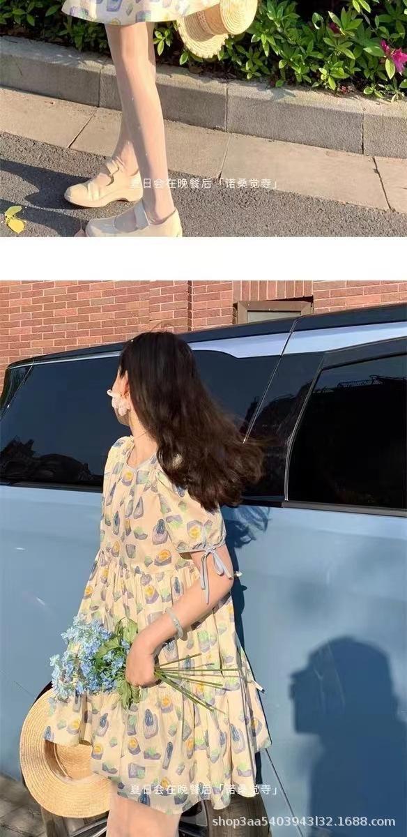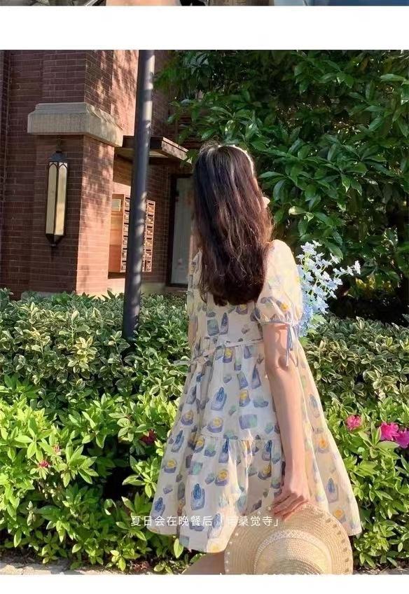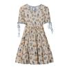 Vestido Francés Floral con Cordones en la Cintura para Mujer, Nuevo Estilo Verano 2025, Holgado y Adelgazante, Moderno, Versátil, Dulce Vestido Corto