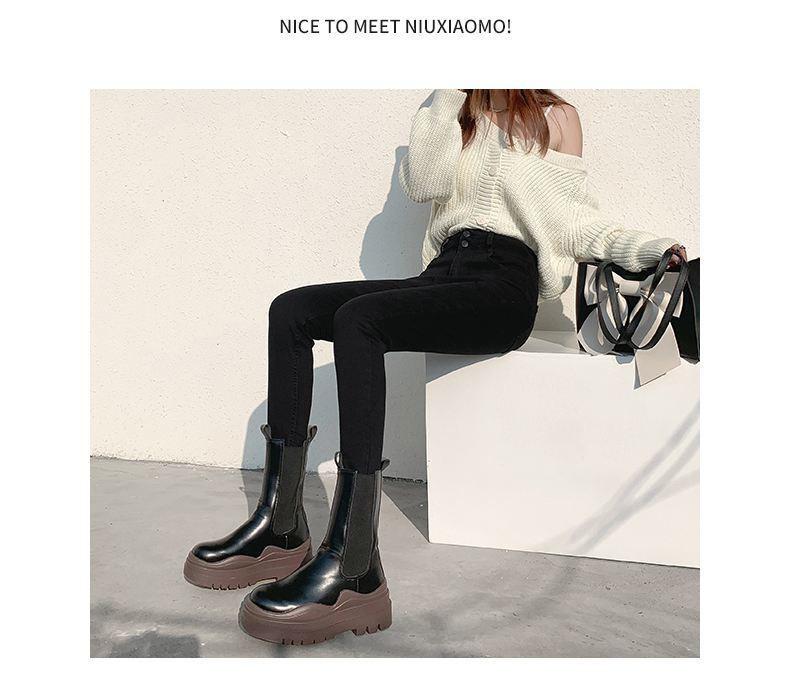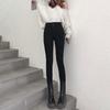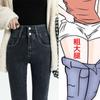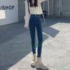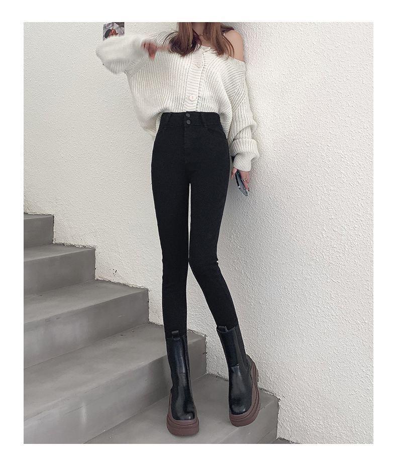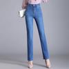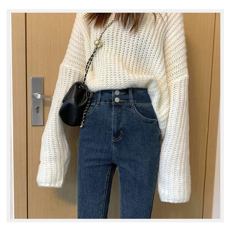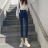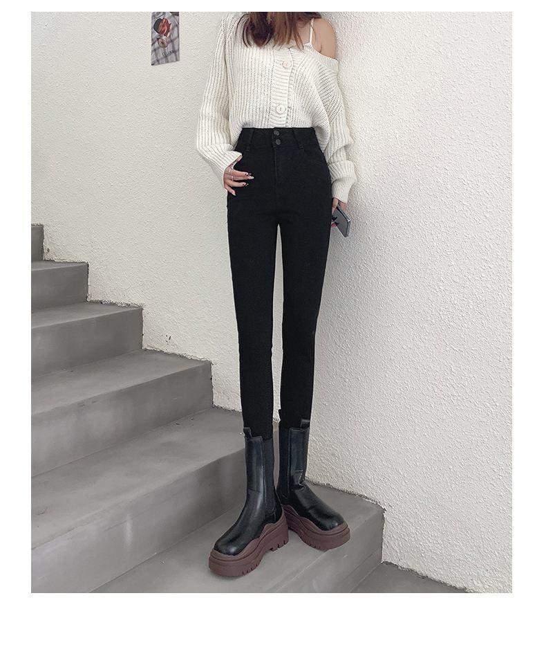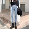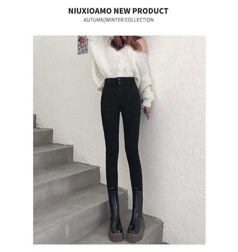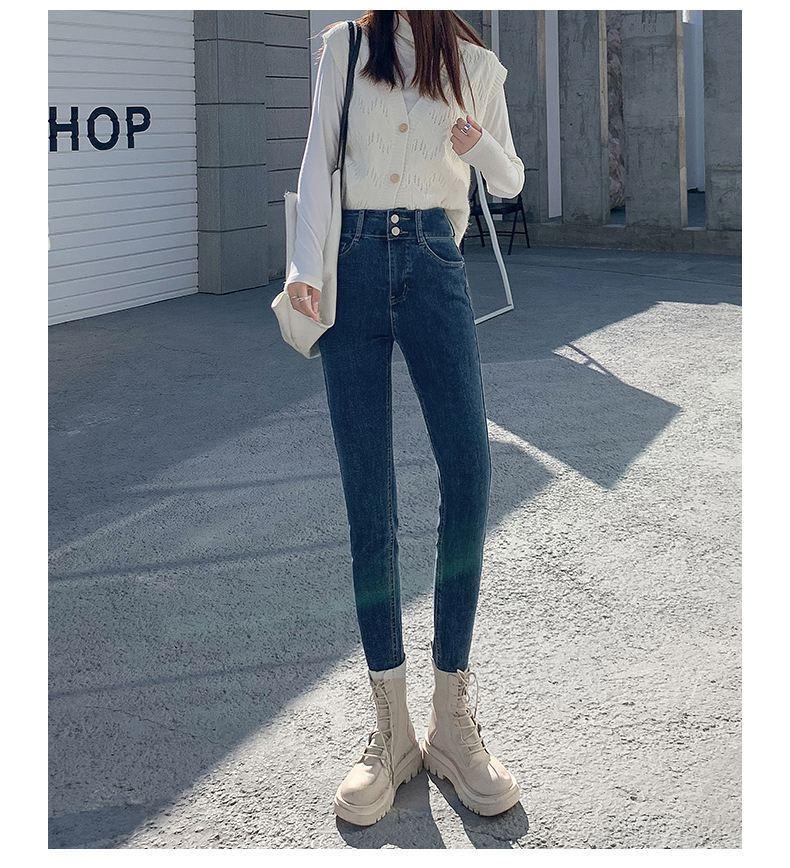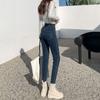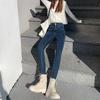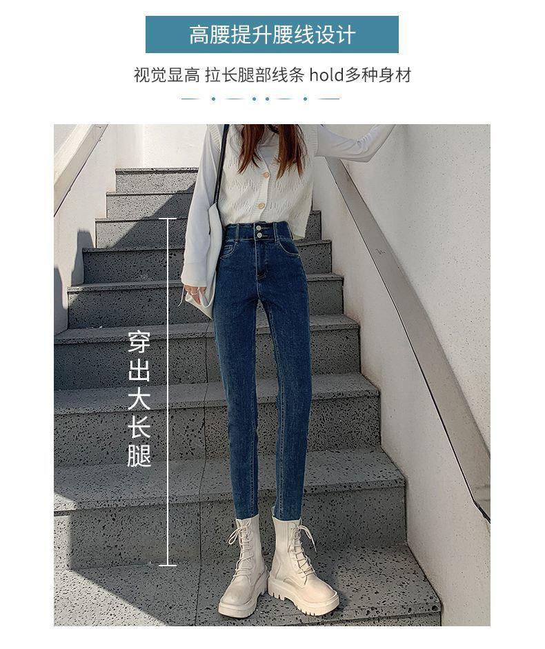 Pantalones vaqueros de doble hebilla azul grisáceo de otoño e invierno para mujer, pantalones elásticos ajustados, pantalones cortos de cintura alta ajustados, pantalones de moda que combinan con todo.