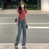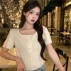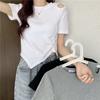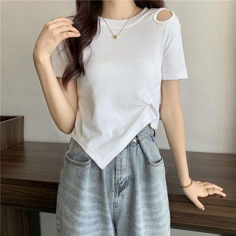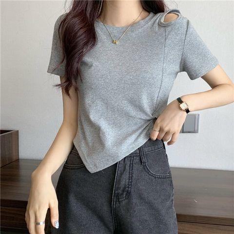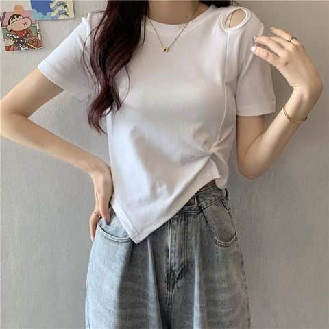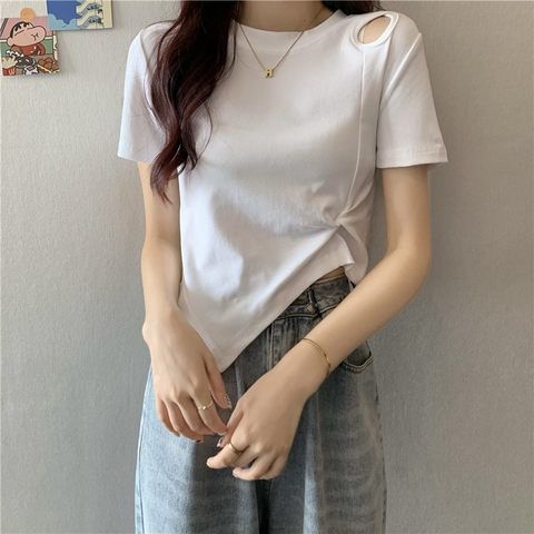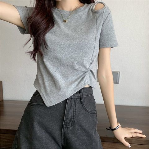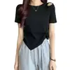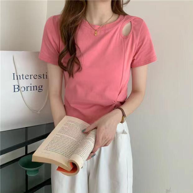Verano 2023 Nuevo Diseño Nicho Cut Out Cintura Alta Slim Top Dulce y Picante Rosa Camiseta de Manga Corta para Mujer