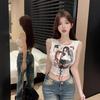 Camisola corta estilo retro americano dulce y picante para primavera y verano de 2023, para uso interior y exterior, para mujer