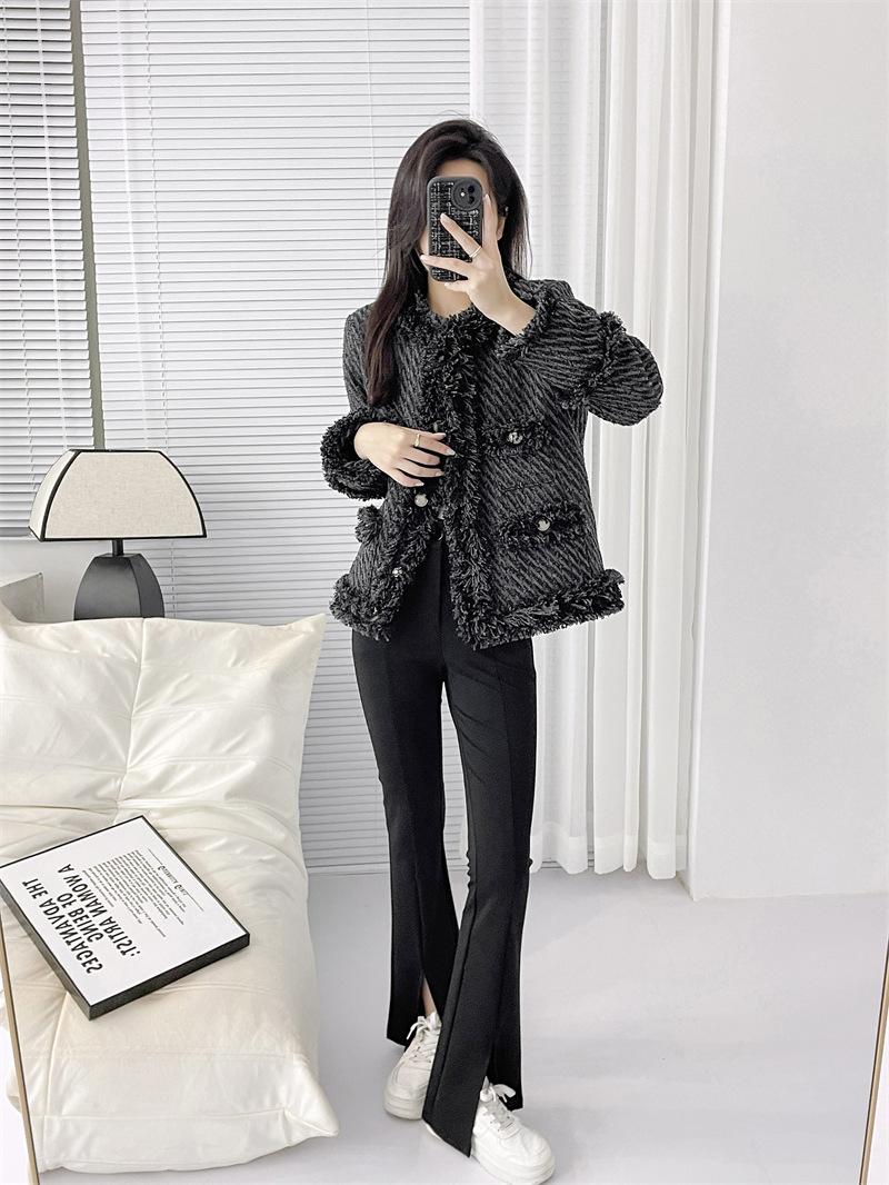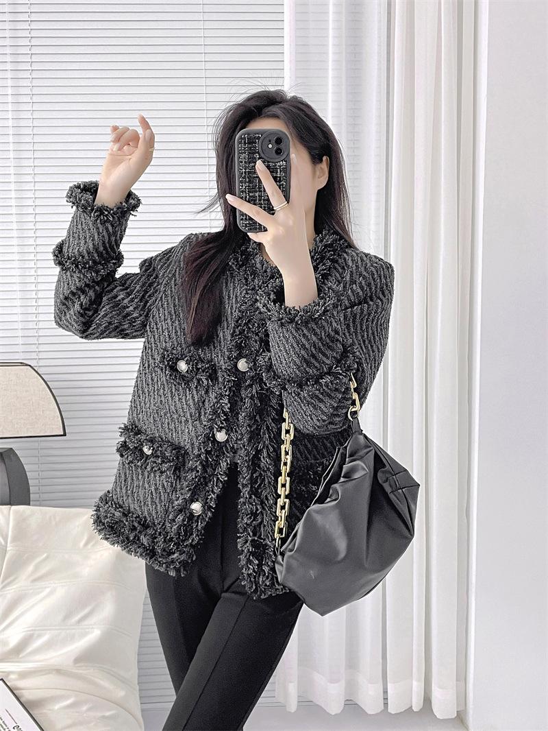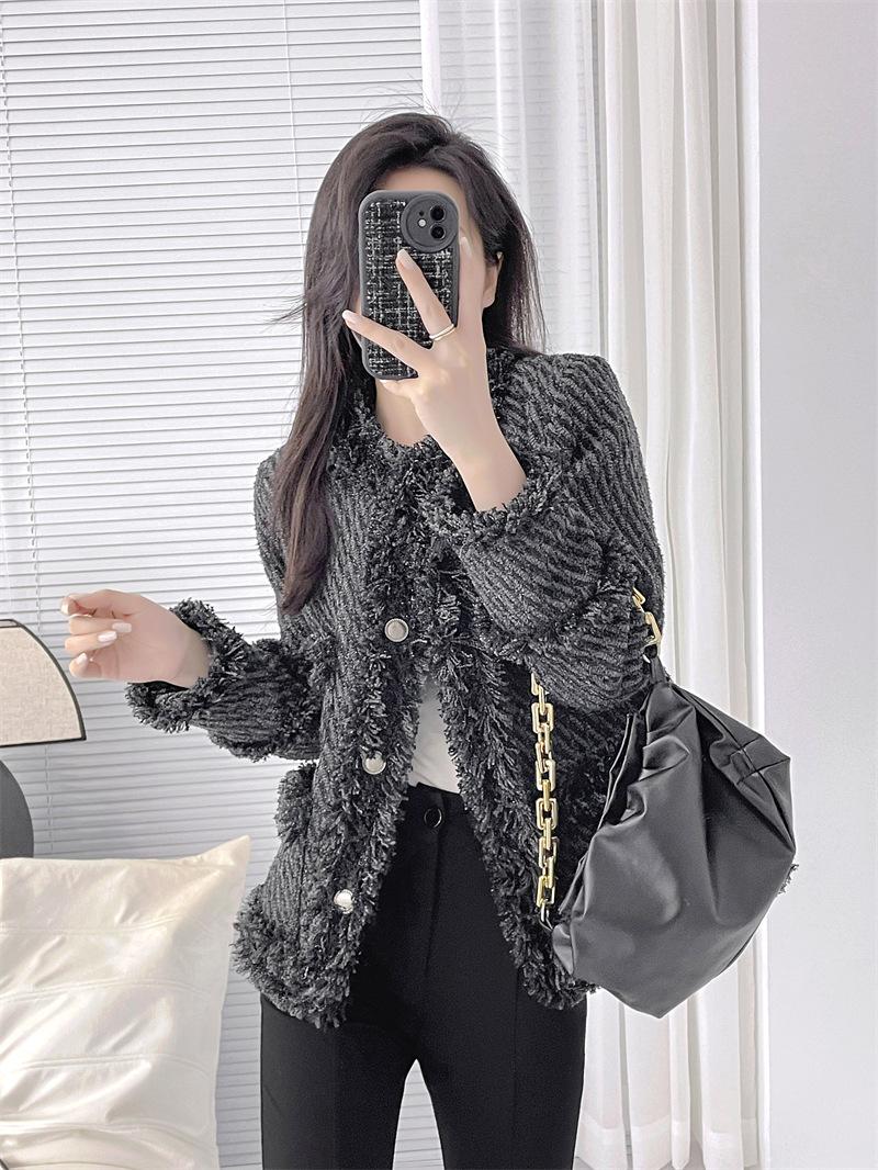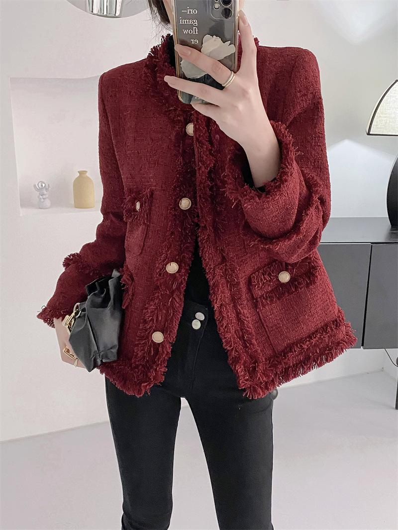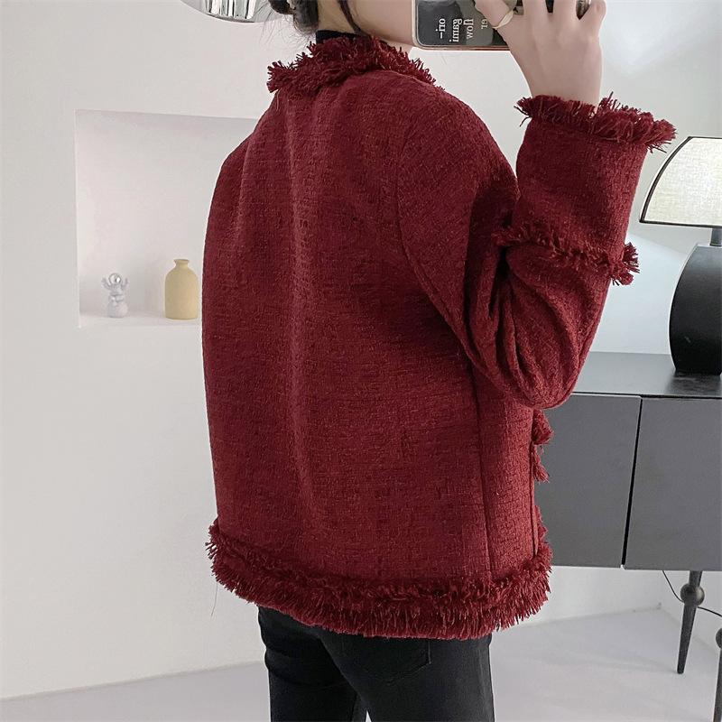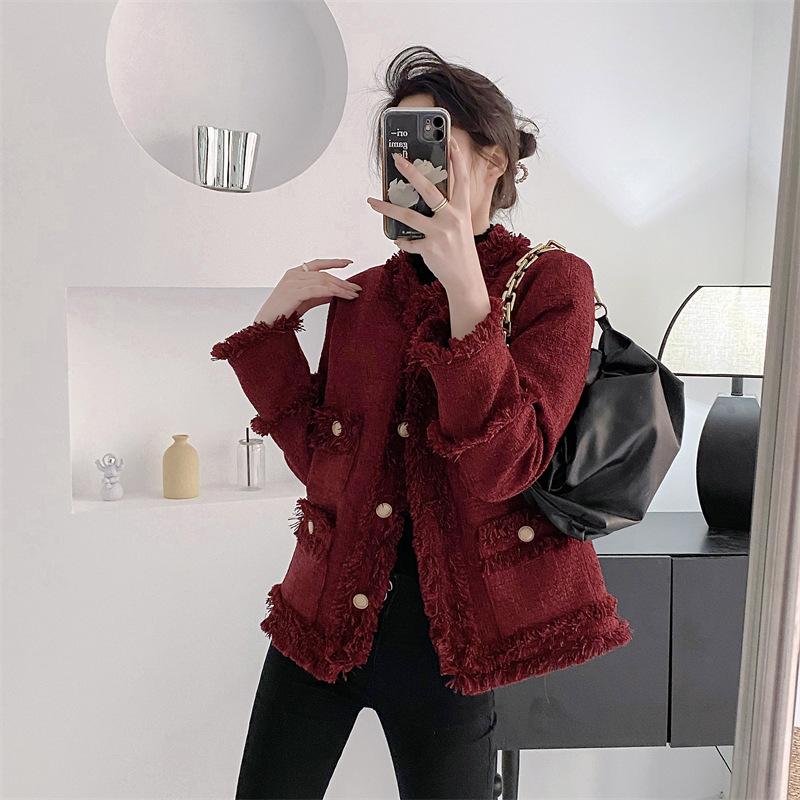 Abrigo rojo de lana estilo Chanel de Año Nuevo para primavera y otoño, ropa de mujer con sentido del diseño, diez o tres líneas retro francés, top de flecos para mujer