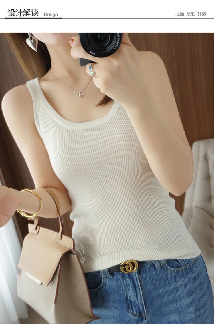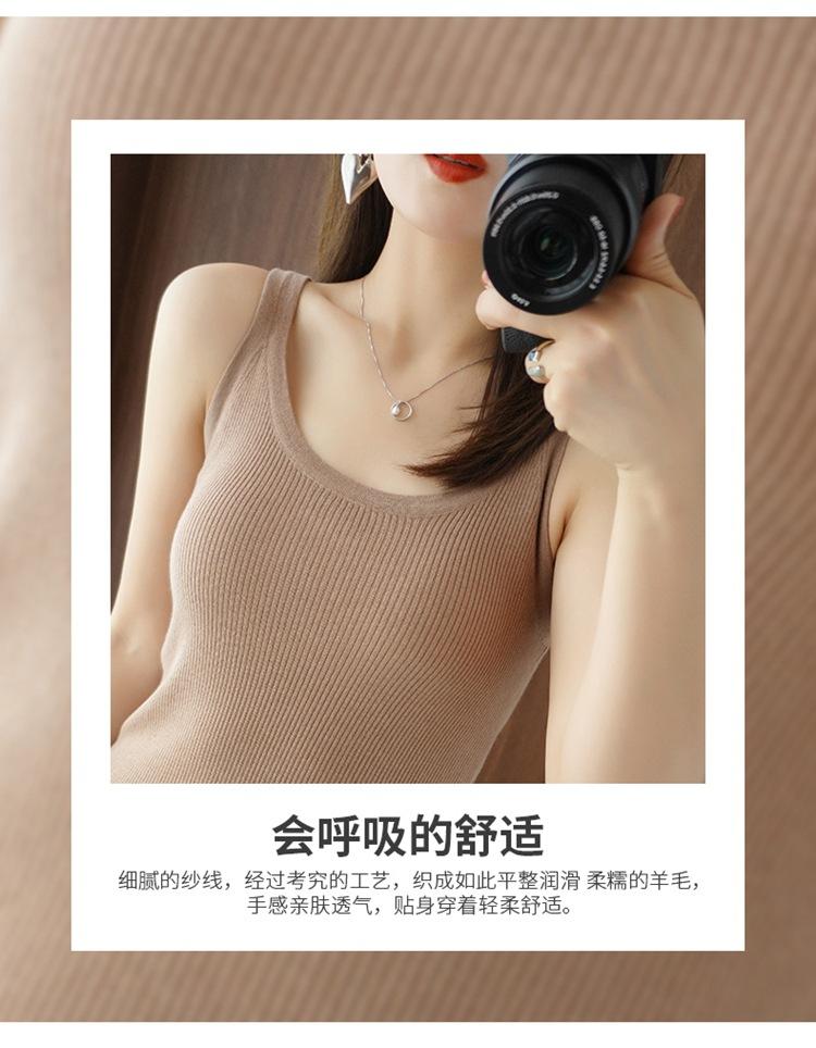 Chaleco Básico de Punto de Lana Merino Puro para Mujer, Combinable con Todo, Primavera Temprana 2024 Nuevo, Color Sólido, Traje Interior