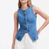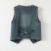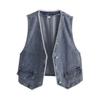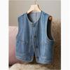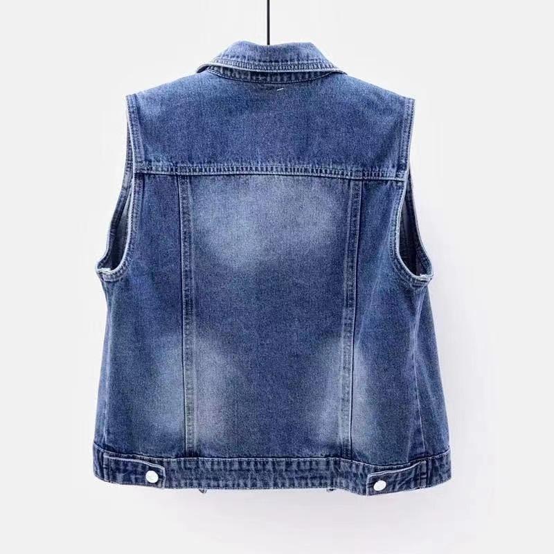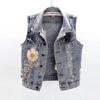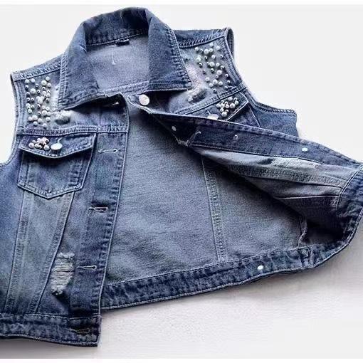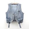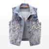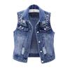 Chaleco de Mezclilla Nuevo de Primavera y Otoño 2025 para Mujer Tops Cortos Lavados con Agujeros y Cuentas sin Mangas Más Fácil de Combinar Top Ajustado Moderno