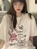 Camiseta de manga corta de algodón puro con hombros descubiertos para mujer, nueva camiseta holgada de verano con diseño retro americano de nicho, top informal de talla grande