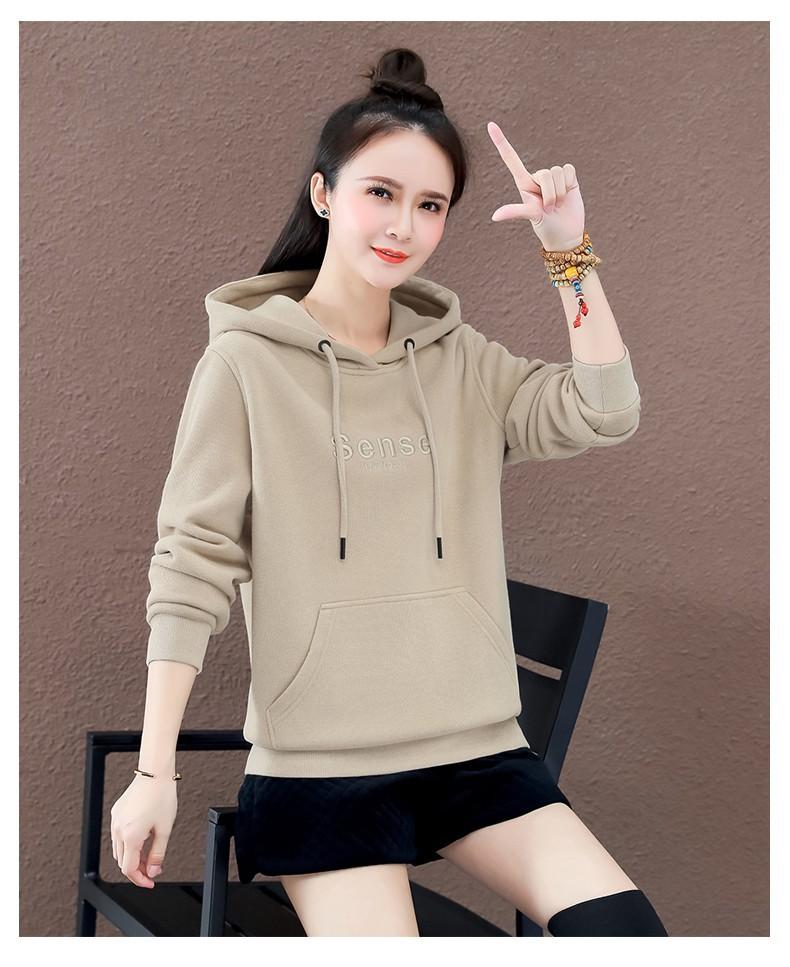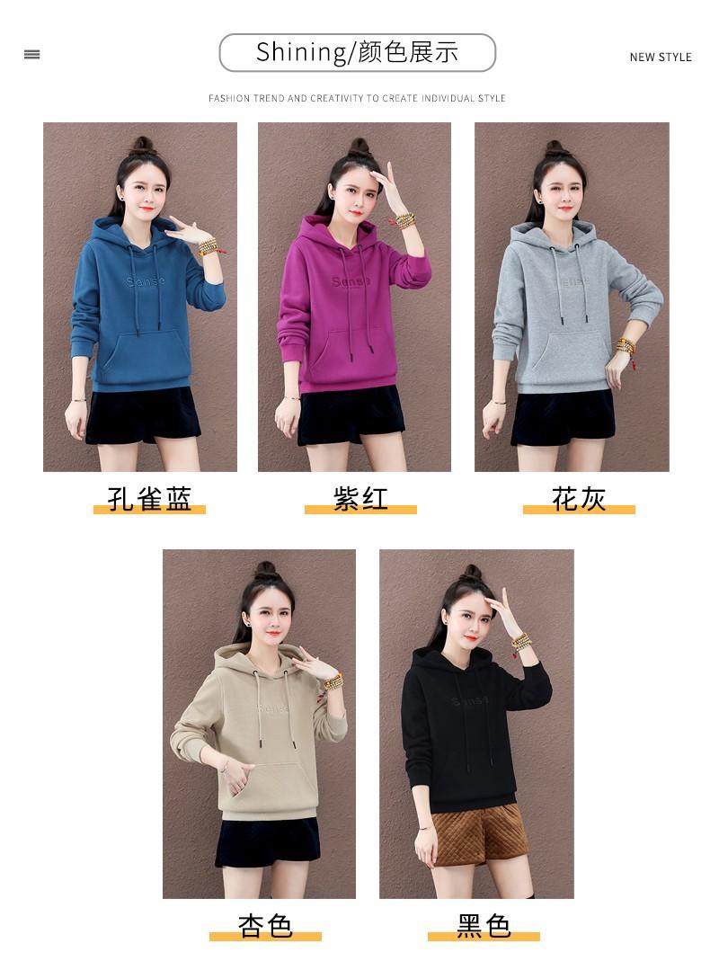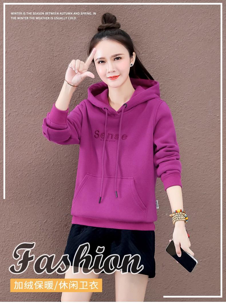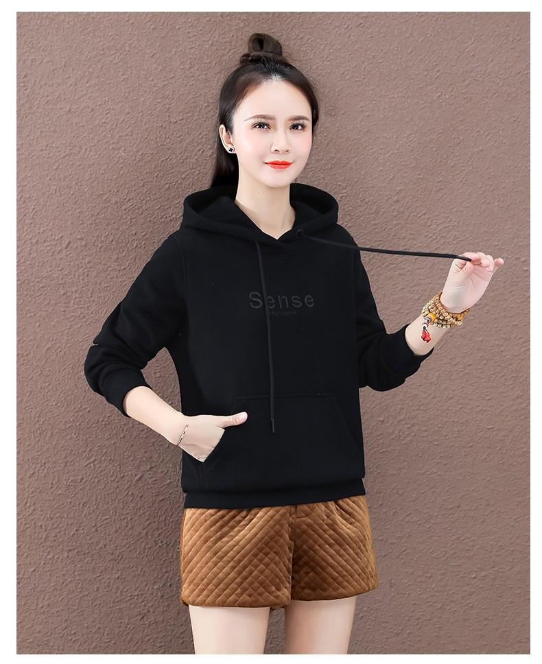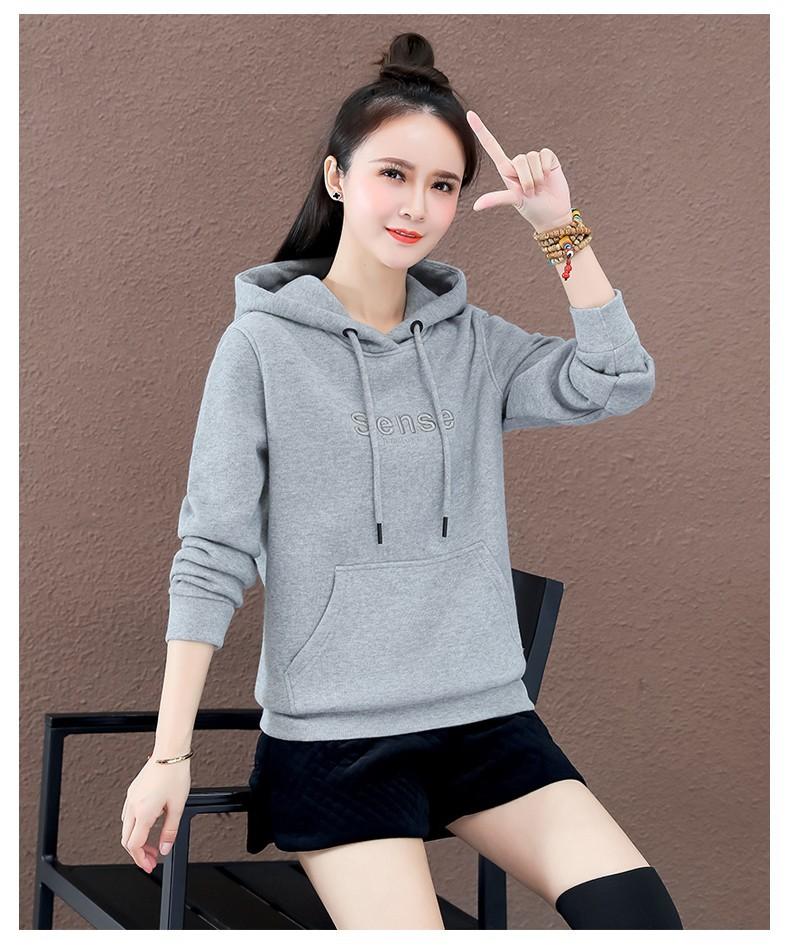 Sudadera Pequeña para Mujer Otoño e Invierno Terciopelo Grueso Jersey Top Nuevo Bolsillo de Solapa Bordado Pantalones con Capucha Estilo Casual Chaqueta