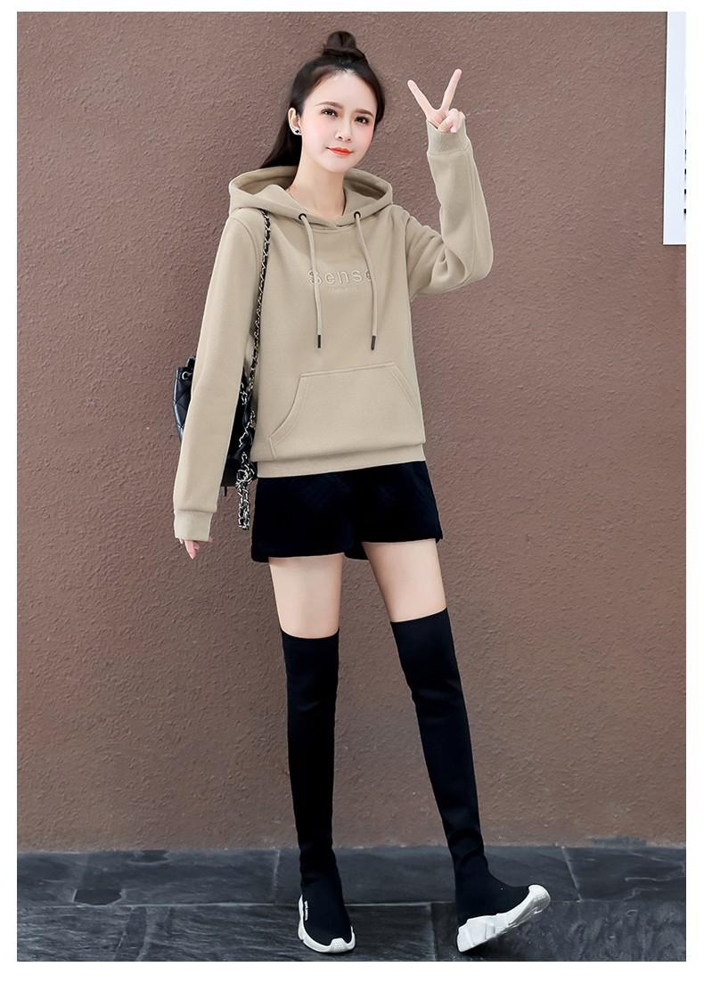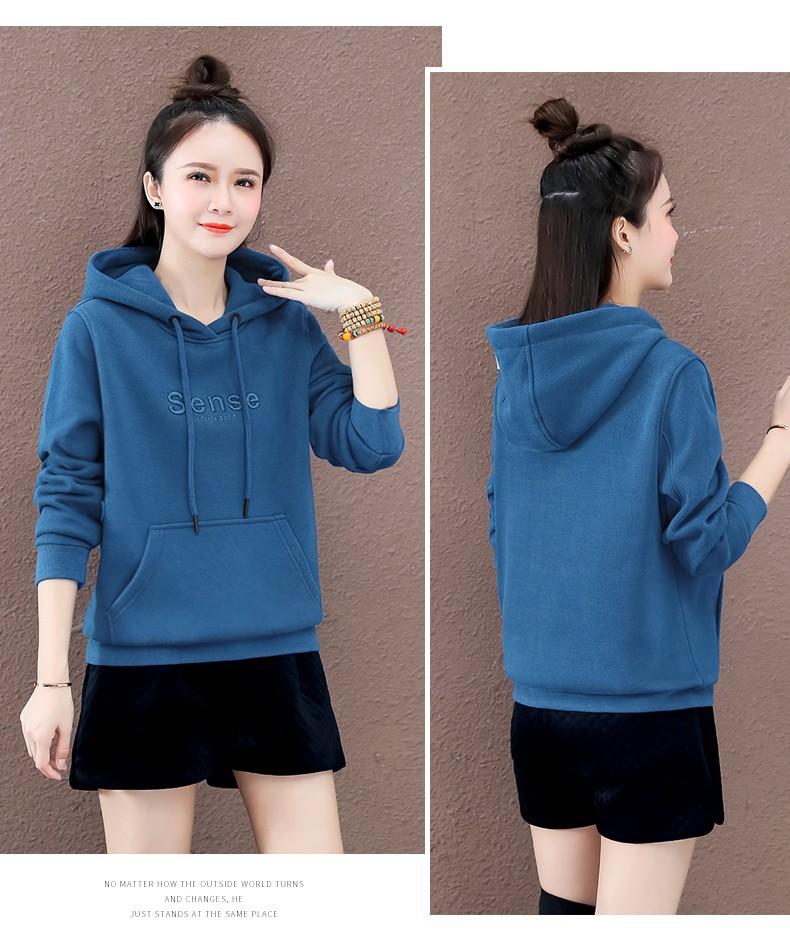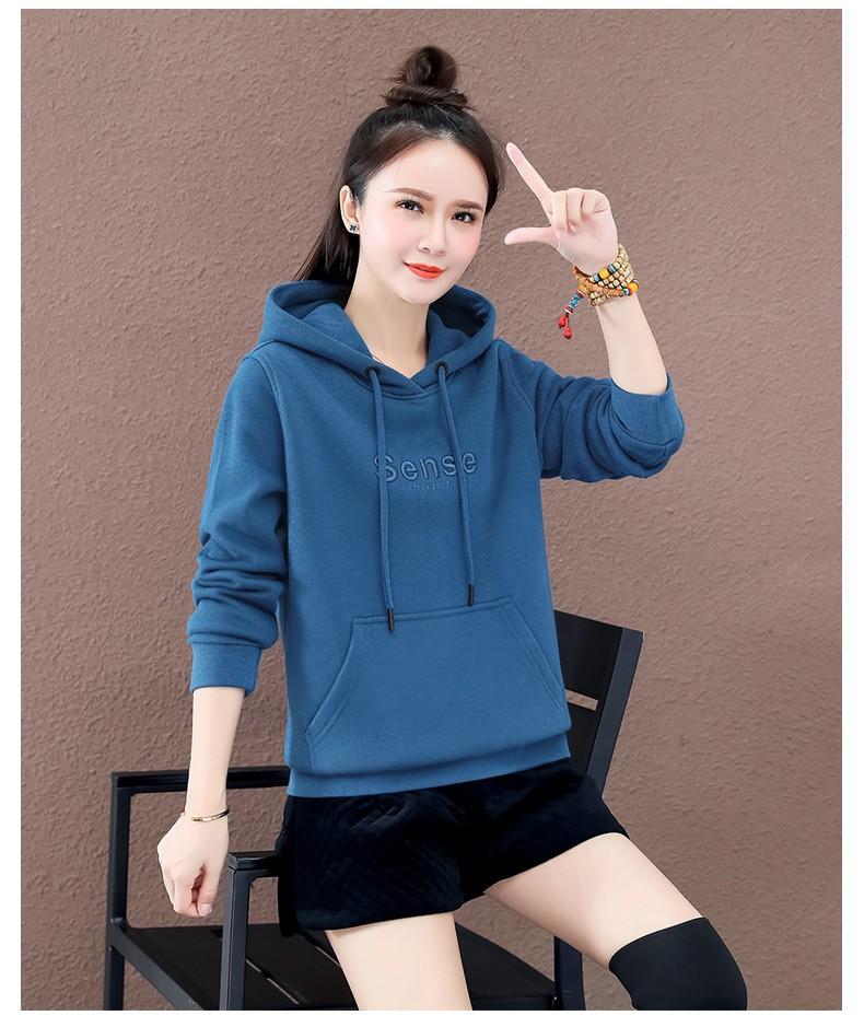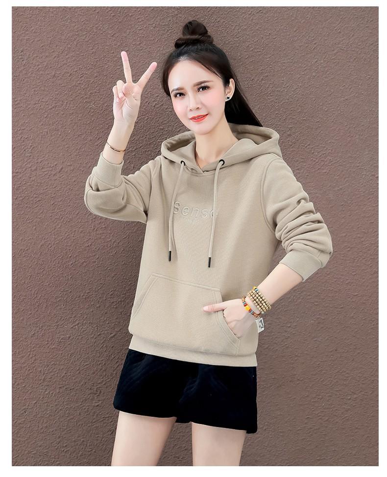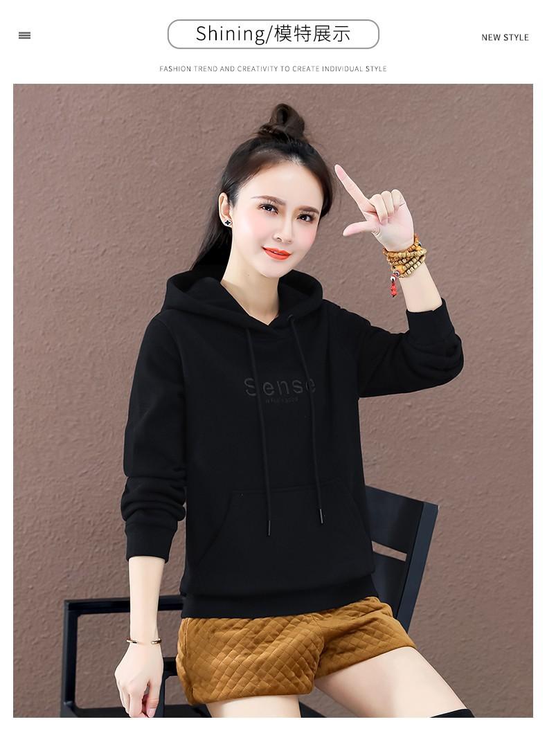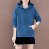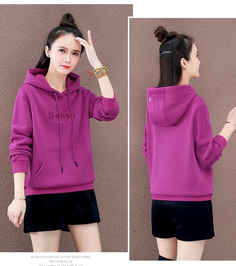 Sudadera Pequeña para Mujer Otoño e Invierno Terciopelo Grueso Jersey Top Nuevo Bolsillo de Solapa Bordado Pantalones con Capucha Estilo Casual Chaqueta