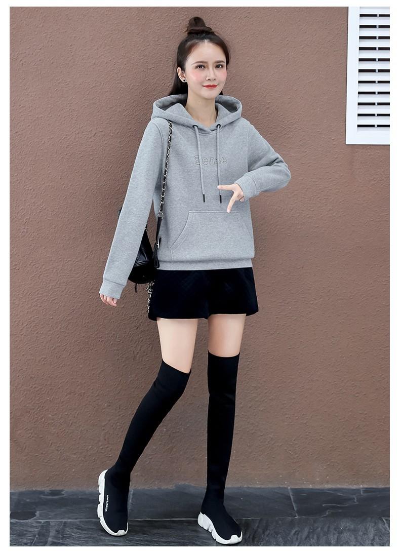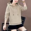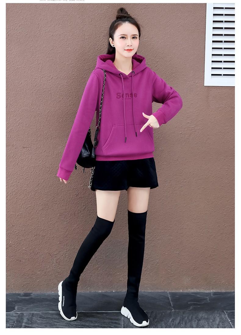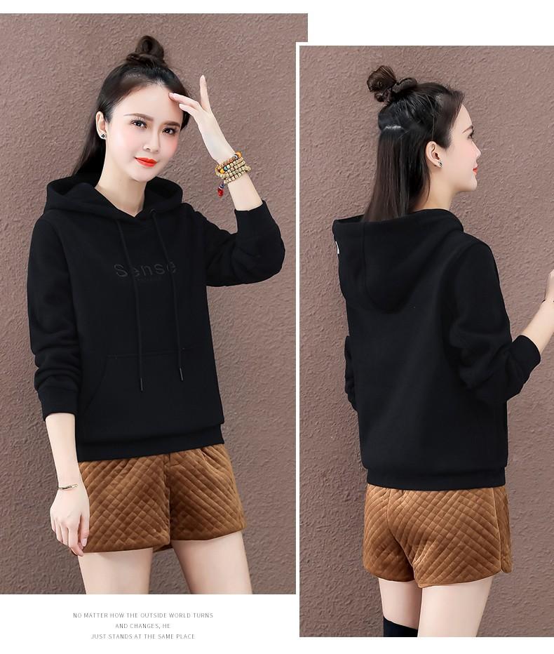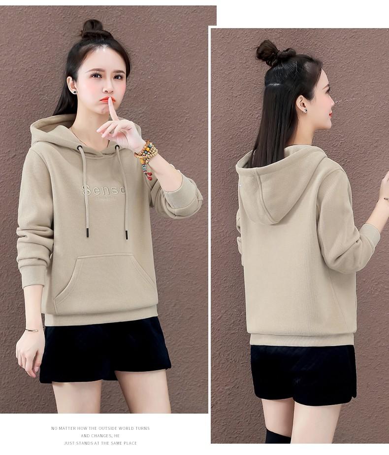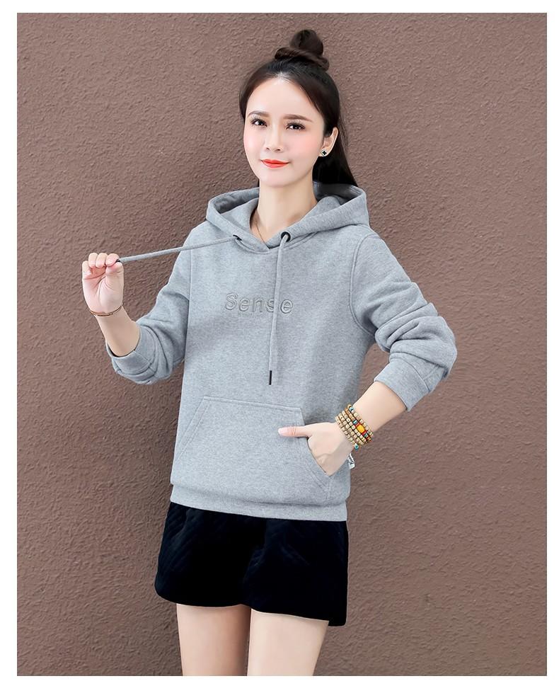 Sudadera Pequeña para Mujer Otoño e Invierno Terciopelo Grueso Jersey Top Nuevo Bolsillo de Solapa Bordado Pantalones con Capucha Estilo Casual Chaqueta