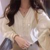Camisa fina blanca de manga larga para mujer, nueva y exclusiva, de principios de otoño de 2023.
