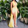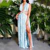 Vestido sexy de primavera 2022 Amazon Europeo y Americano con tirantes de cuello en V y abertura hasta el suelo, vestido de noche para mujer de comercio exterior