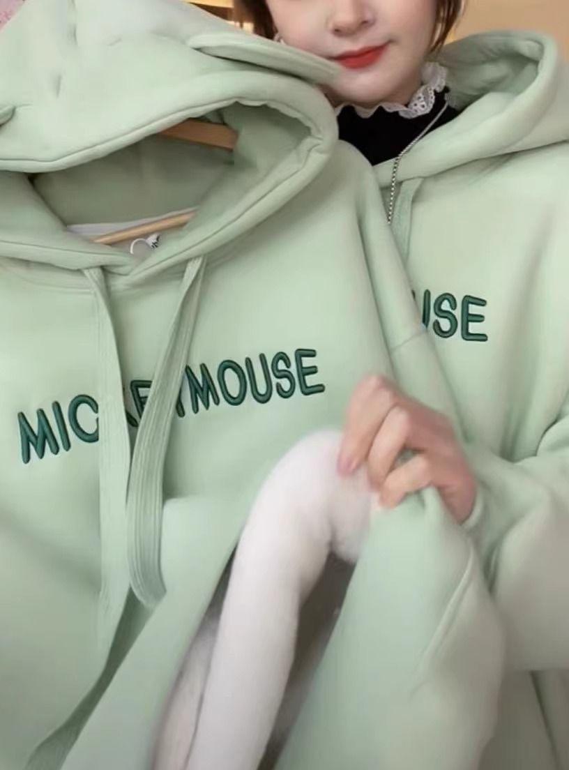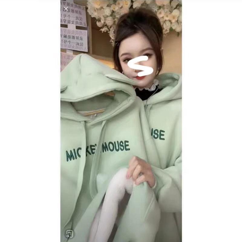 Suéter grueso verde oversize con forro polar para mujer otoño e invierno 2023 Nuevo abrigo cálido con capucha holgado adelgazante moda