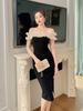 | Falda de tirantes de corte bajo con diamantes de Amazon, perspectiva de primavera 2022, vestido de noche negro de alta gama, vestido sexy para mujer |