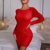 | Vestido plisado de manga larga con escote bajo para chica sexy, estilo europeo y americano, color rojo rosa, primavera y otoño de 2022 |