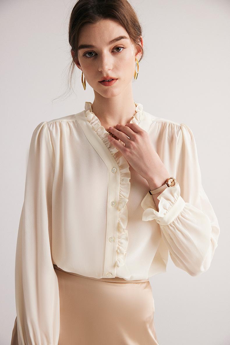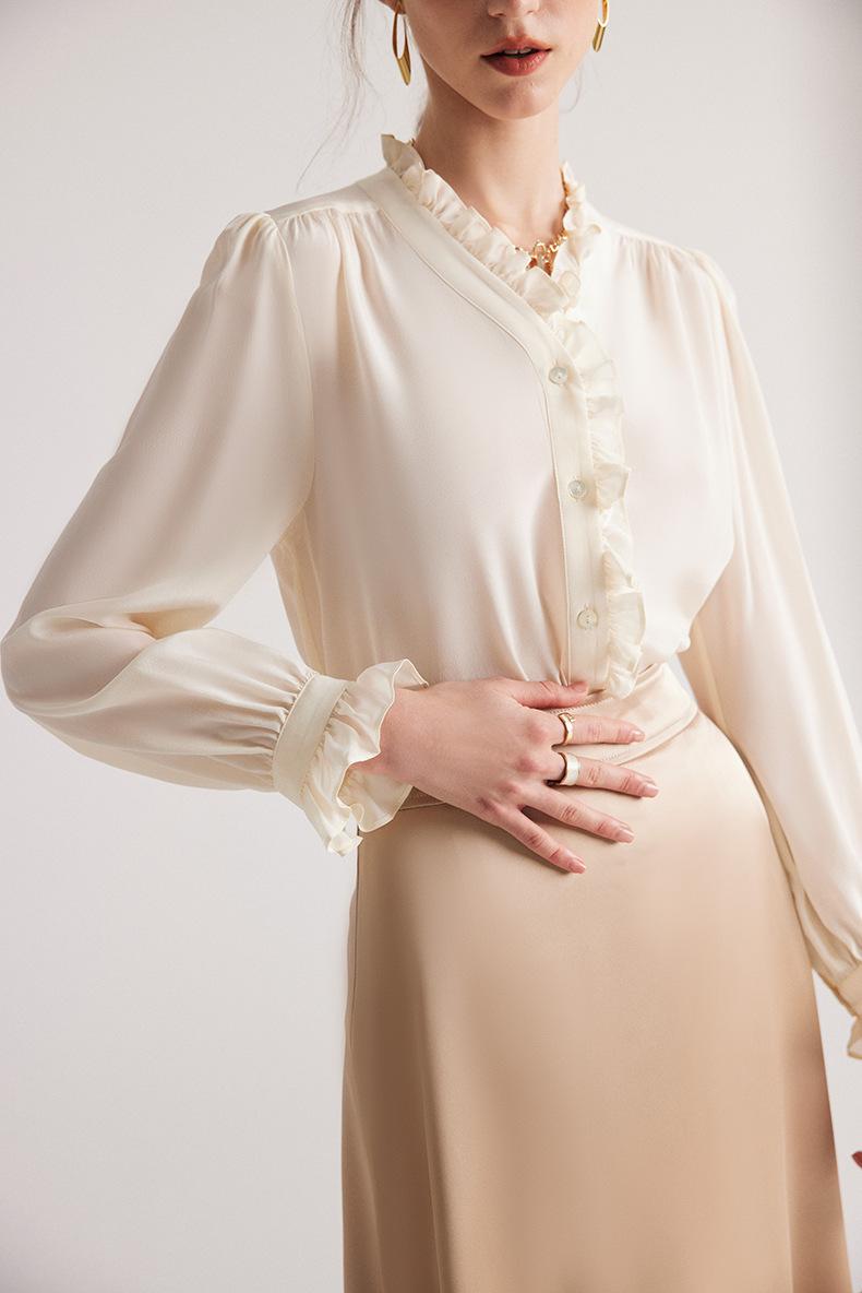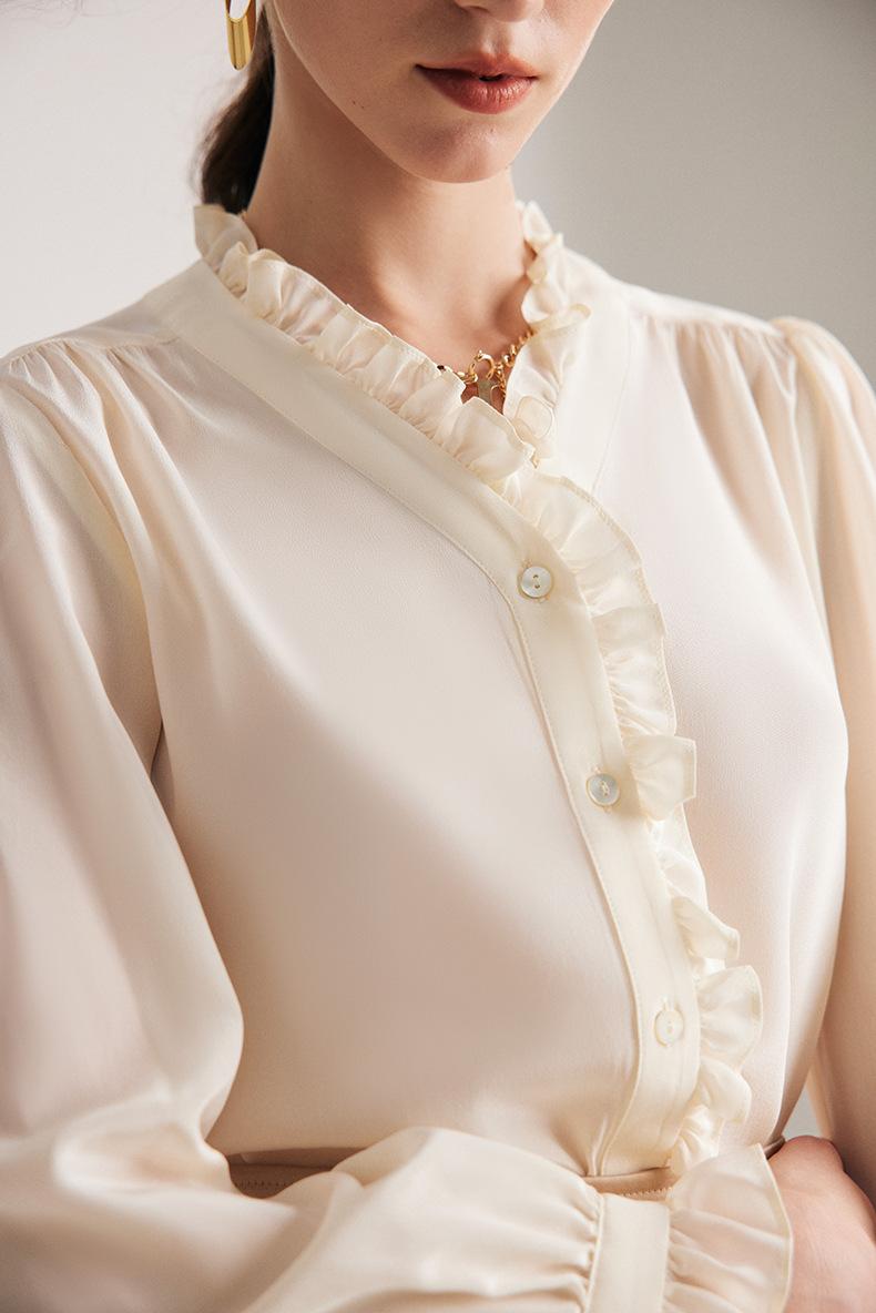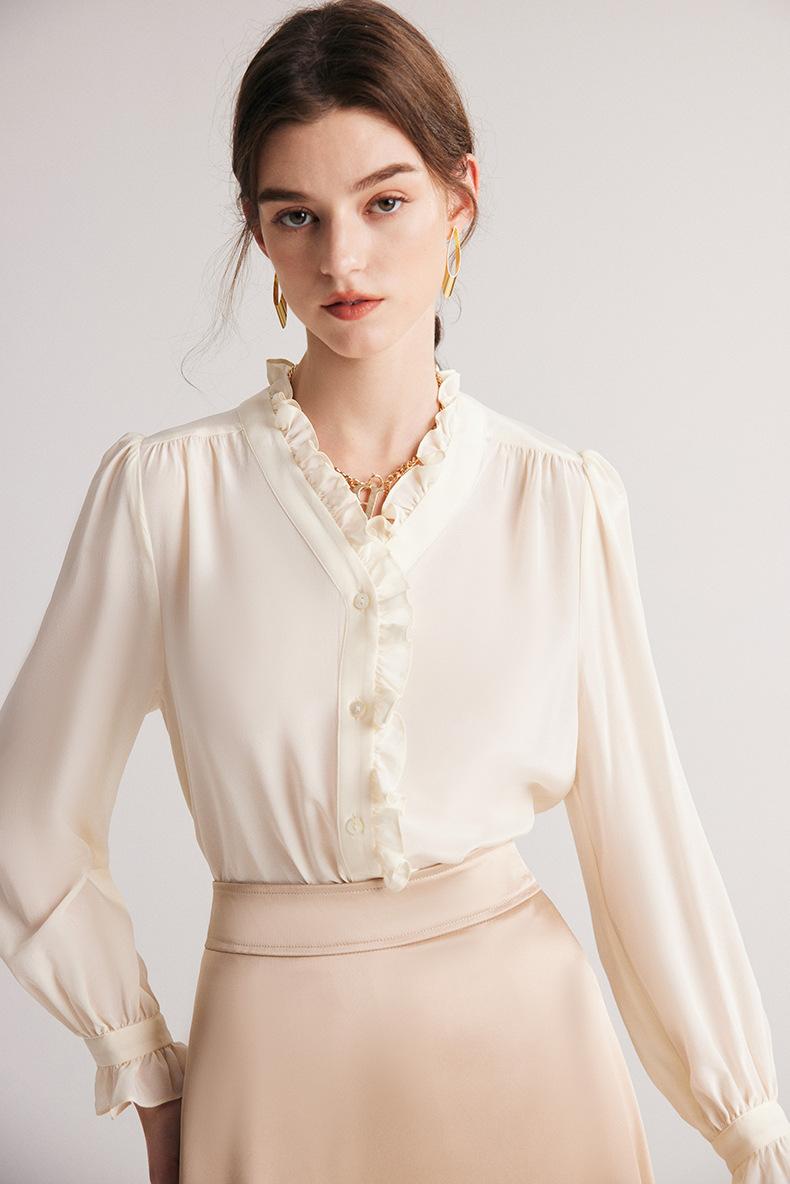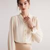 Camisa de Seda para Mujer 2023 Primavera Temprana Nueva Camisa de Crepé de China Francés Blanco Commuter Encaje 100% Seda de Morera Top