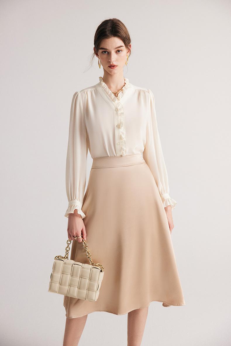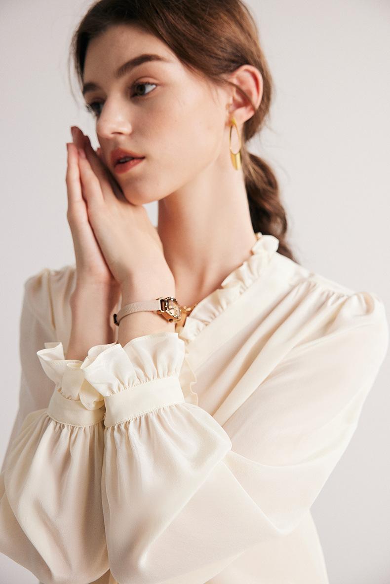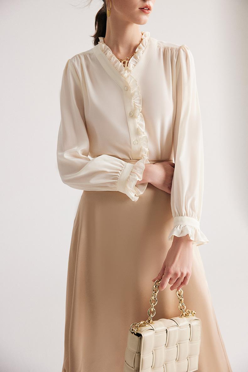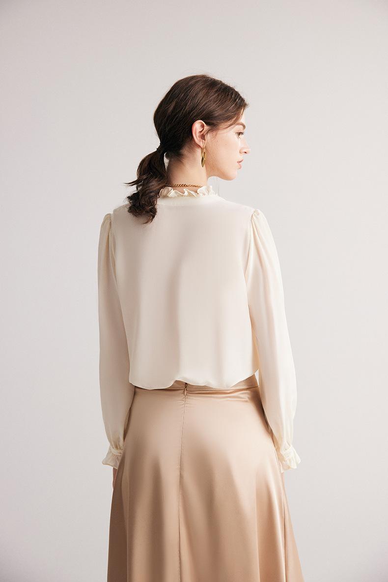 Camisa de Seda para Mujer 2023 Primavera Temprana Nueva Camisa de Crepé de China Francés Blanco Commuter Encaje 100% Seda de Morera Top