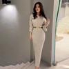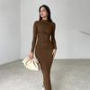 Vestido elegante de otoño e invierno 2024, estilo europeo y americano, de Amazon, con corte entallado, color liso y largo hasta la cadera para mujer
