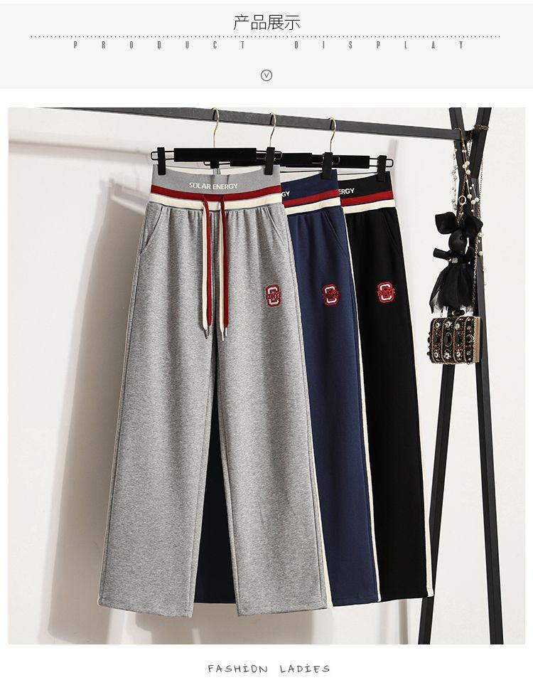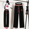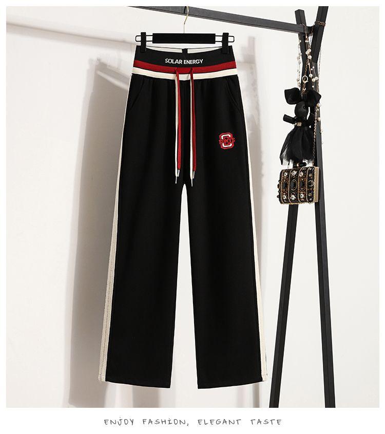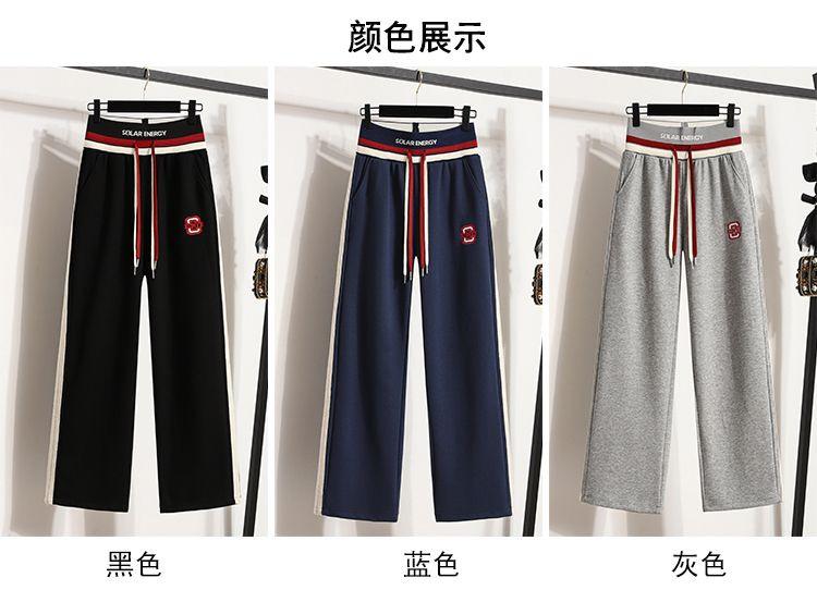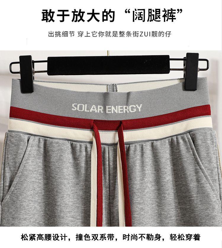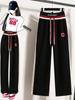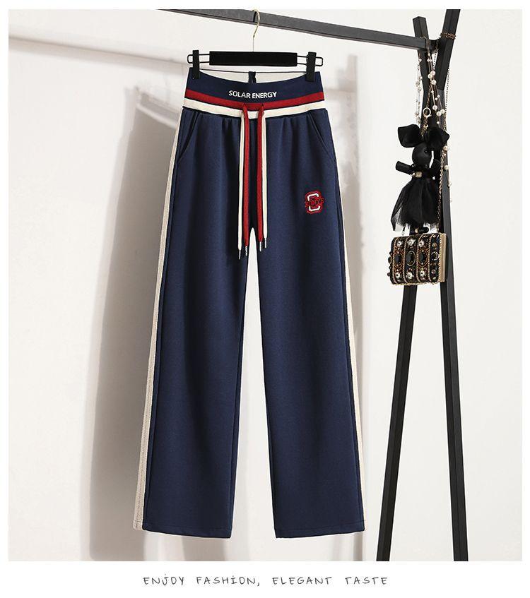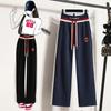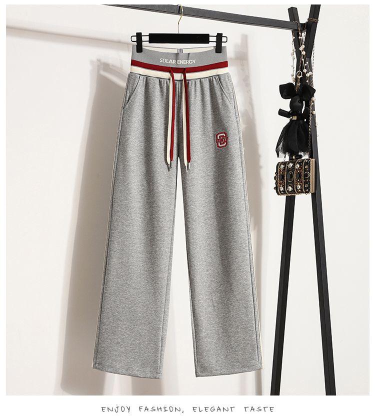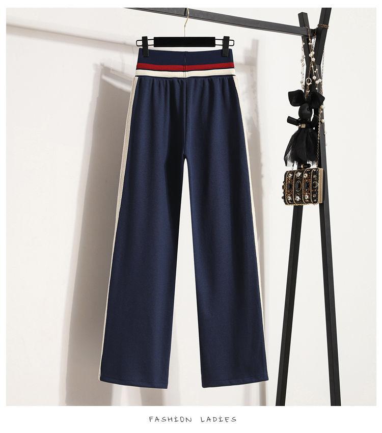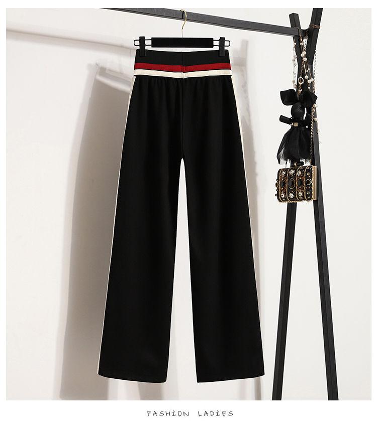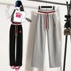 2023 Principios de Primavera Nuevo Estilo Coreano Rayas de Color Combinación de Colores Elástico Letra Cintura Cordón Ajustable Rectos Sueltos Pierna Ancha Pantalones de Suéter para Mujer