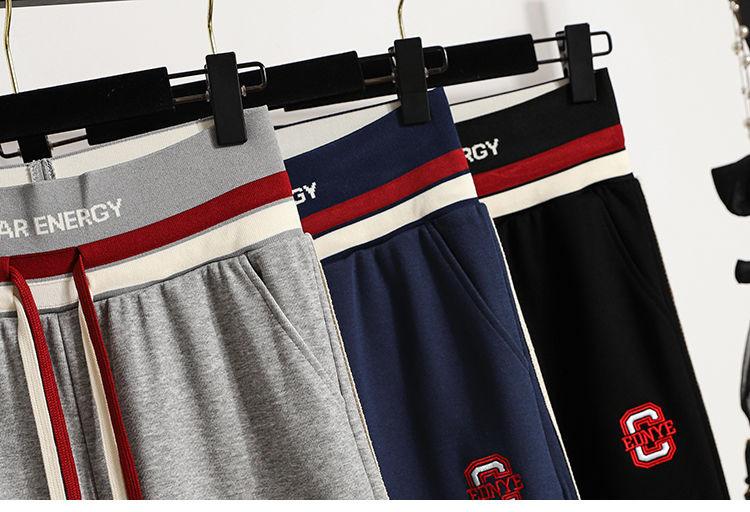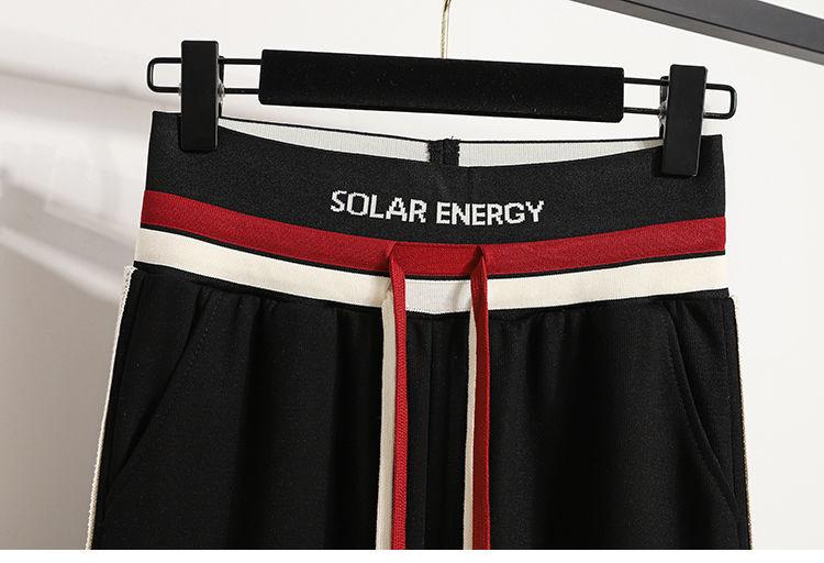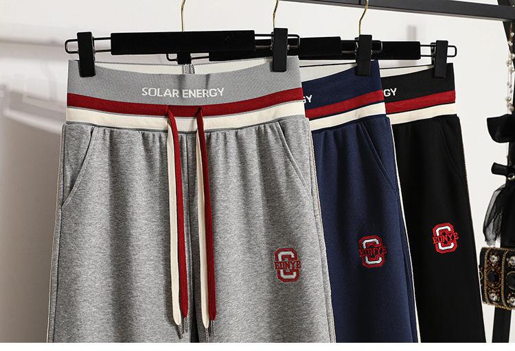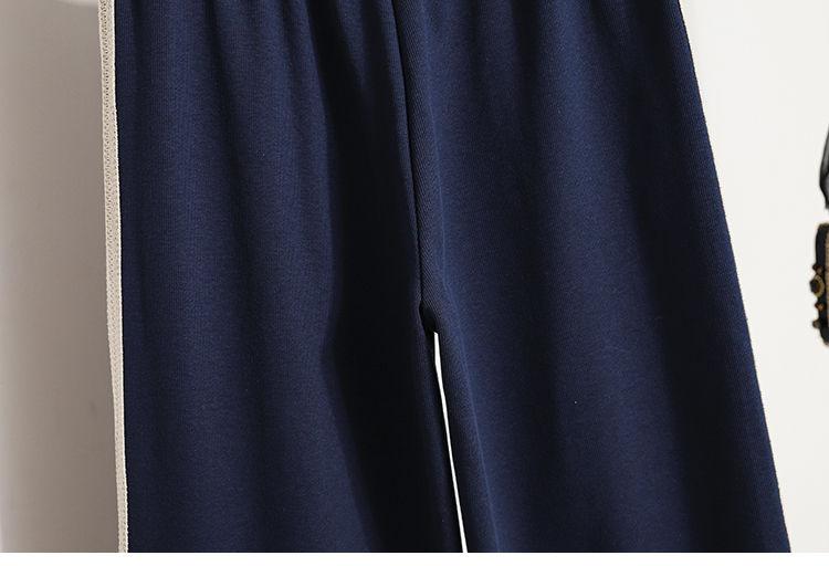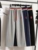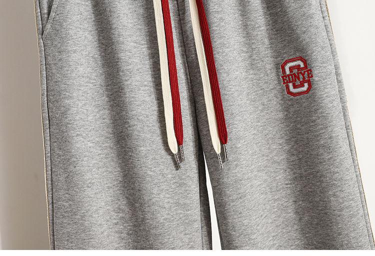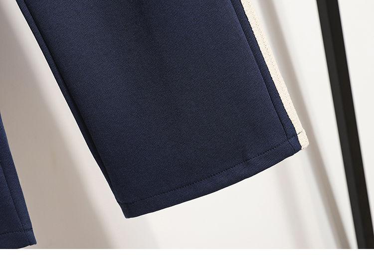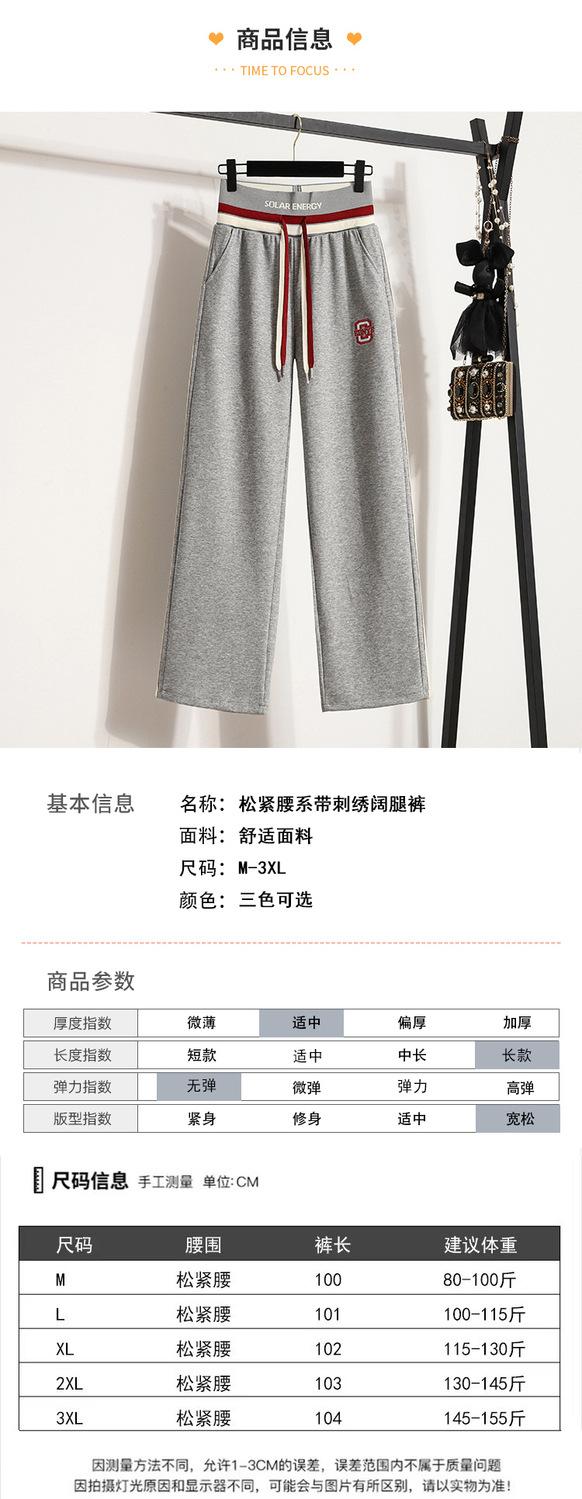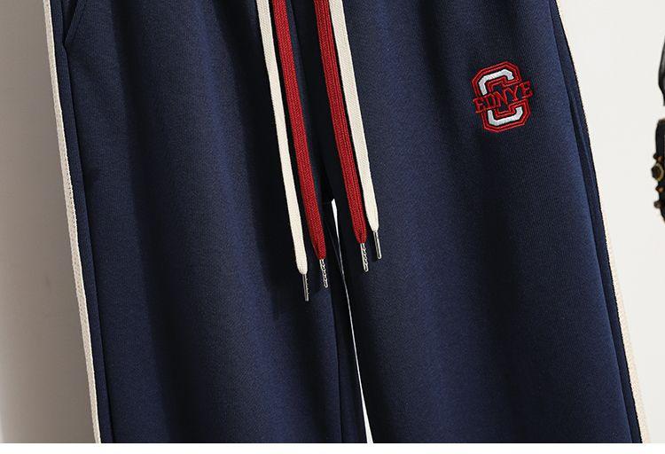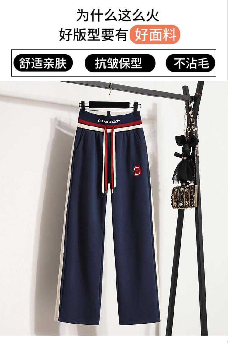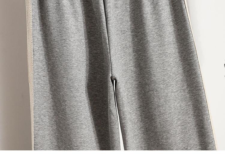 2023 Principios de Primavera Nuevo Estilo Coreano Rayas de Color Combinación de Colores Elástico Letra Cintura Cordón Ajustable Rectos Sueltos Pierna Ancha Pantalones de Suéter para Mujer