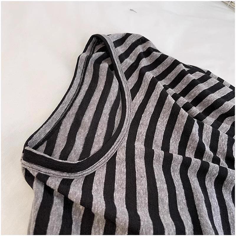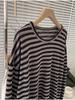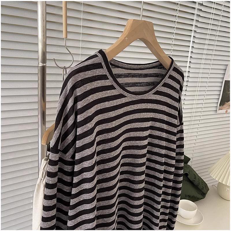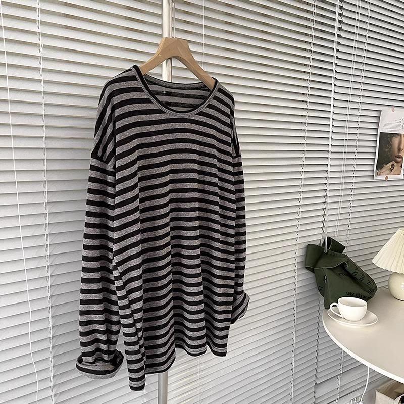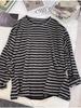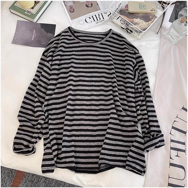 Camiseta holgada informal de manga larga a rayas negras de estilo americano y estilo perezoso 2024, nueva camiseta de estilo coreano a la moda que combina con todo para mujer