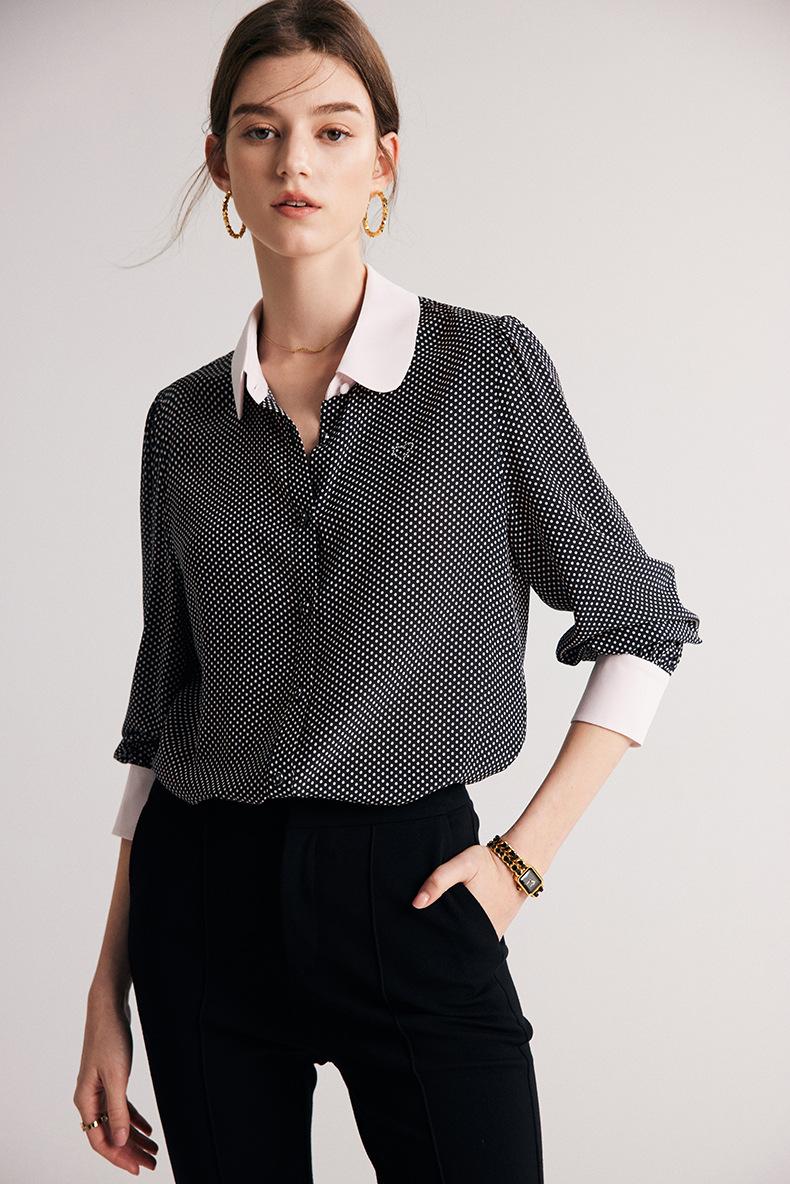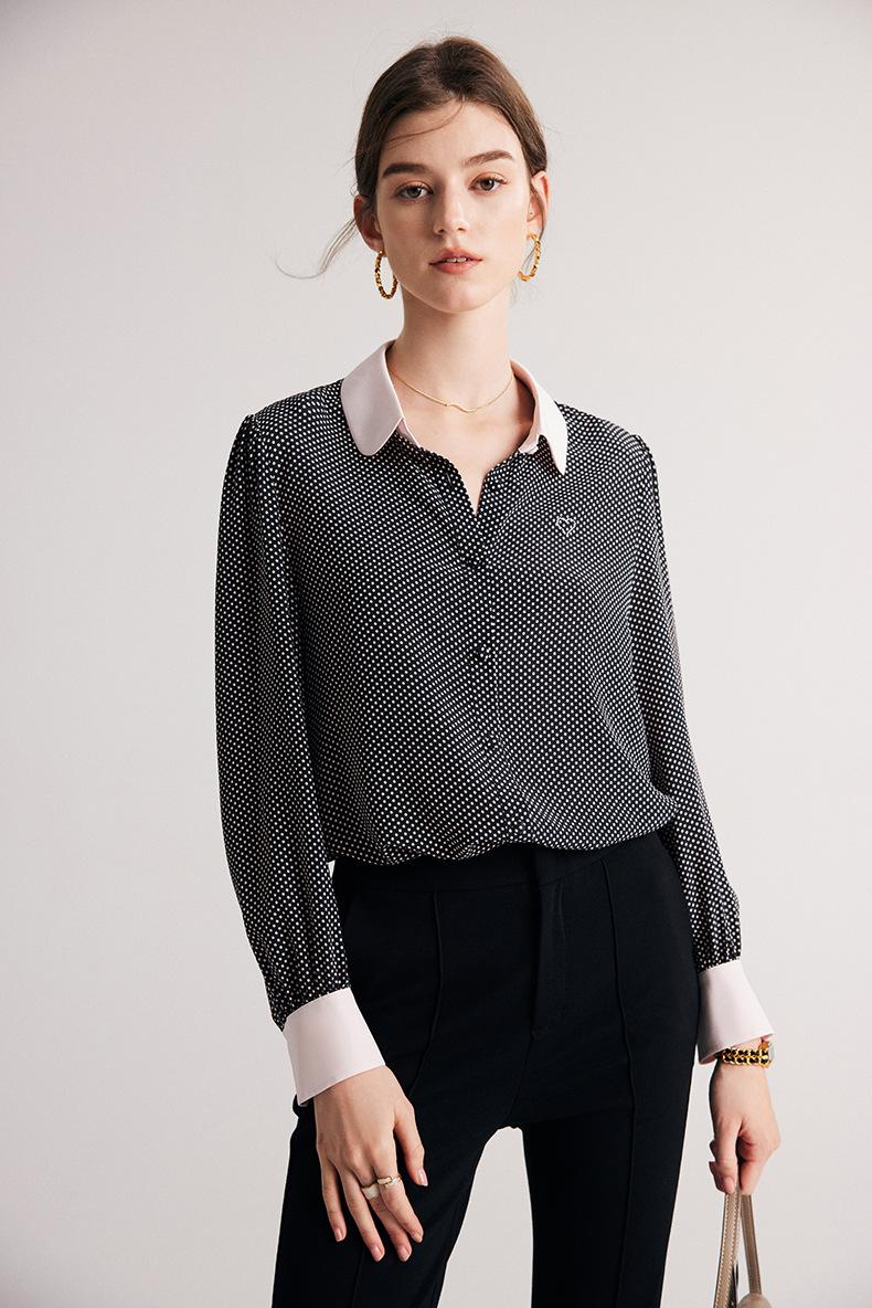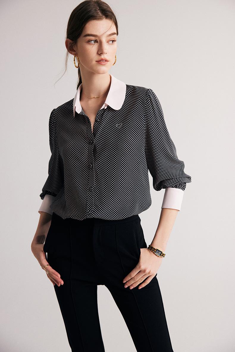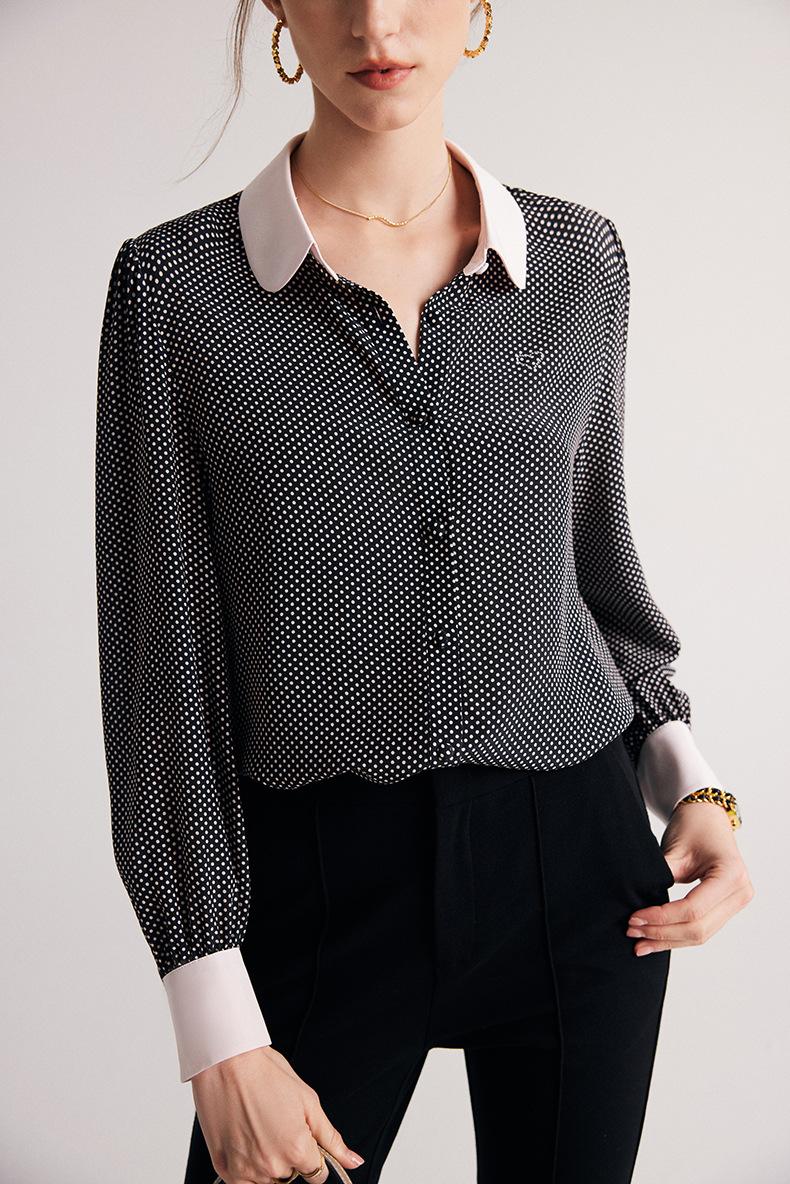 Camisa de Seda para Mujer 2025 Primavera Temprana Manga Larga Crepé de China Estampada Manga Larga Cuello Muñeca Ropa de Trabajo Camisa 100% Seda de Morera