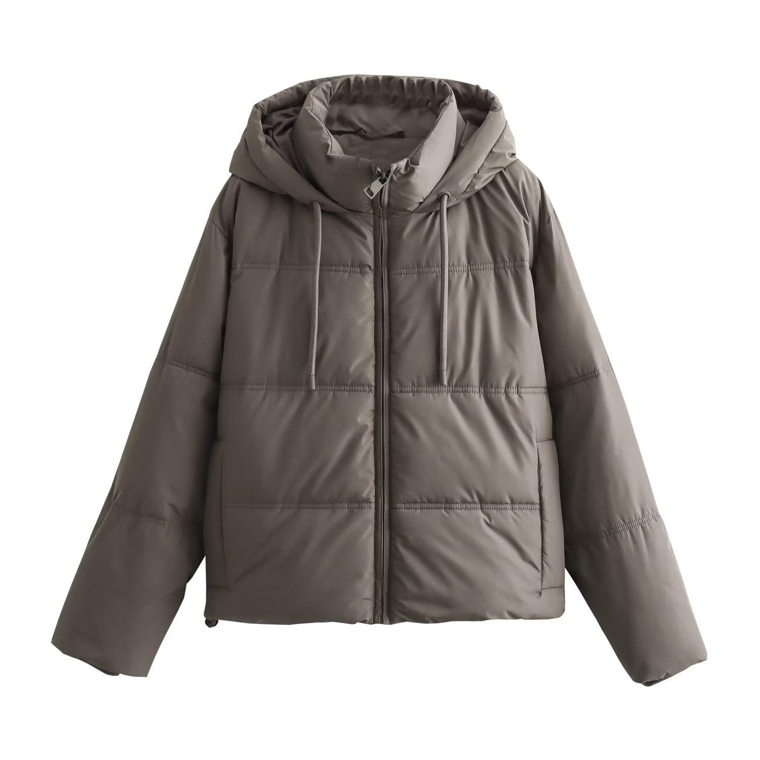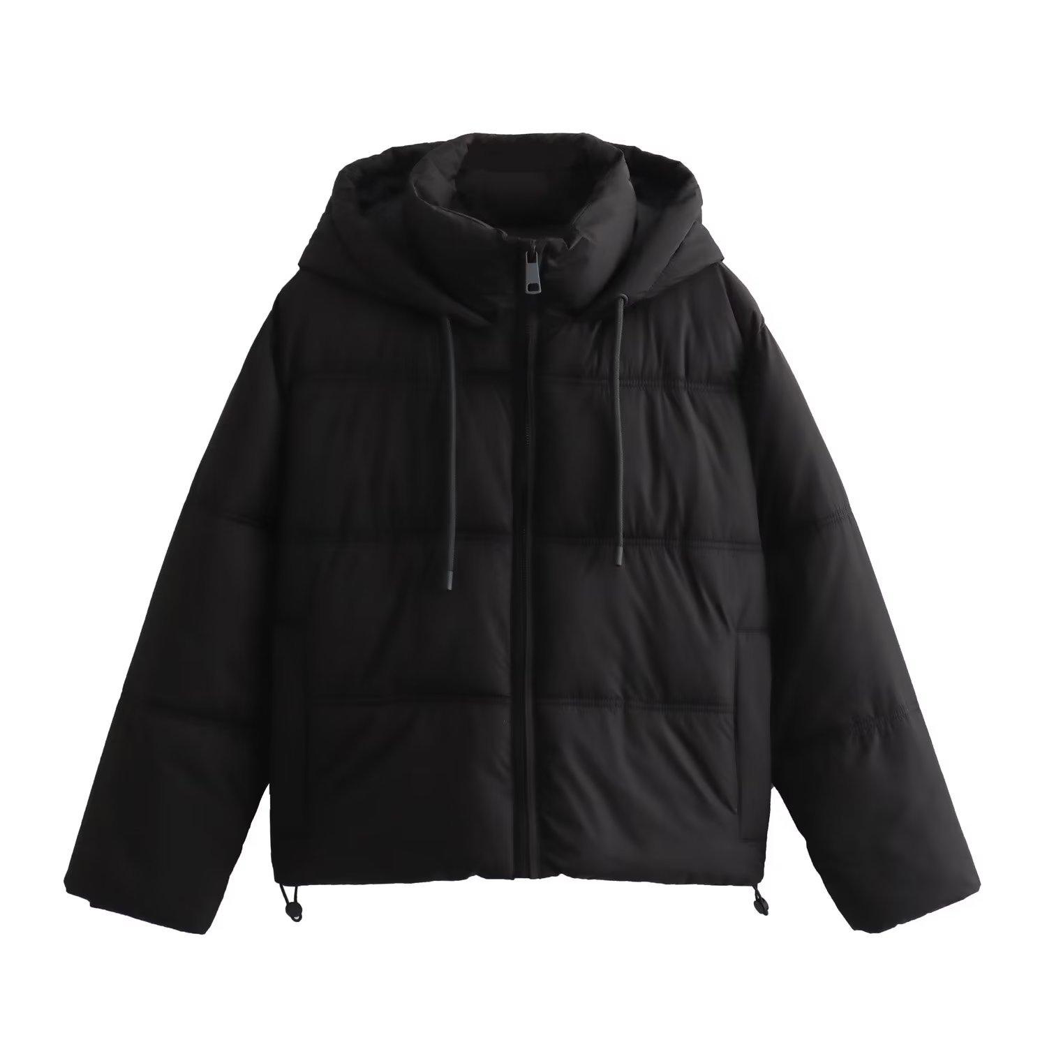 Otoño 2023 nueva chaqueta casual acolchada de algodón para mujer transfronteriza europea y americana corta con capucha chaqueta gruesa w103 7941