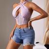 Exportación de Ropa Europea y Americana Verano Nueva Moda Asimétrico Plisado Tul Malla Ajustado Sexy Mono Sin Mangas