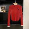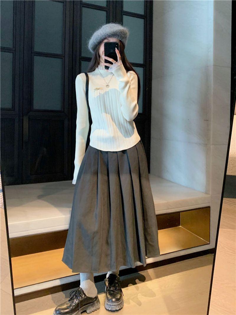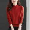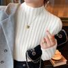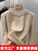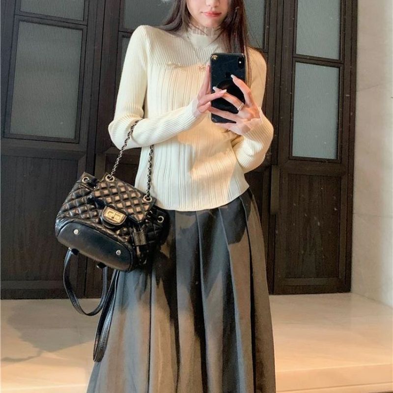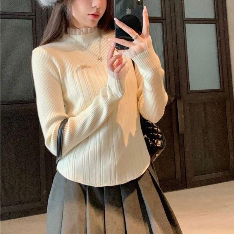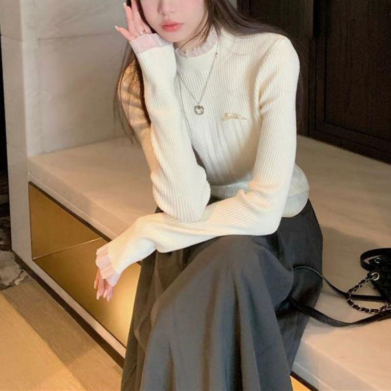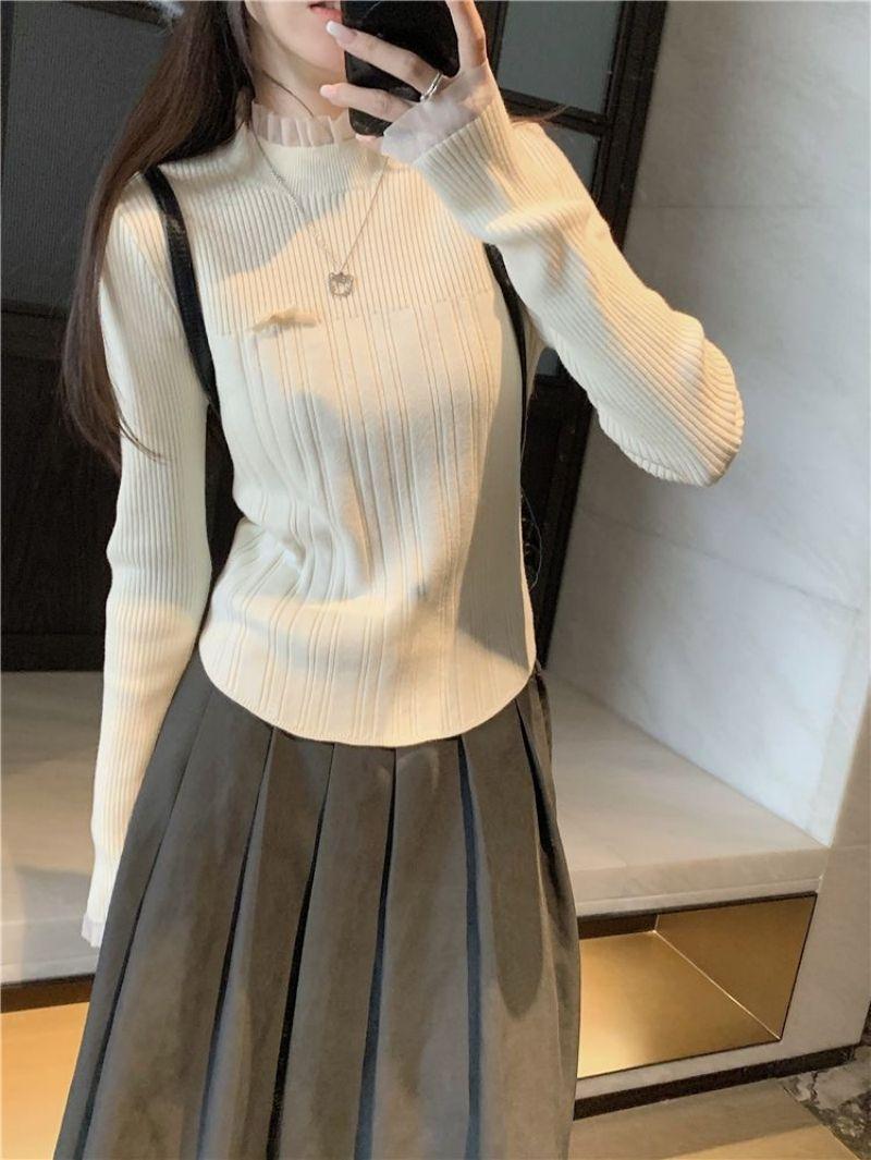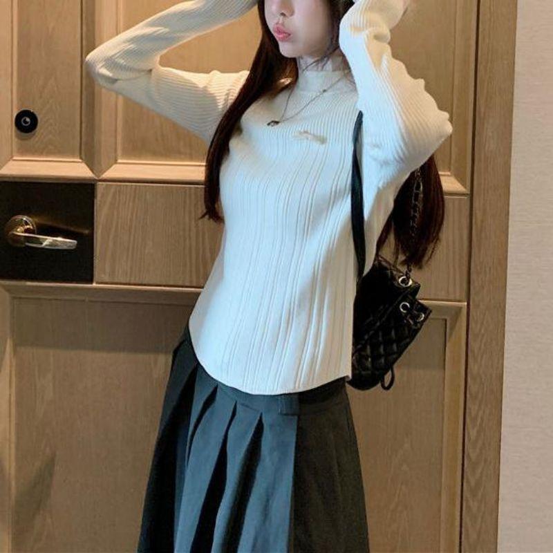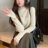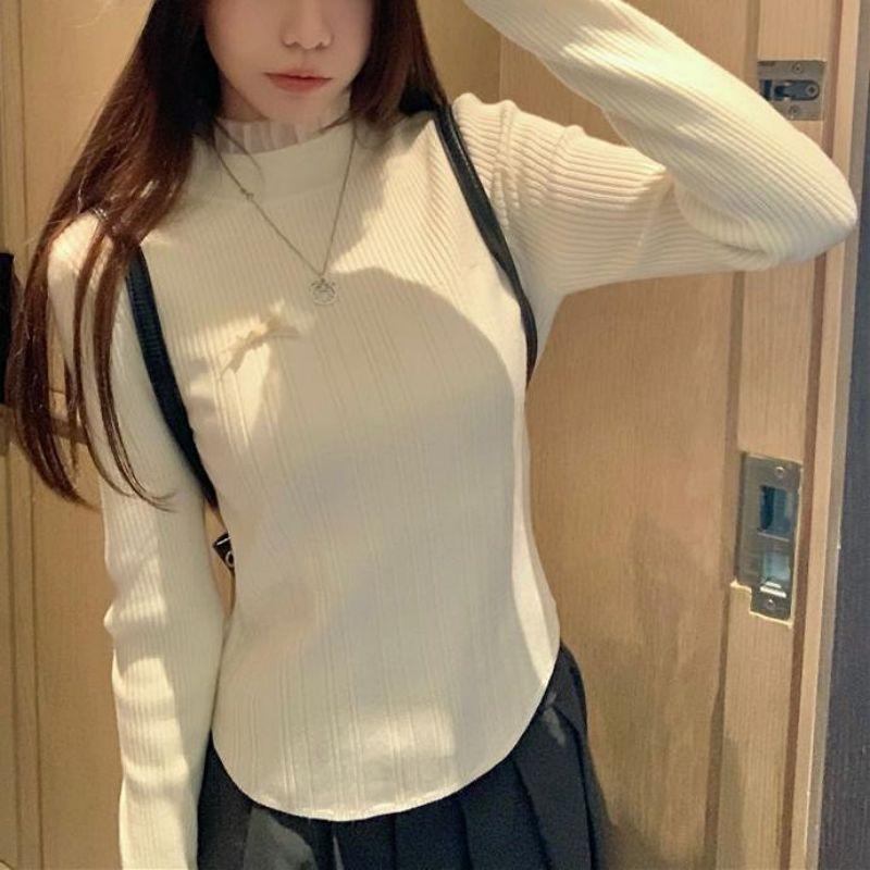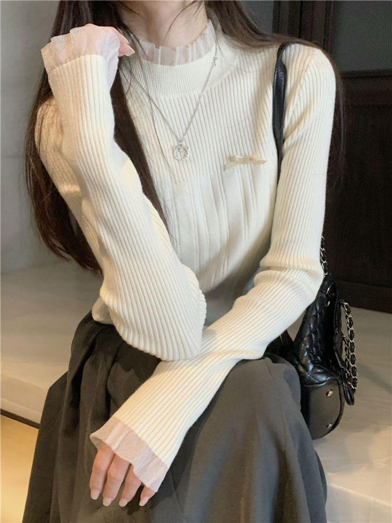 Camiseta de Punto de Cuello Medio Alto para Mujer, Suéter con Lazo de Otoño e Invierno, Nuevo Estilo, Top Interior Súper Bonito y de Alta Gama