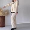 Otoño 2023 nuevo conjunto de dos piezas casual holgado estilo Chanel con solapa a contraste de color de moda transfronteriza europea y americana de Amazon para mujer