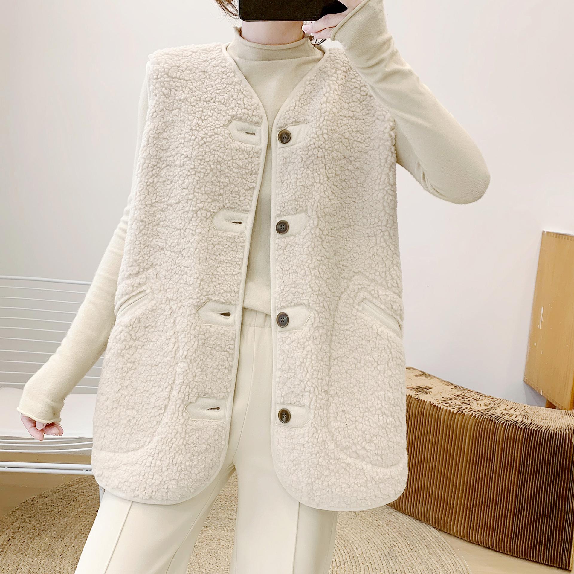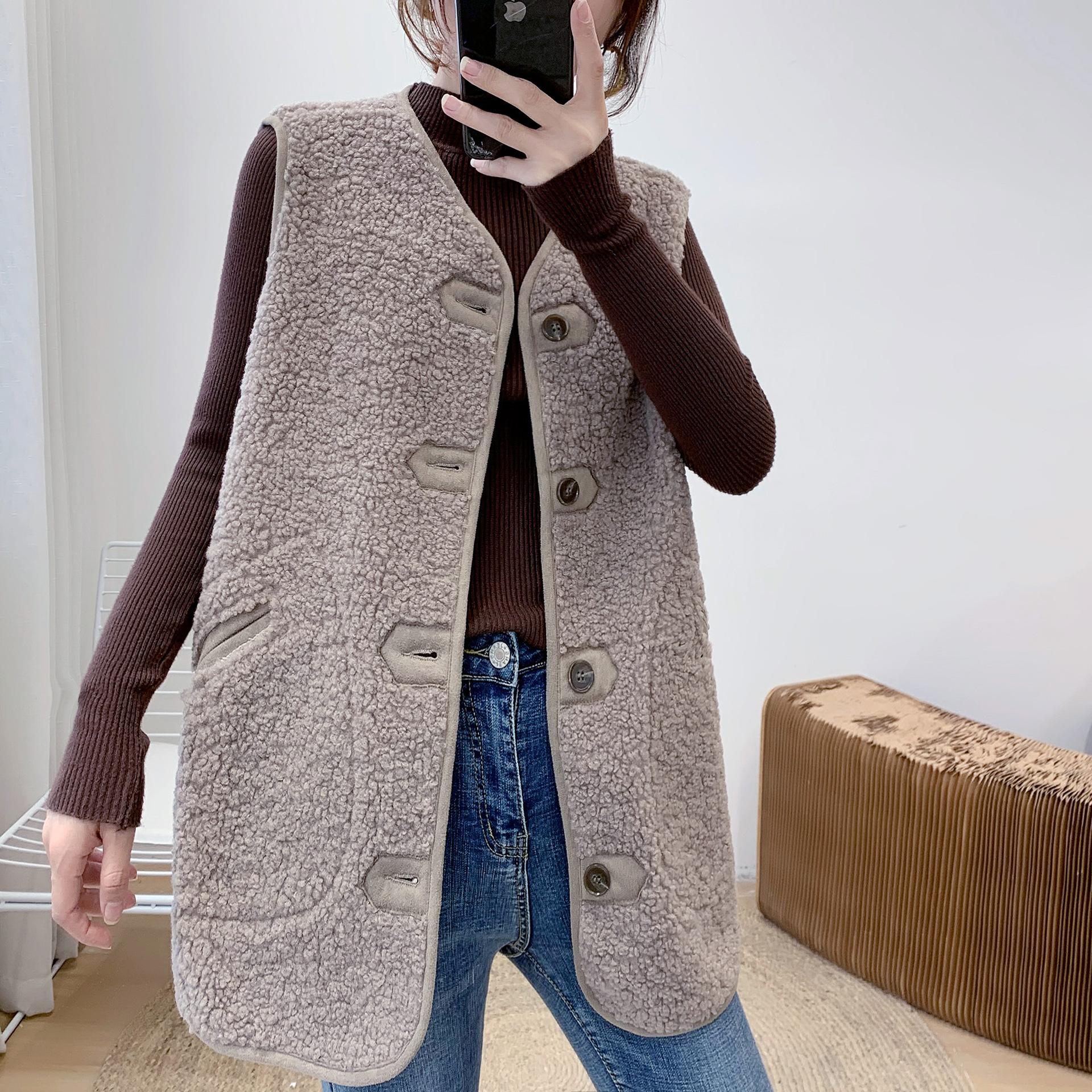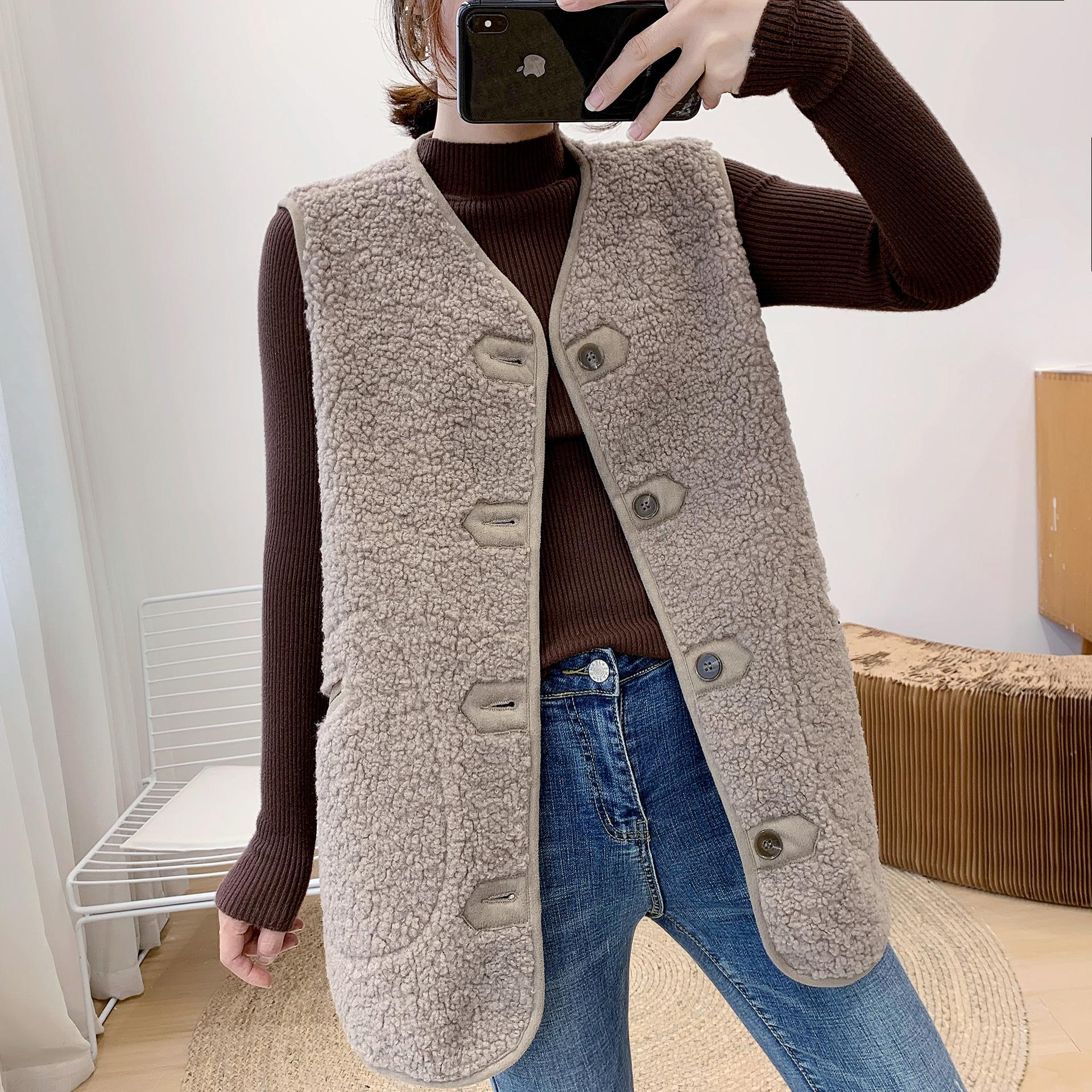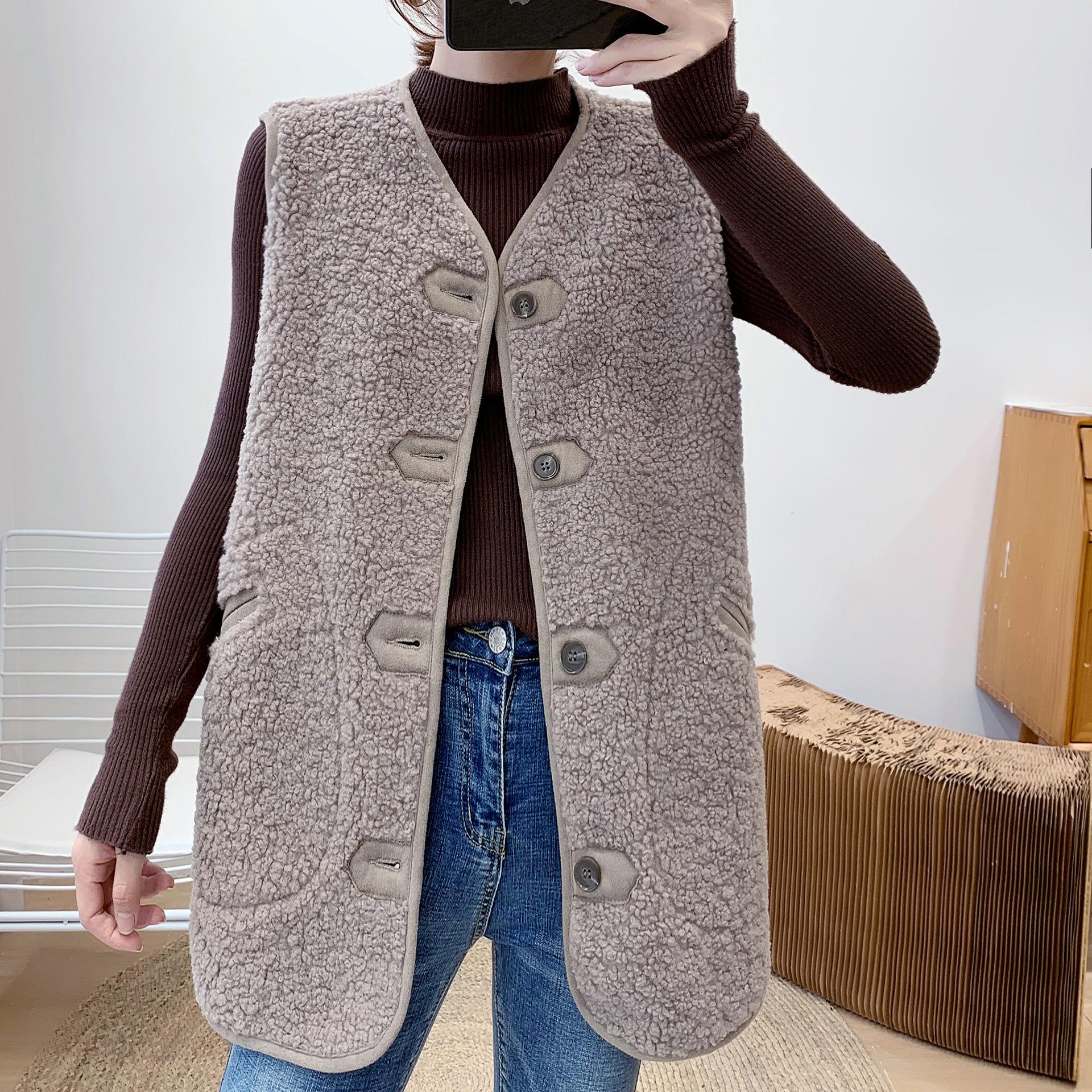 Chaleco de piel de cordero para mujer, prenda exterior de longitud media, otoño e invierno 2024, nueva prenda exterior, chaleco de piel, abrigo.